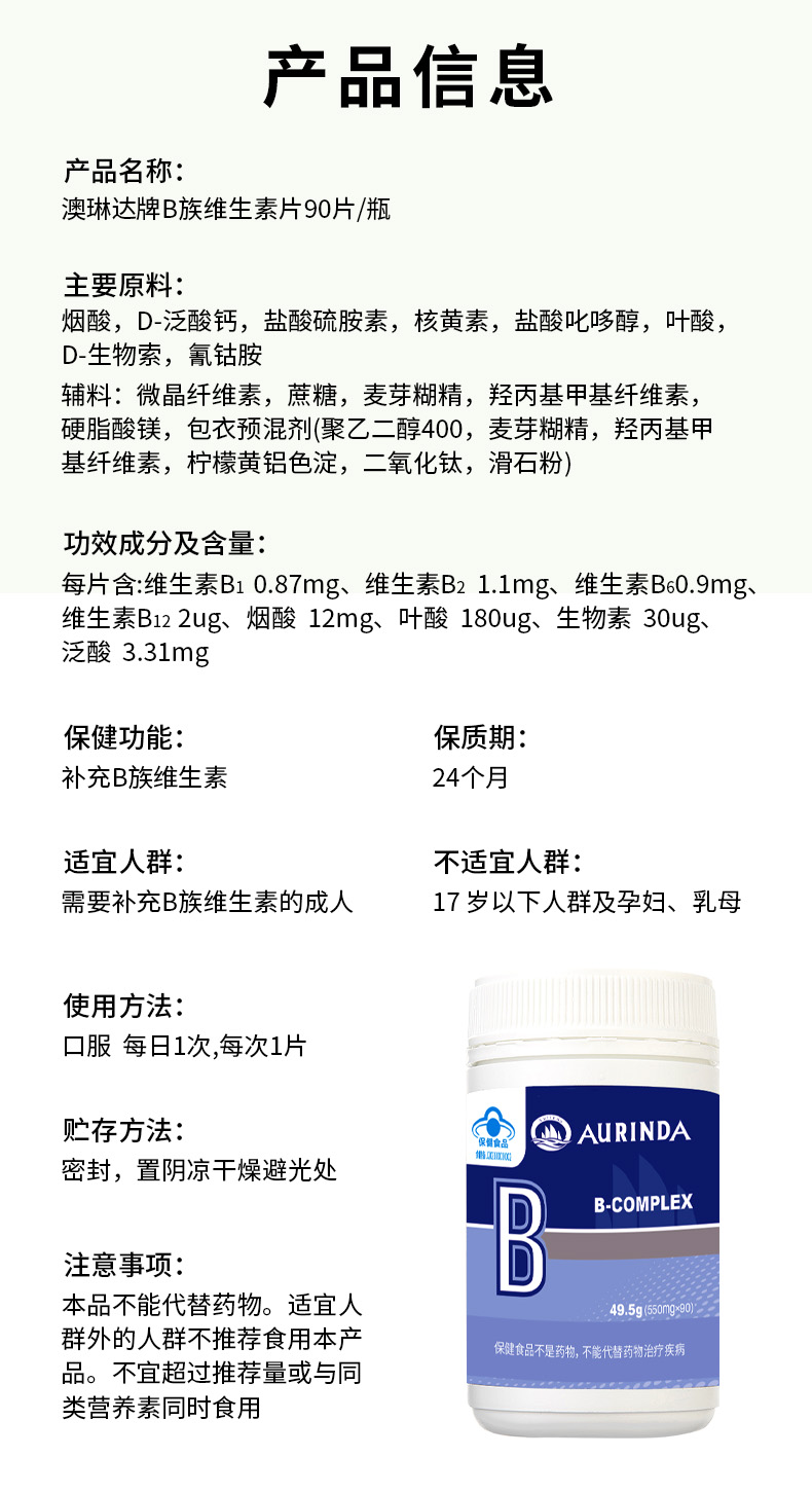 澳洲进口aurinda澳琳达维生素b族复合片男女士多维生素