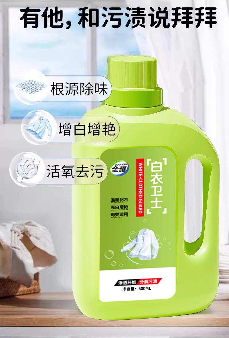「去黄去渍!漂白增艳」全耀白衣卫士泡泡清洗衣物活性酶去黄亮白去污护去渍增白亮白洗衣清洁工具 商品图0
