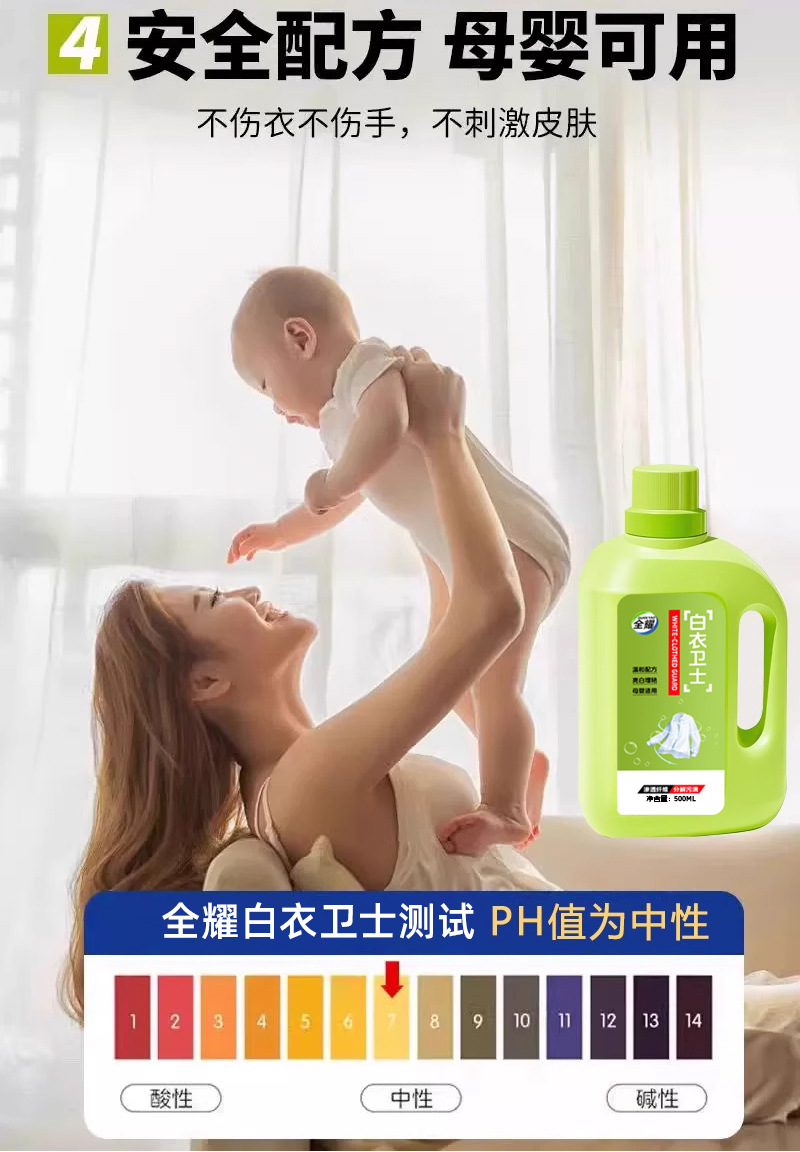 「去黄去渍!漂白增艳」全耀白衣卫士泡泡清洗衣物活性酶去黄亮白去污护去渍增白亮白洗衣清洁工具 商品图4