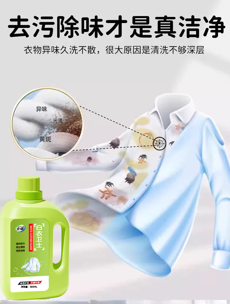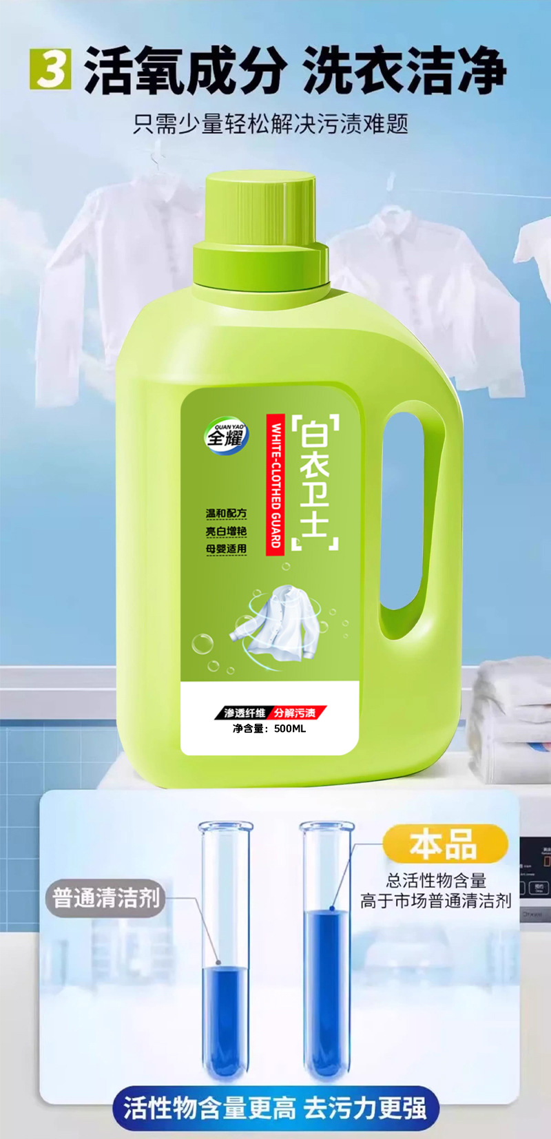 「去黄去渍!漂白增艳」全耀白衣卫士泡泡清洗衣物活性酶去黄亮白去污护去渍增白亮白洗衣清洁工具 商品图2