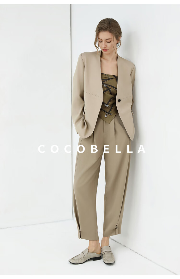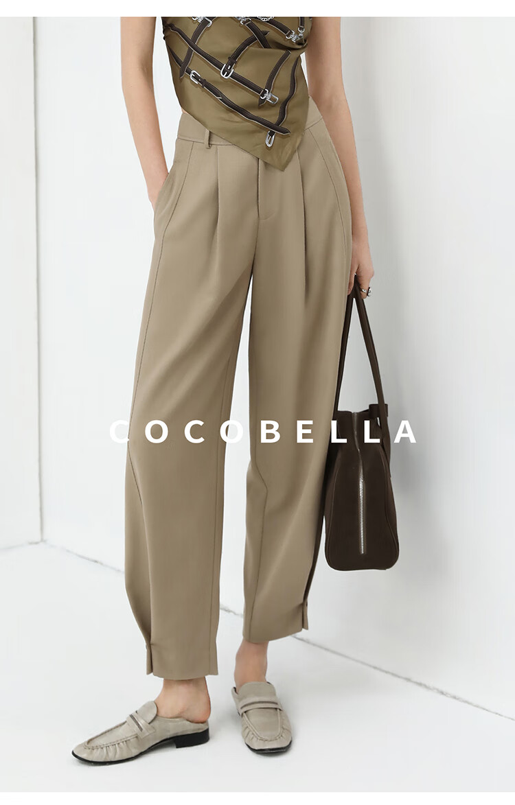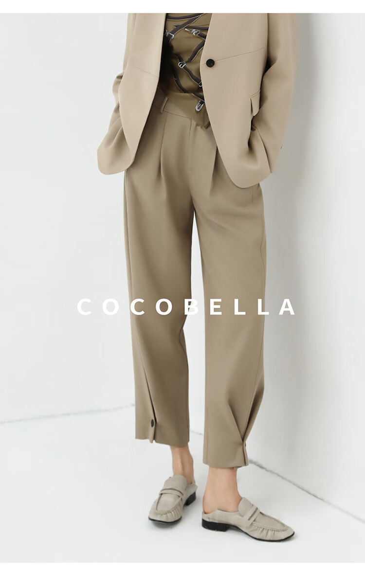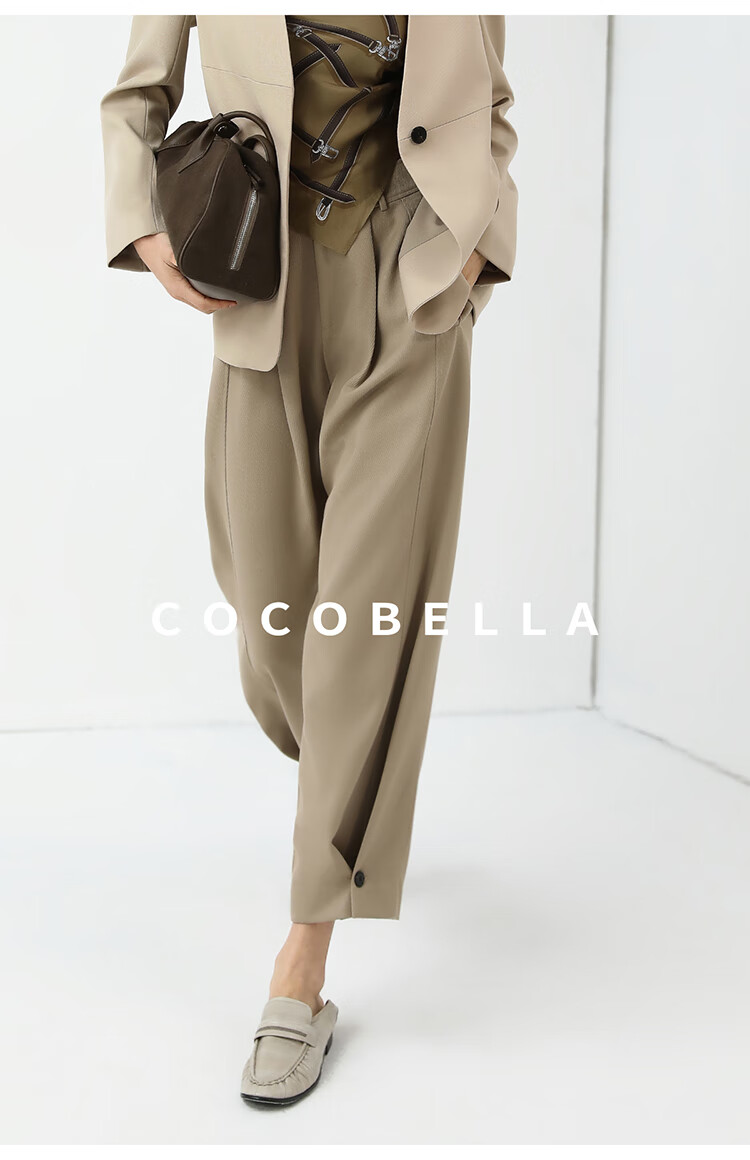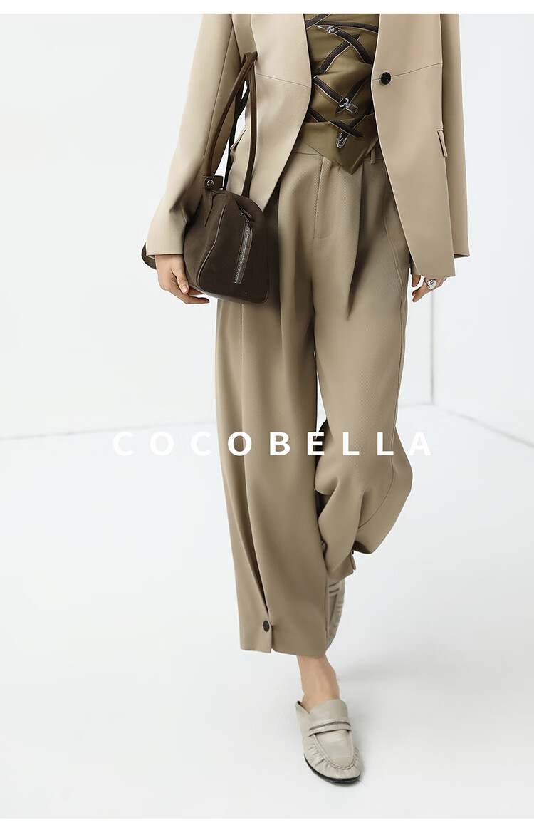 COCOBELLA设计师款一粒扣叠褶哈伦裤商务休闲通勤香蕉裤PA558