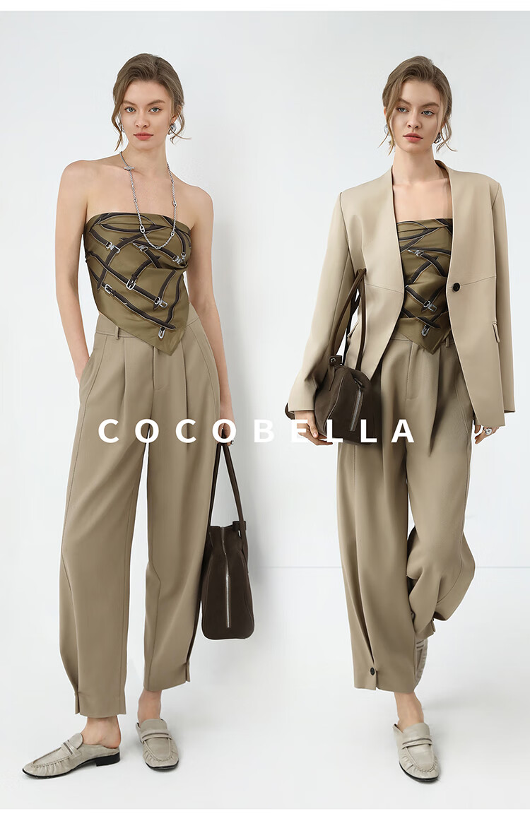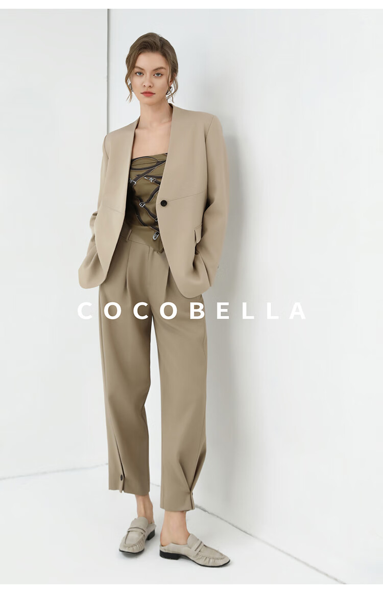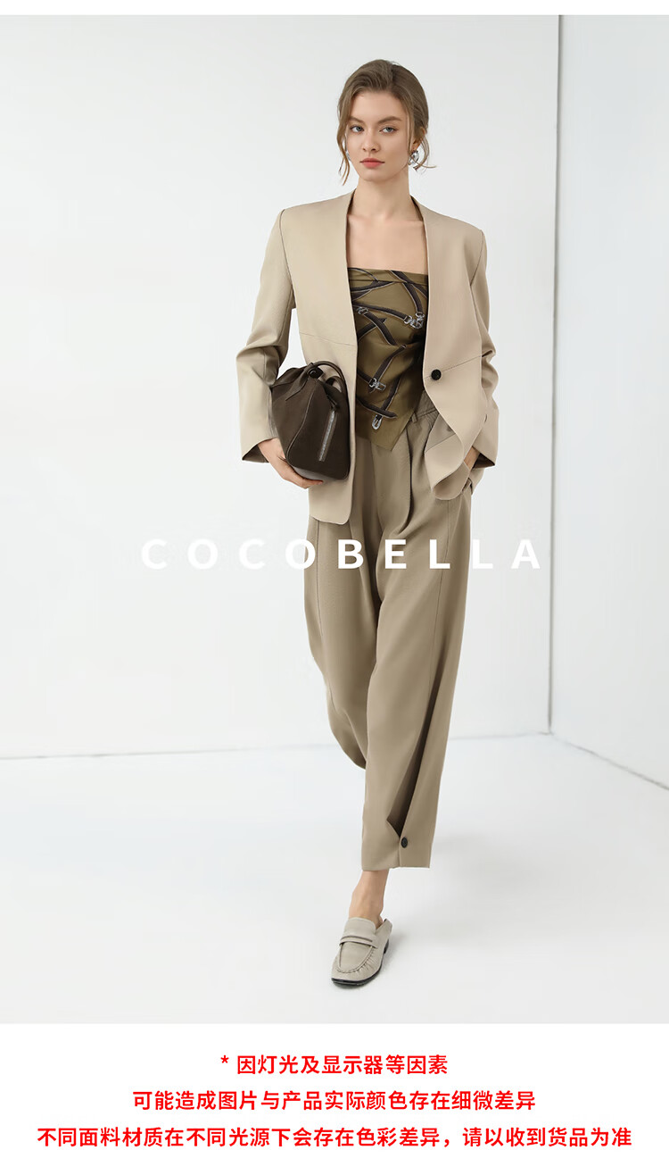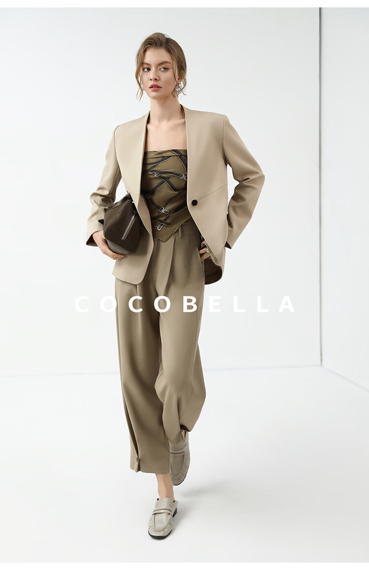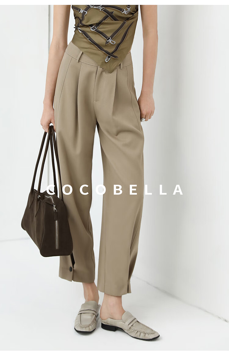 COCOBELLA设计师款一粒扣叠褶哈伦裤商务休闲通勤香蕉裤PA558