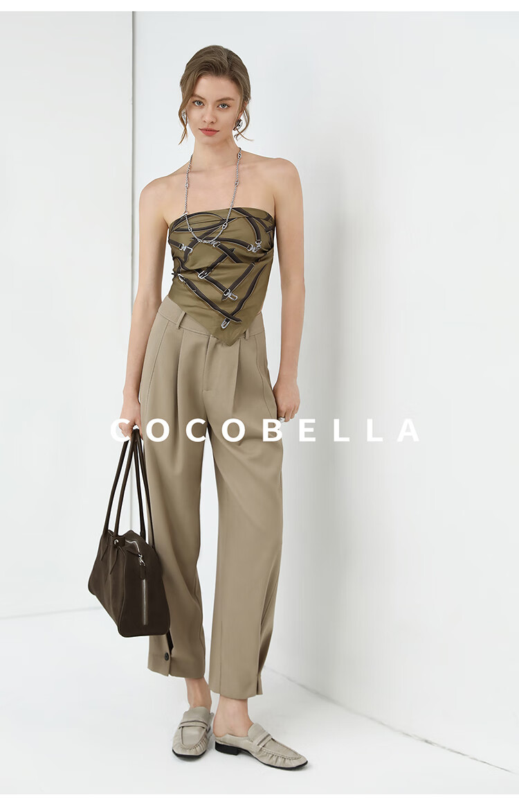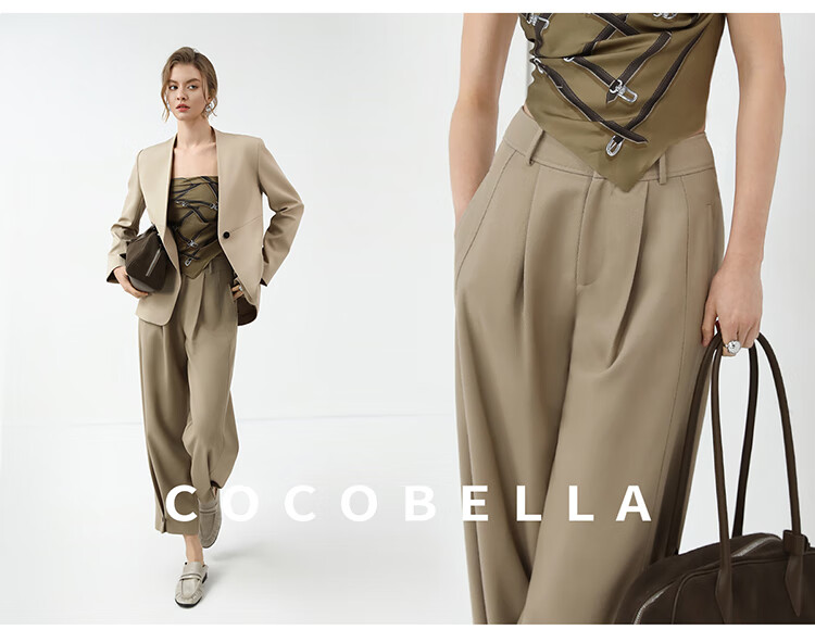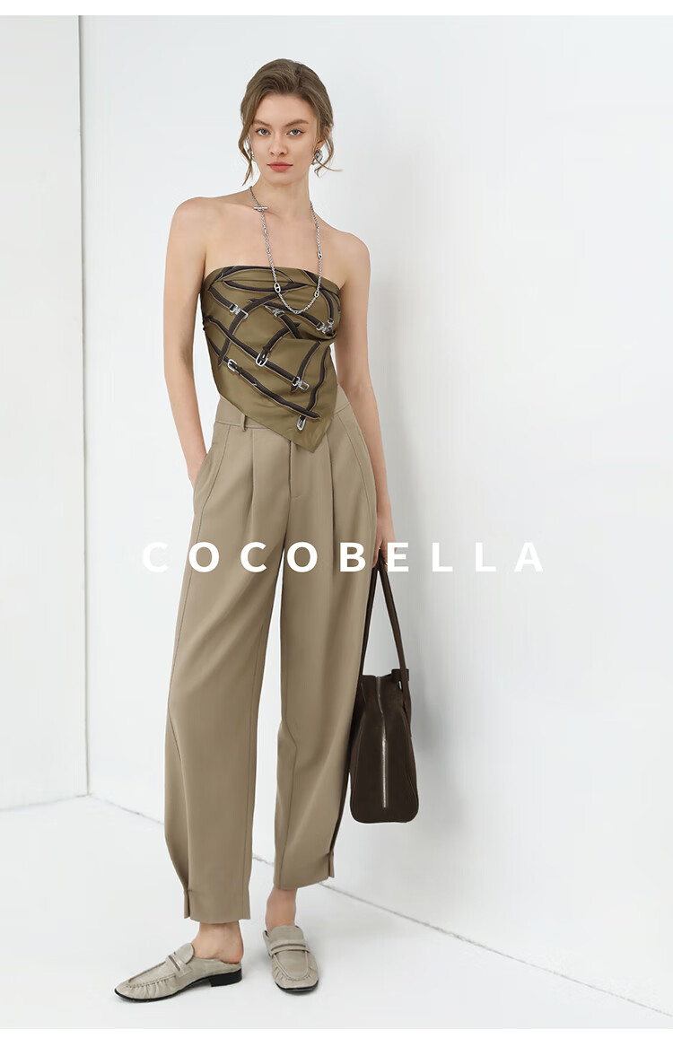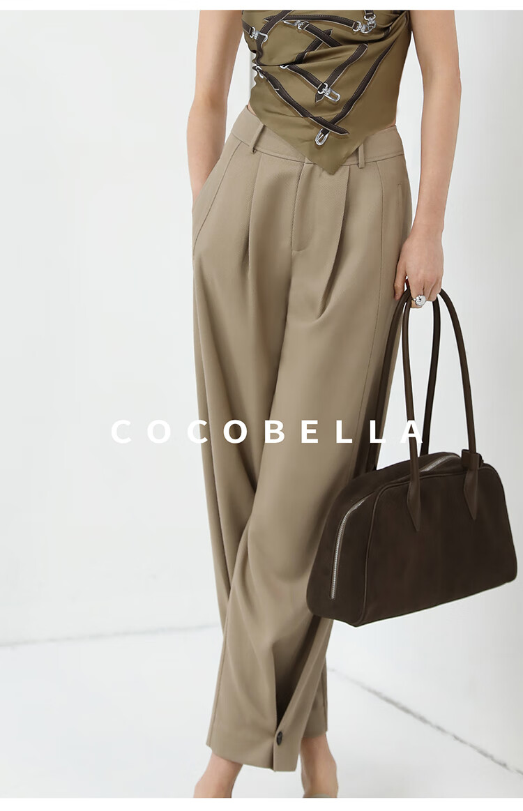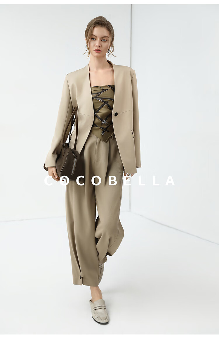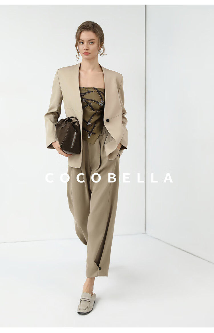 COCOBELLA设计师款一粒扣叠褶哈伦裤商务休闲通勤香蕉裤PA558