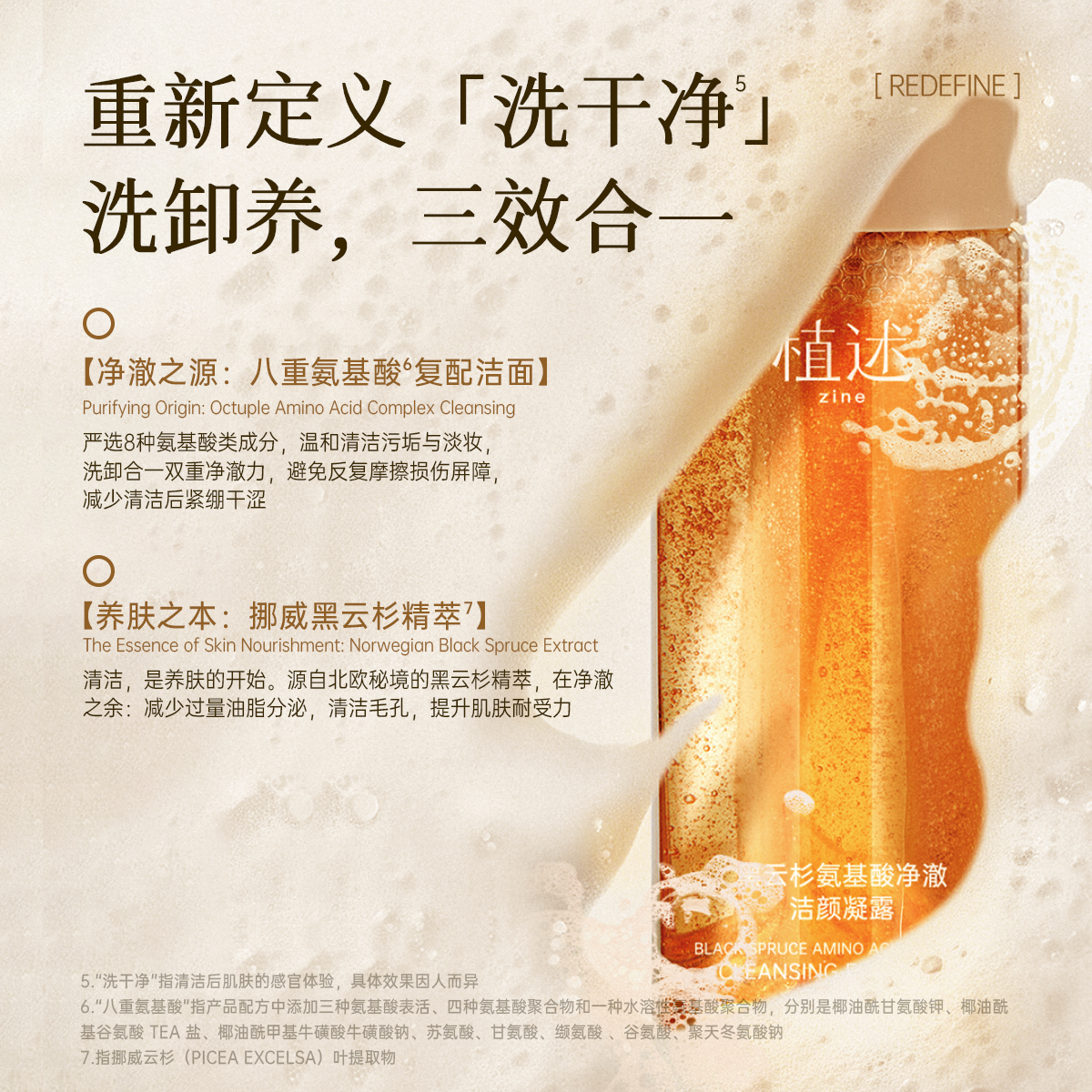 【温和洁面 洗卸养三合一】黑云杉植物芳疗氨基酸洗卸合一 120g 植述