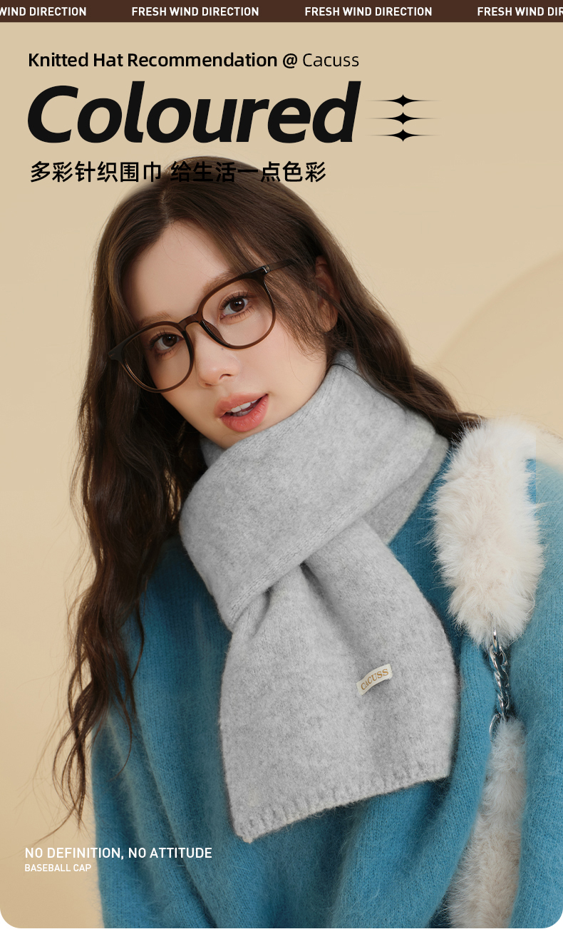 CACUSS冬季多彩针织羊毛围巾 12色可选 软糯亲肤保暖不扎肤 户外小围巾围脖