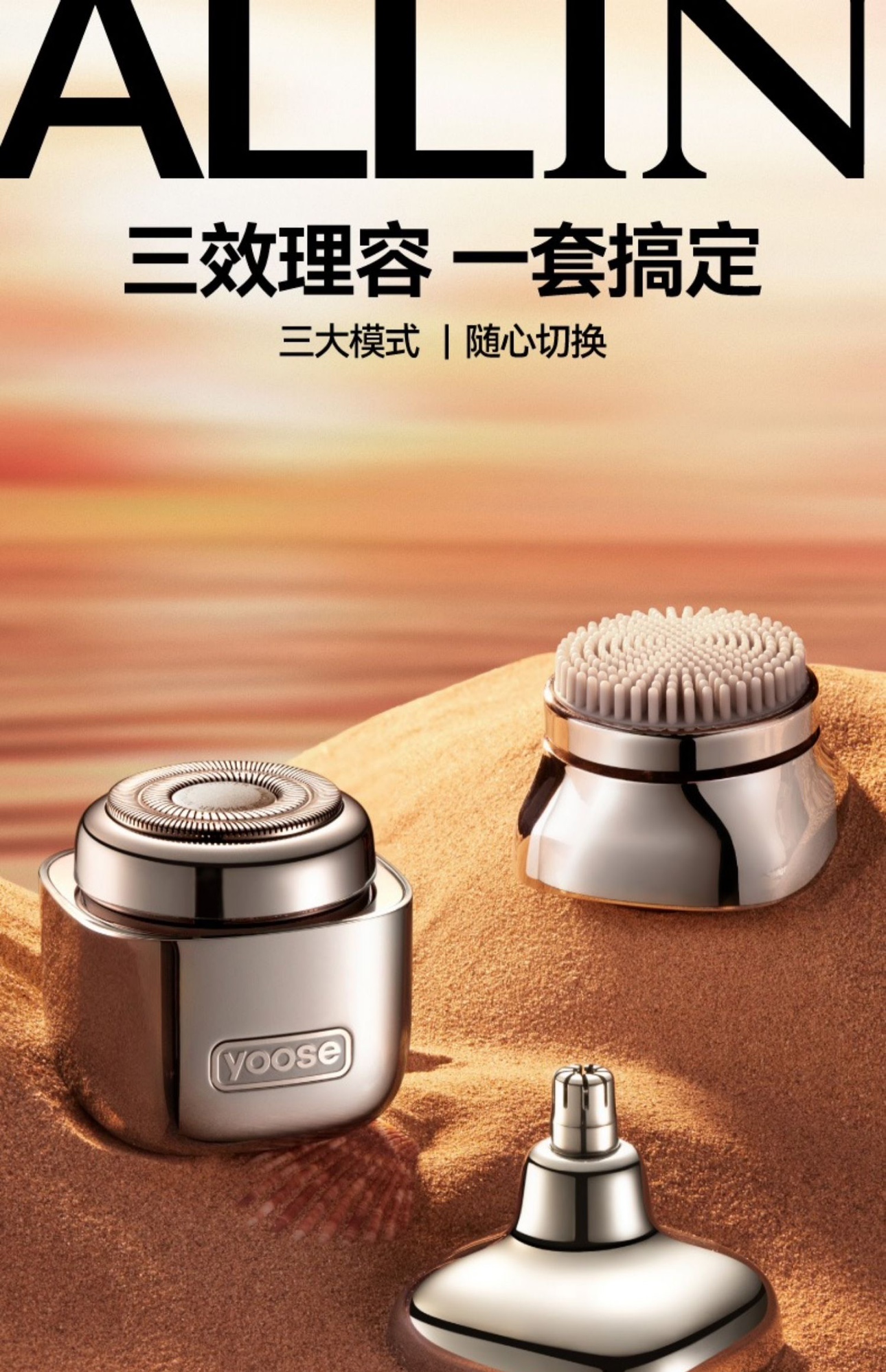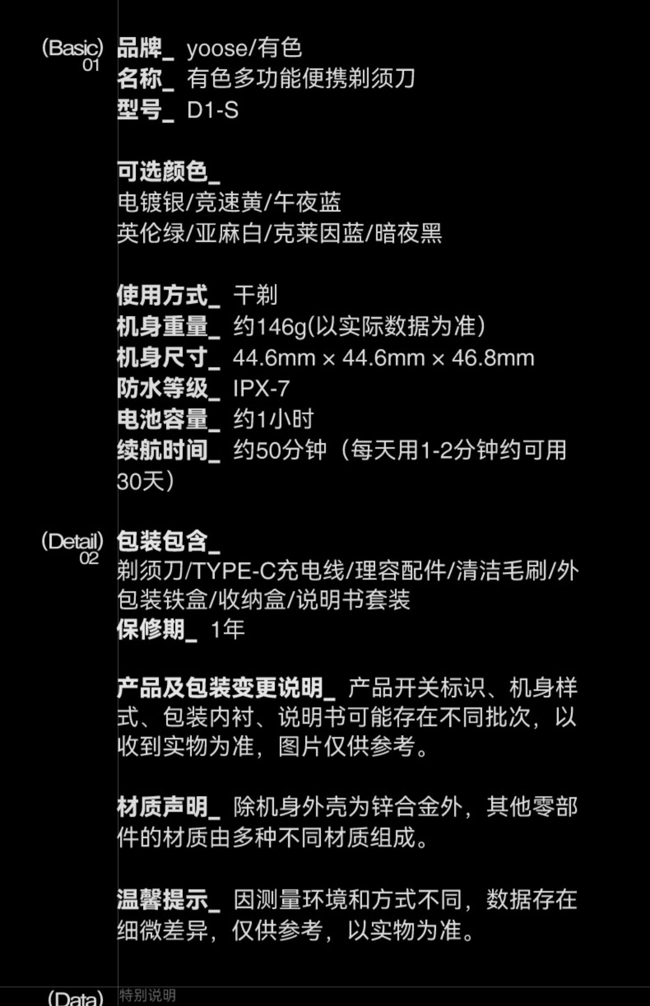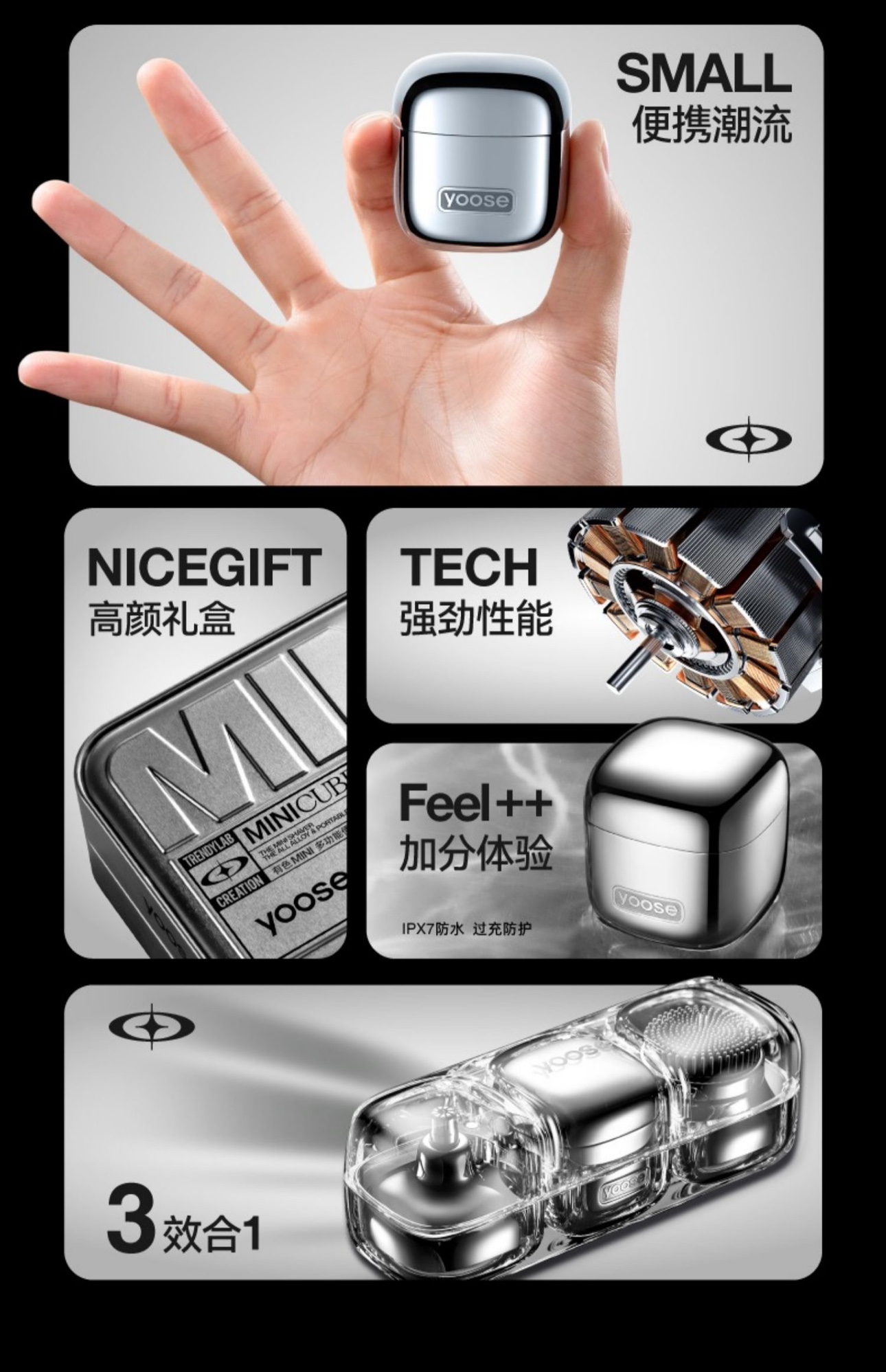 【小家电】有色(yoose)电动剃须刀便携刮胡刀修鼻毛洁面仪三合一七夕情人节礼物送男朋友小魔方理容套装 D1-S HF