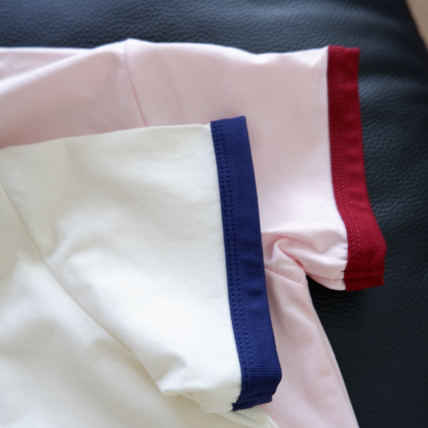 领口和手袖位置的撞色螺纹