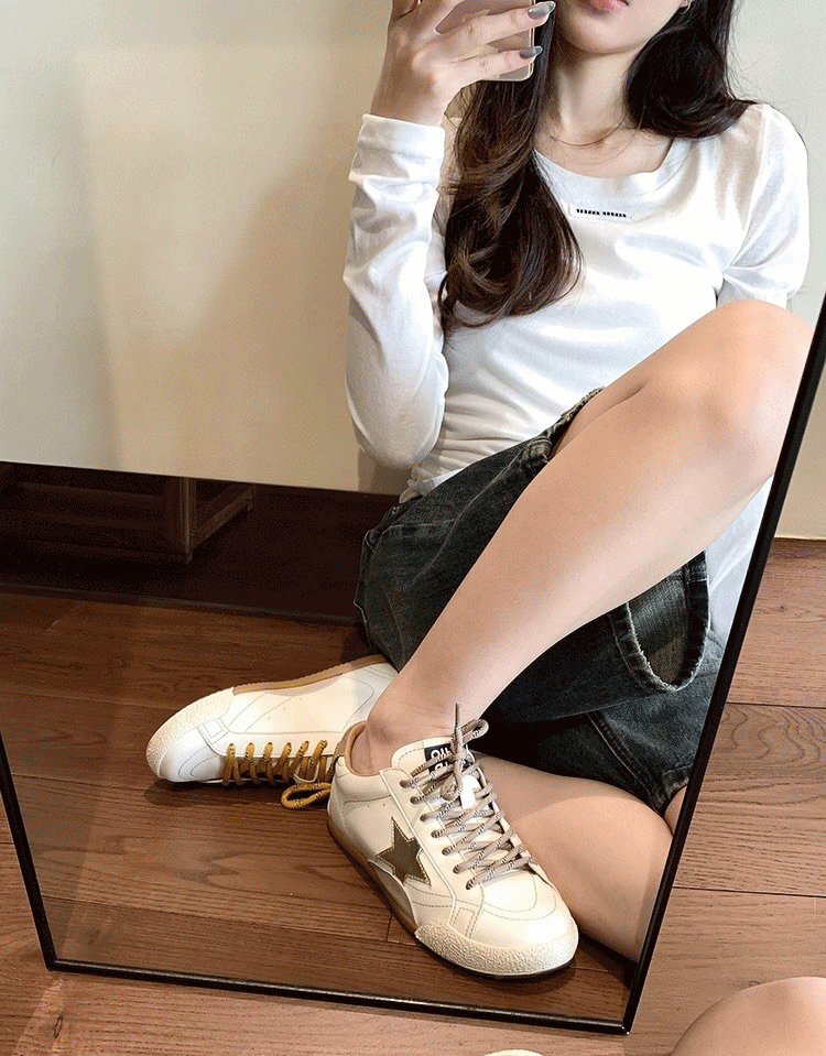 纪华菲·复古星星擦色做旧小脏鞋,不用打理的小白鞋,越脏越时髦,里外都是牛皮,巨舒服~(预售7-10天发)【G】