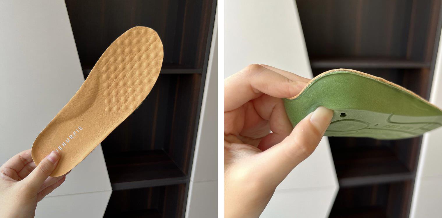 更加分的是,乌拉草纤维本身富有弹性,纪华菲还足足把鞋垫做到2cm厚。