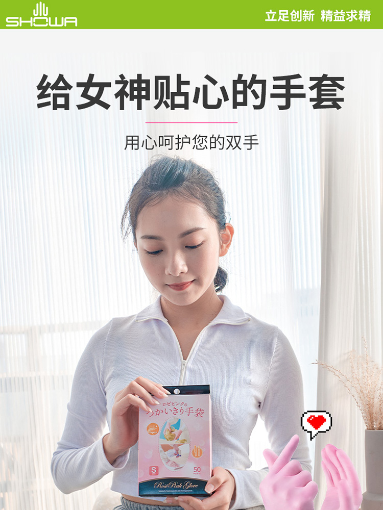 SHOWA尚和厨房食品级一次性烘焙加厚手套(50双)M码 / S码 粉色【不支持补差,非质量问题不退不换】S