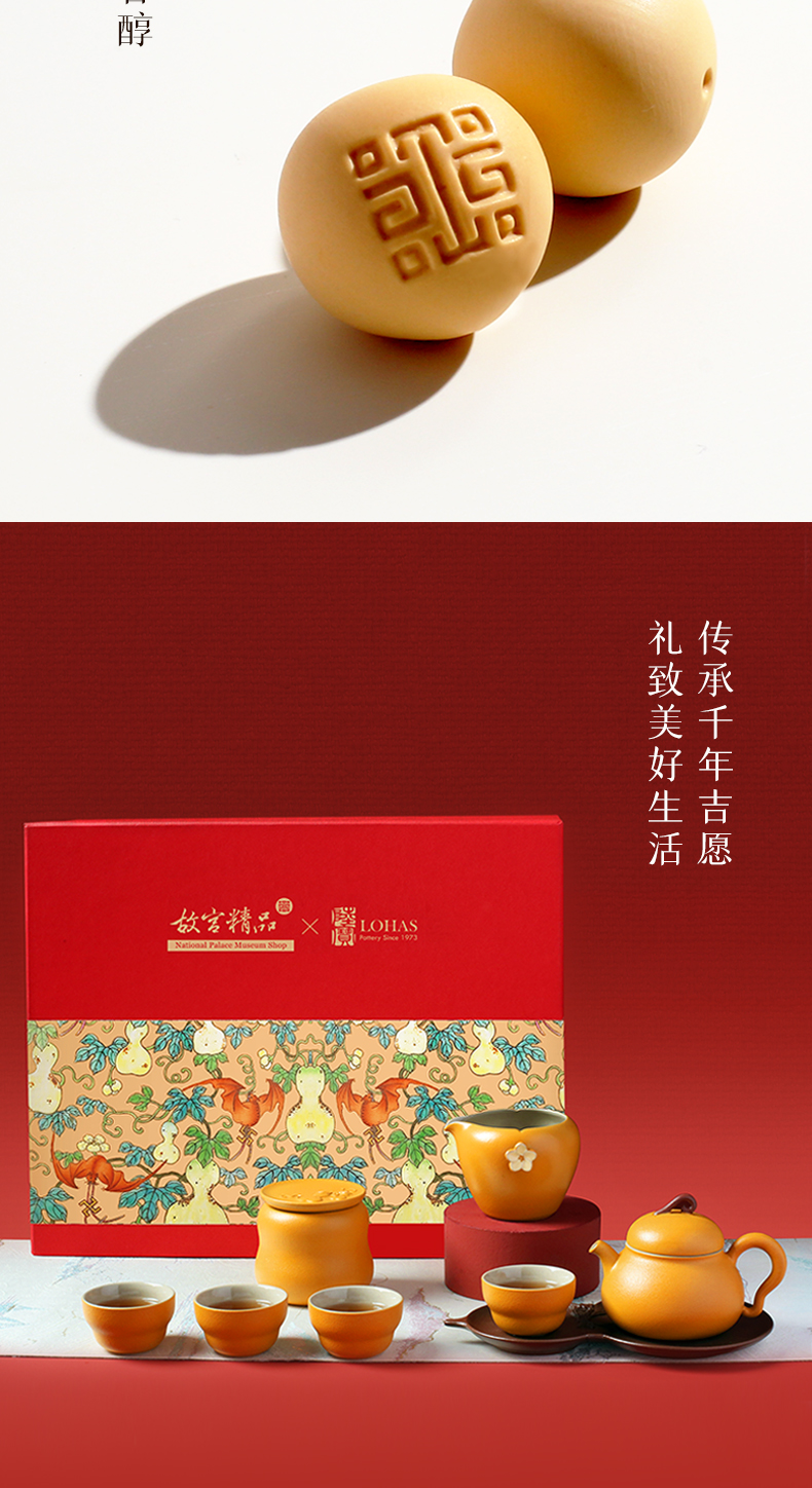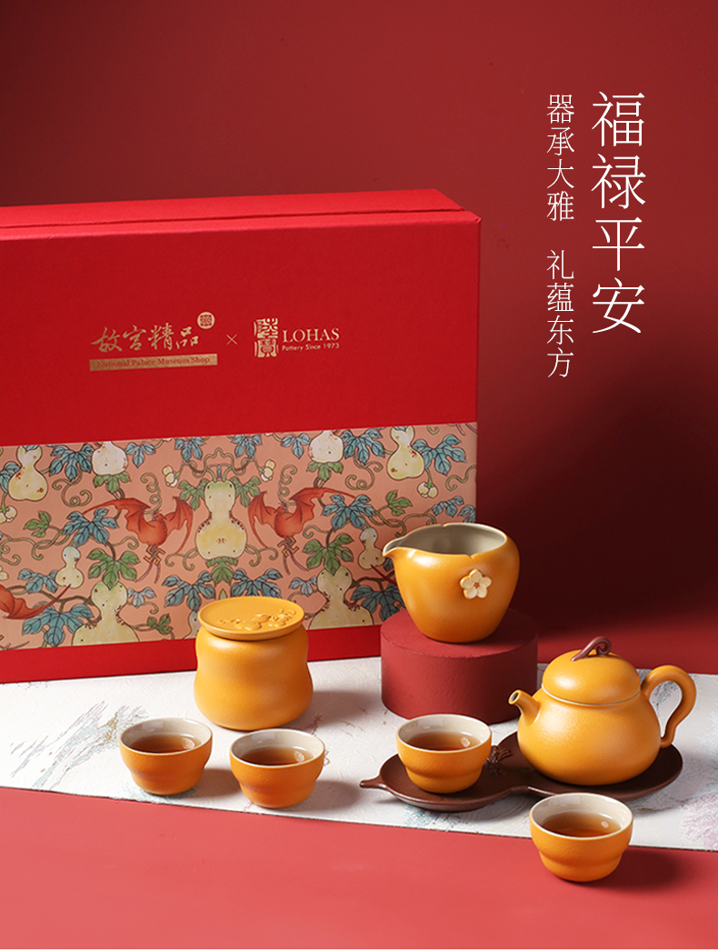 陆宝联名陶瓷功夫茶具套装家用送礼中式高档装福禄平安茶具礼盒组