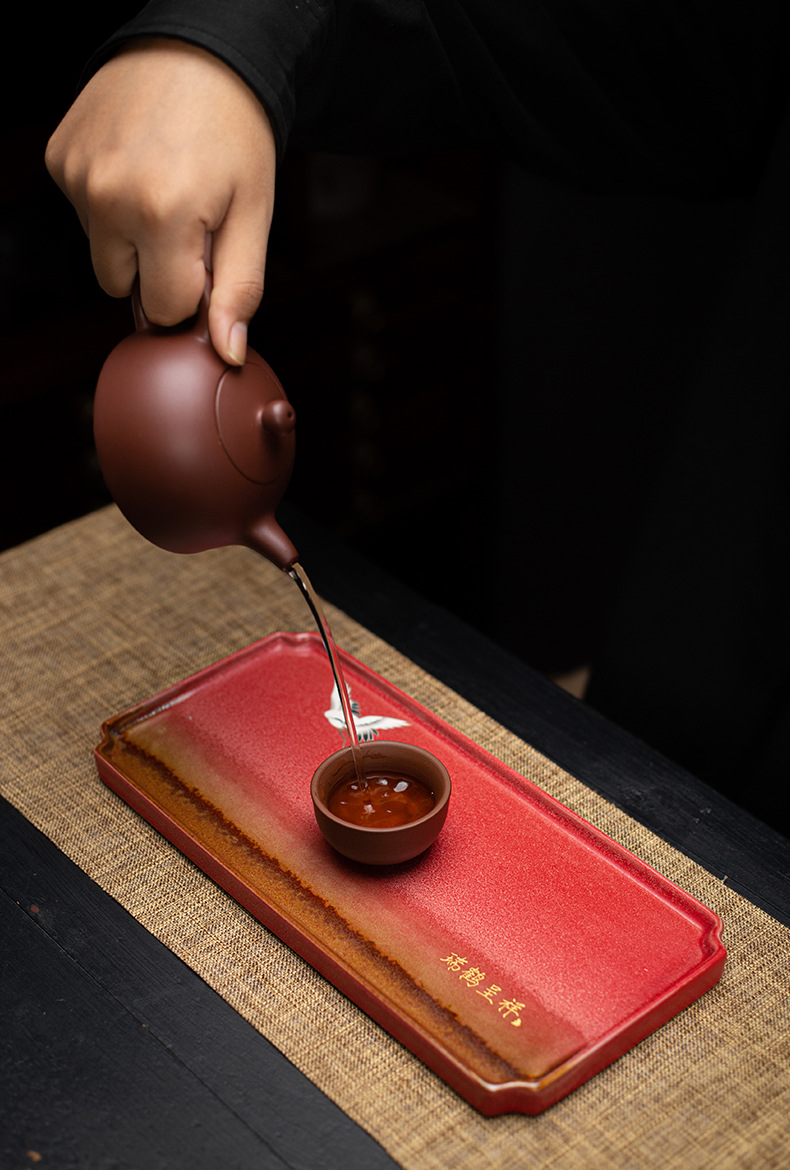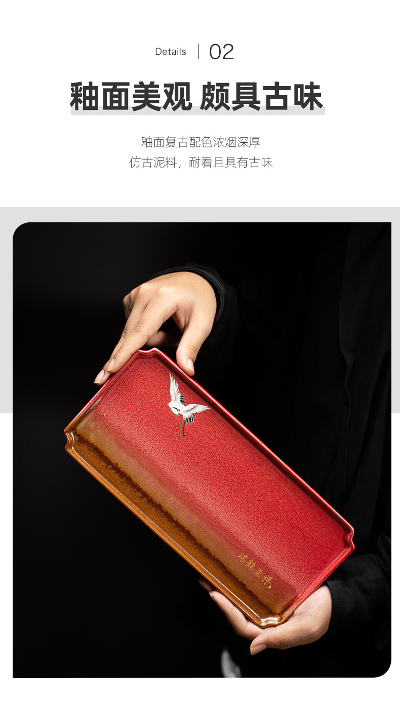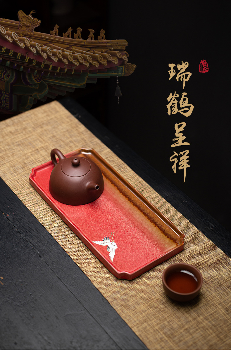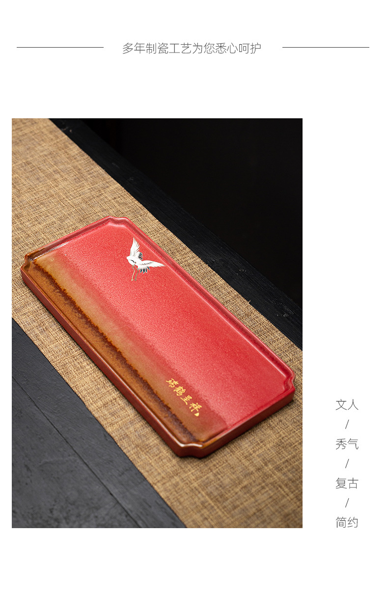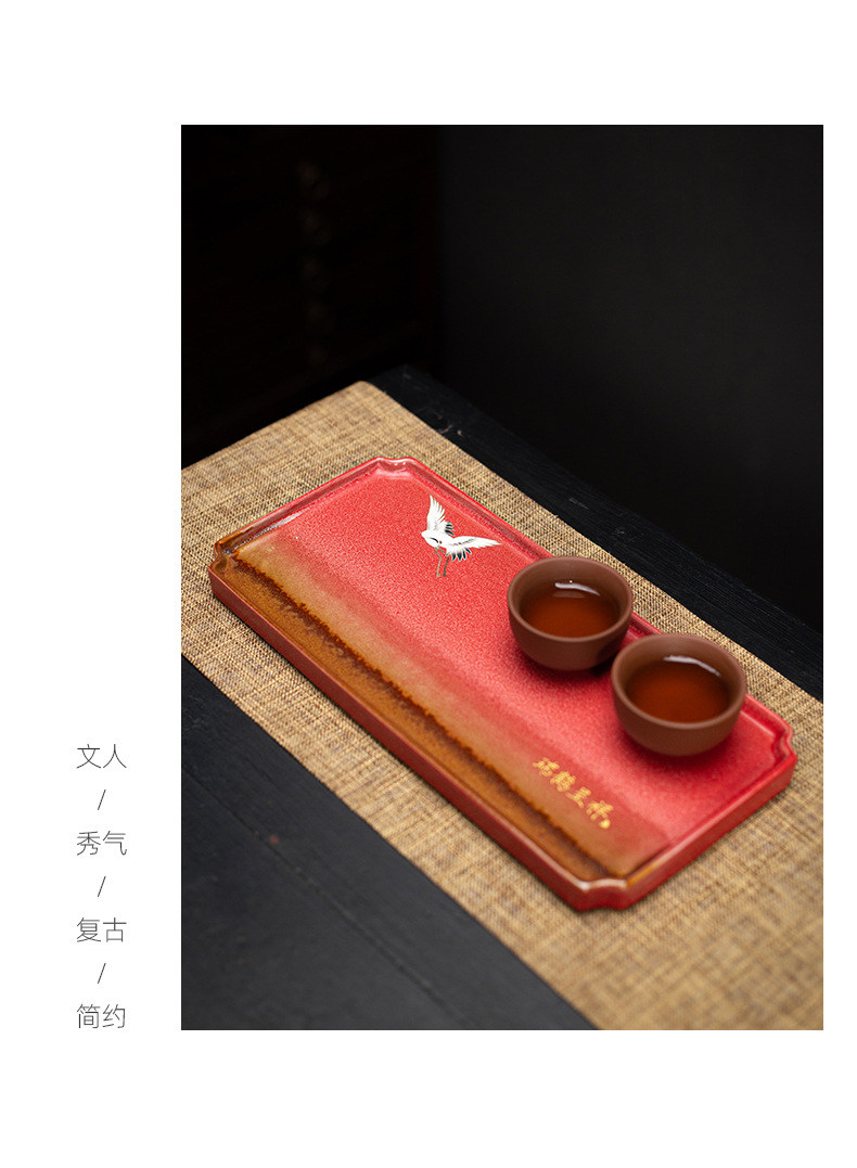 宫墙红干泡盘家用茶具喜字盘长方盘水果盘糕点盘陶瓷餐具婚庆茶盘