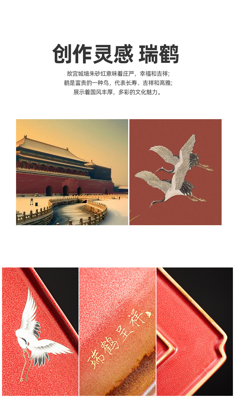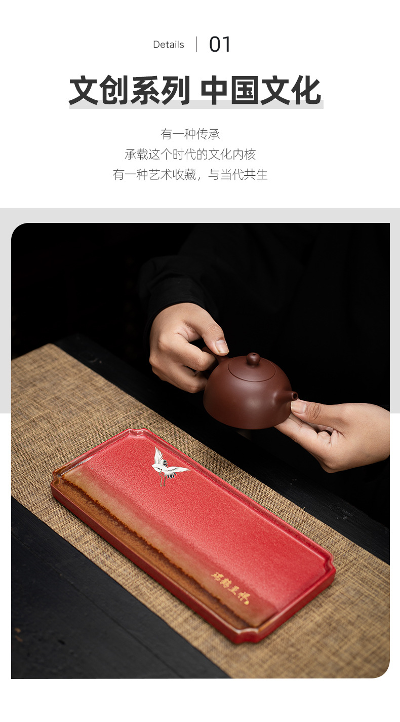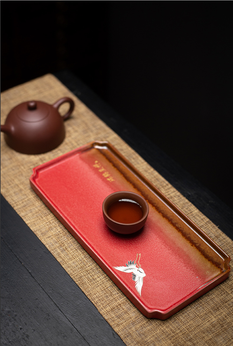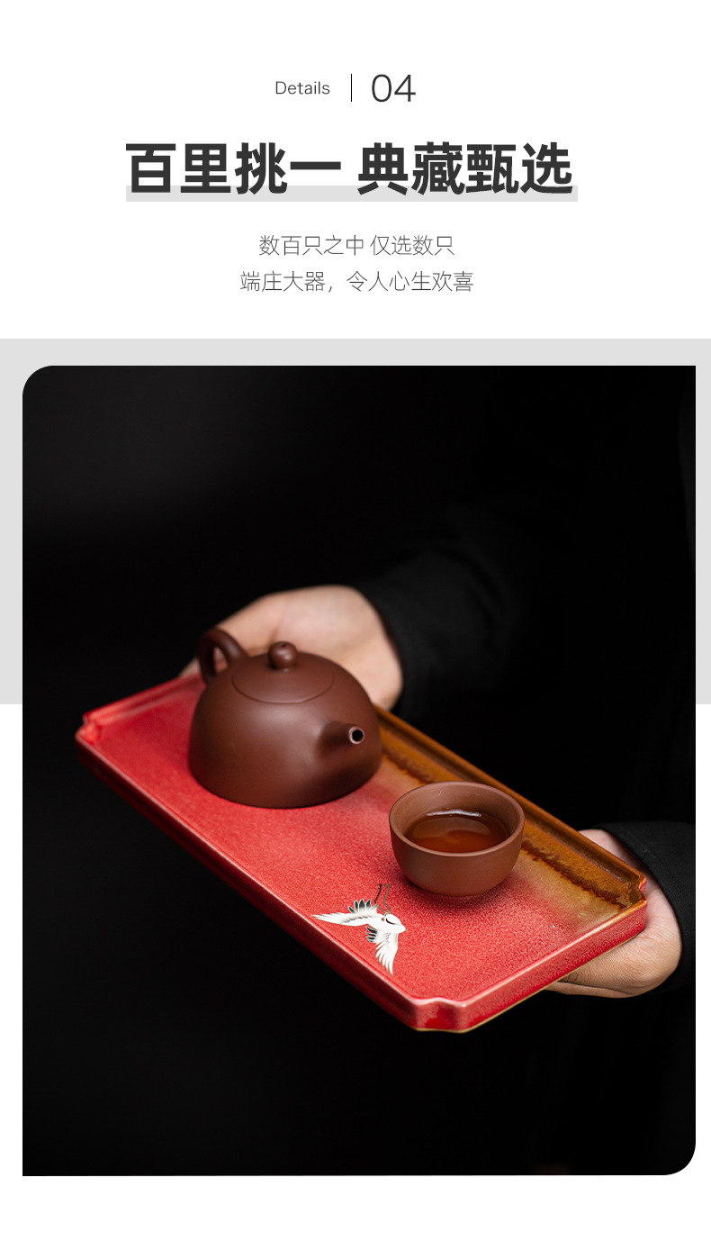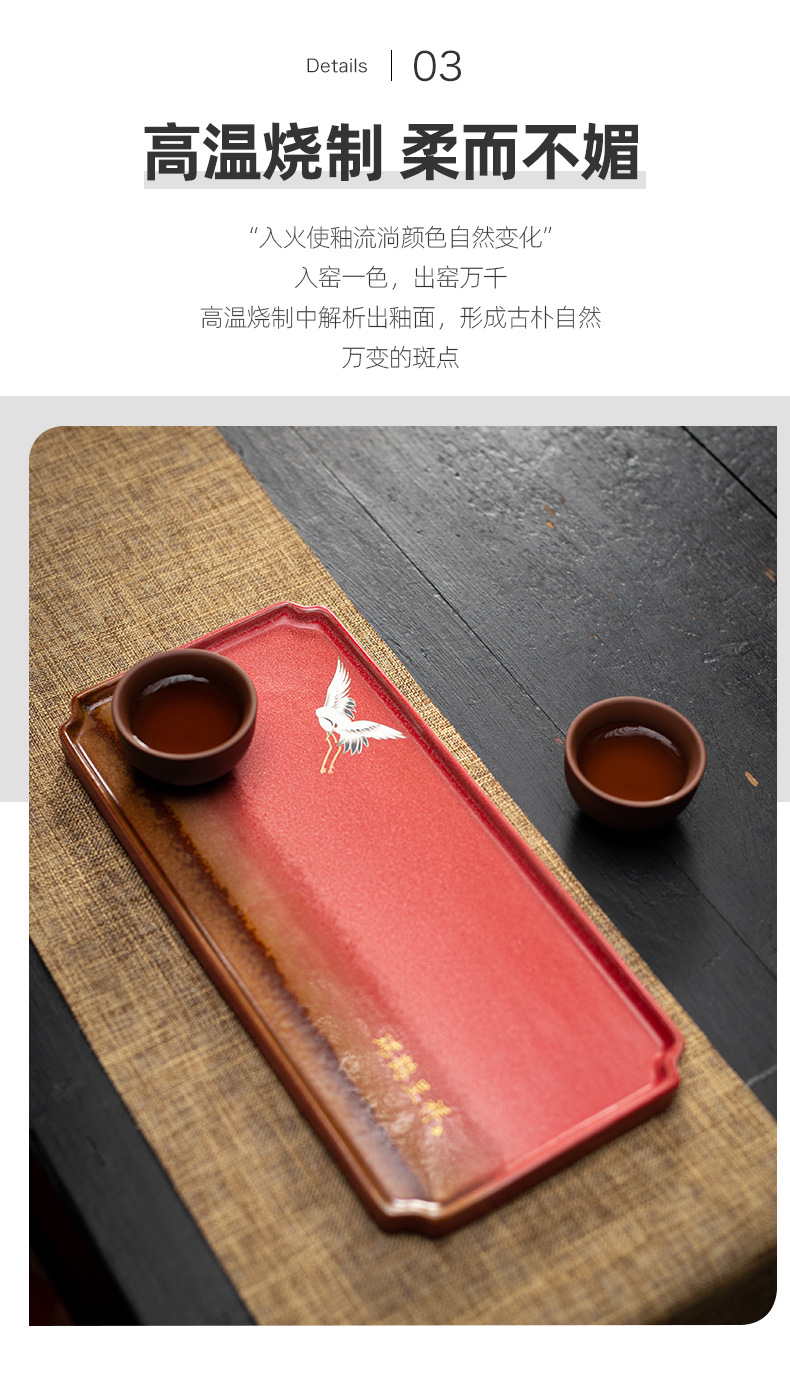 宫墙红干泡盘家用茶具喜字盘长方盘水果盘糕点盘陶瓷餐具婚庆茶盘
