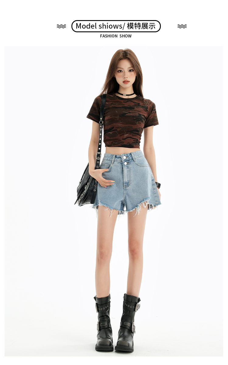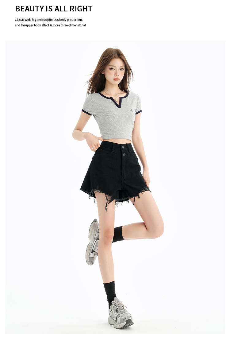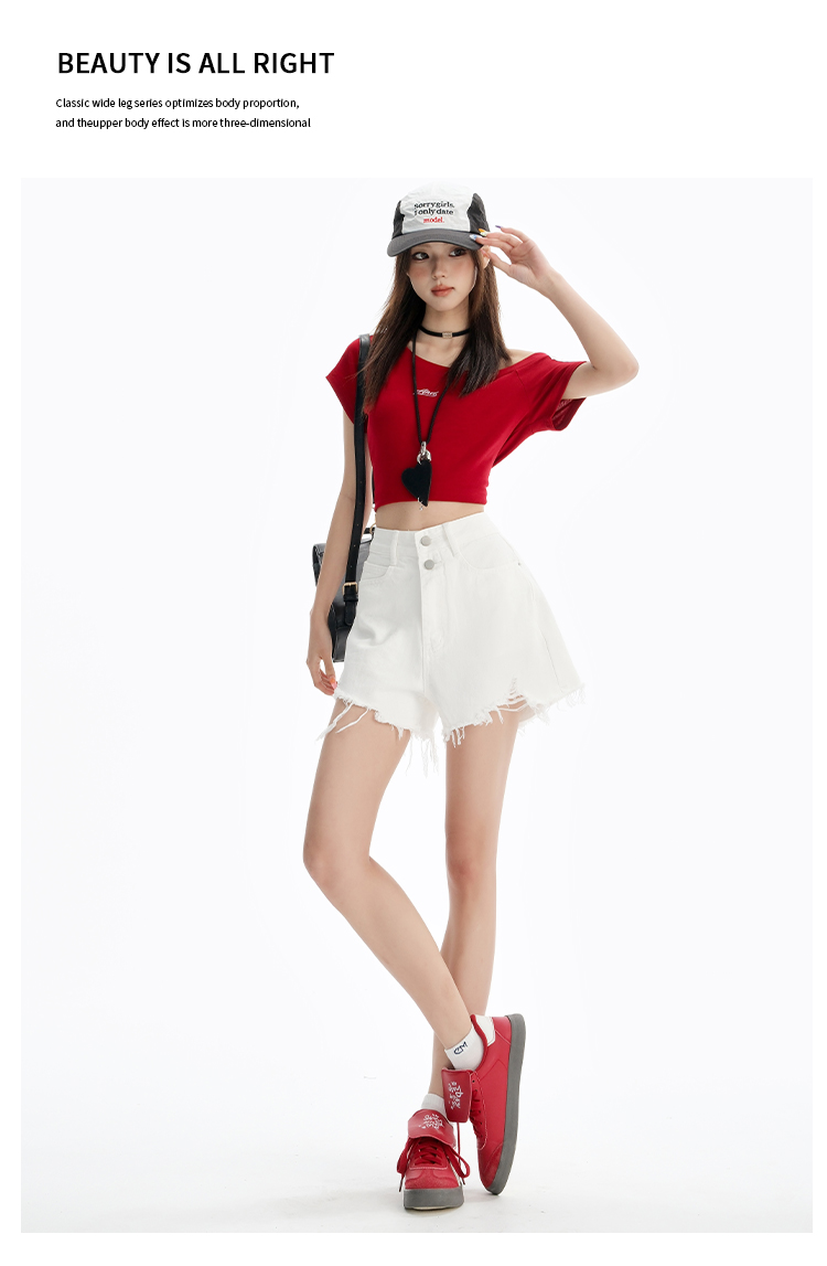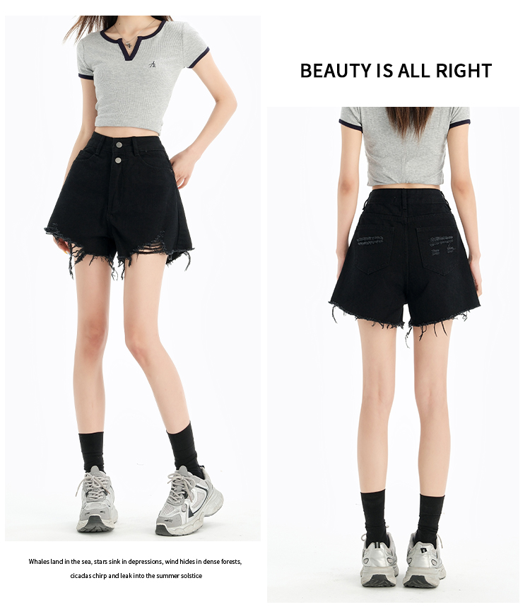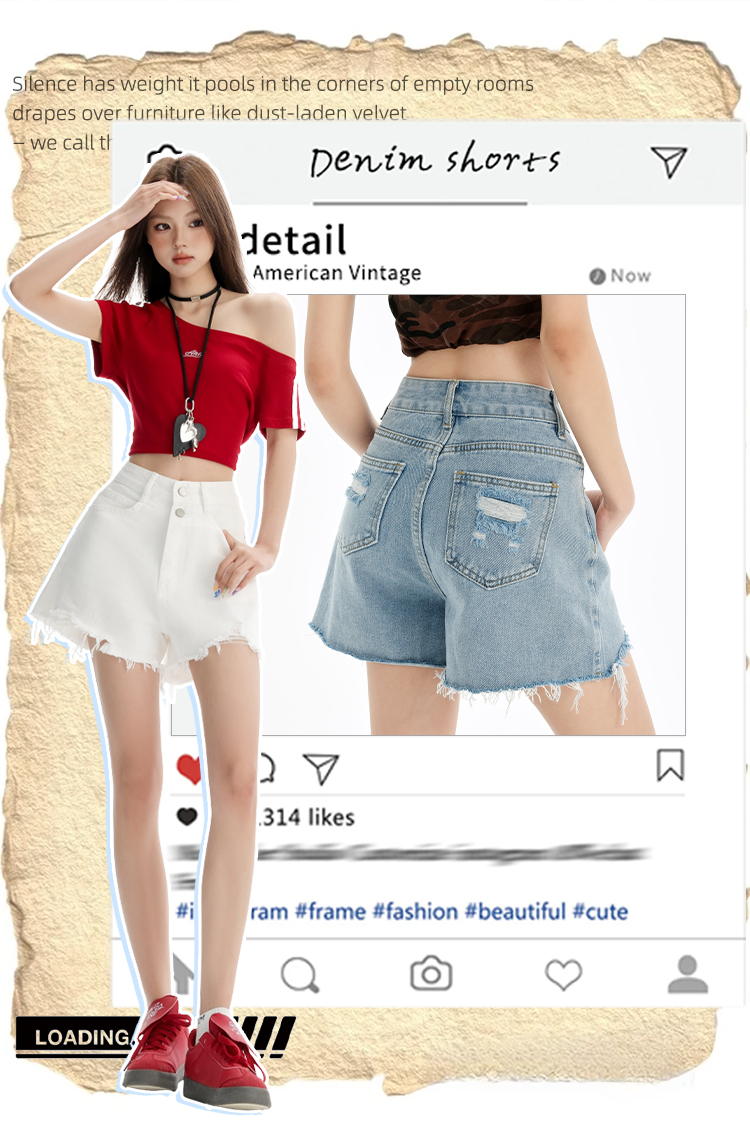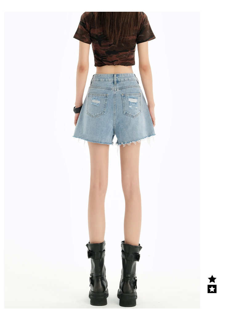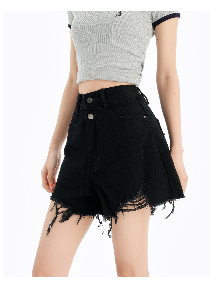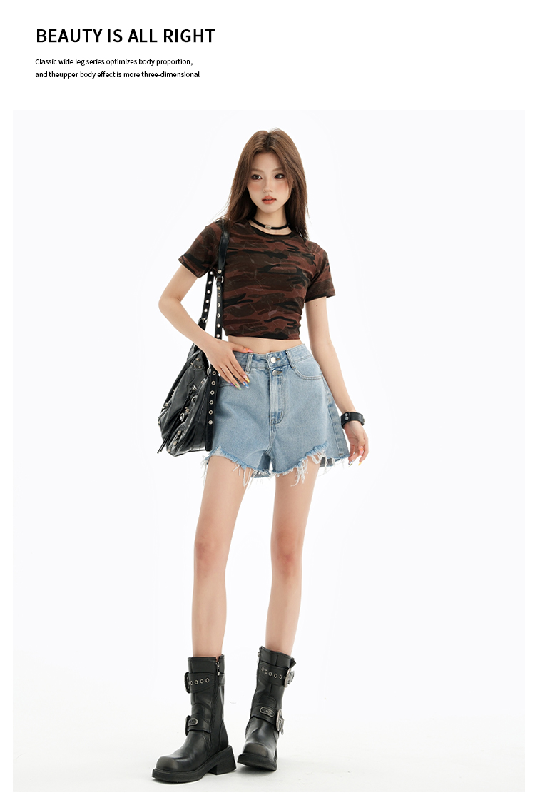 罗蒙女士夏季牛仔短裤高腰宽松显瘦时尚百搭休闲通勤女短裤