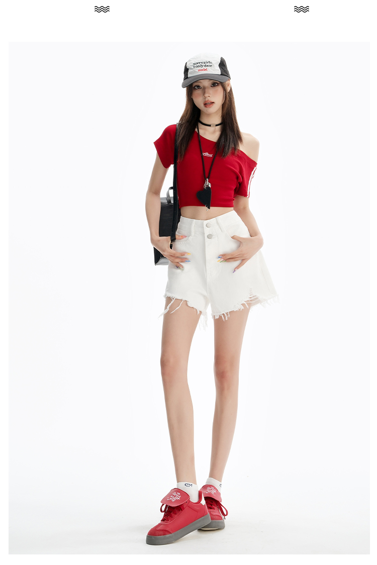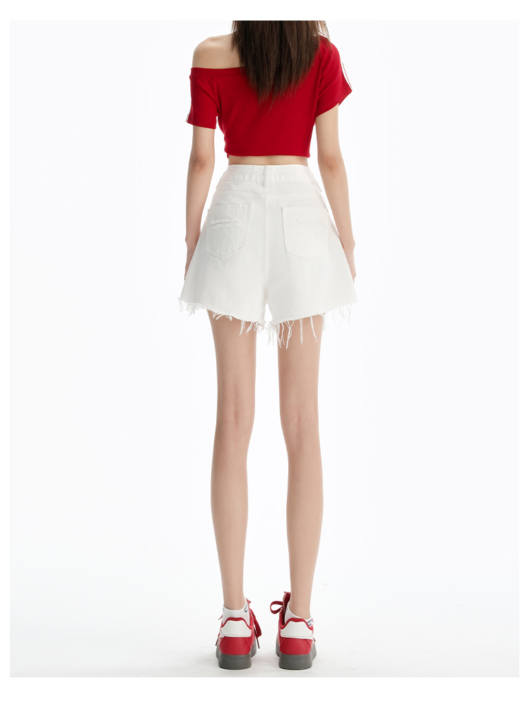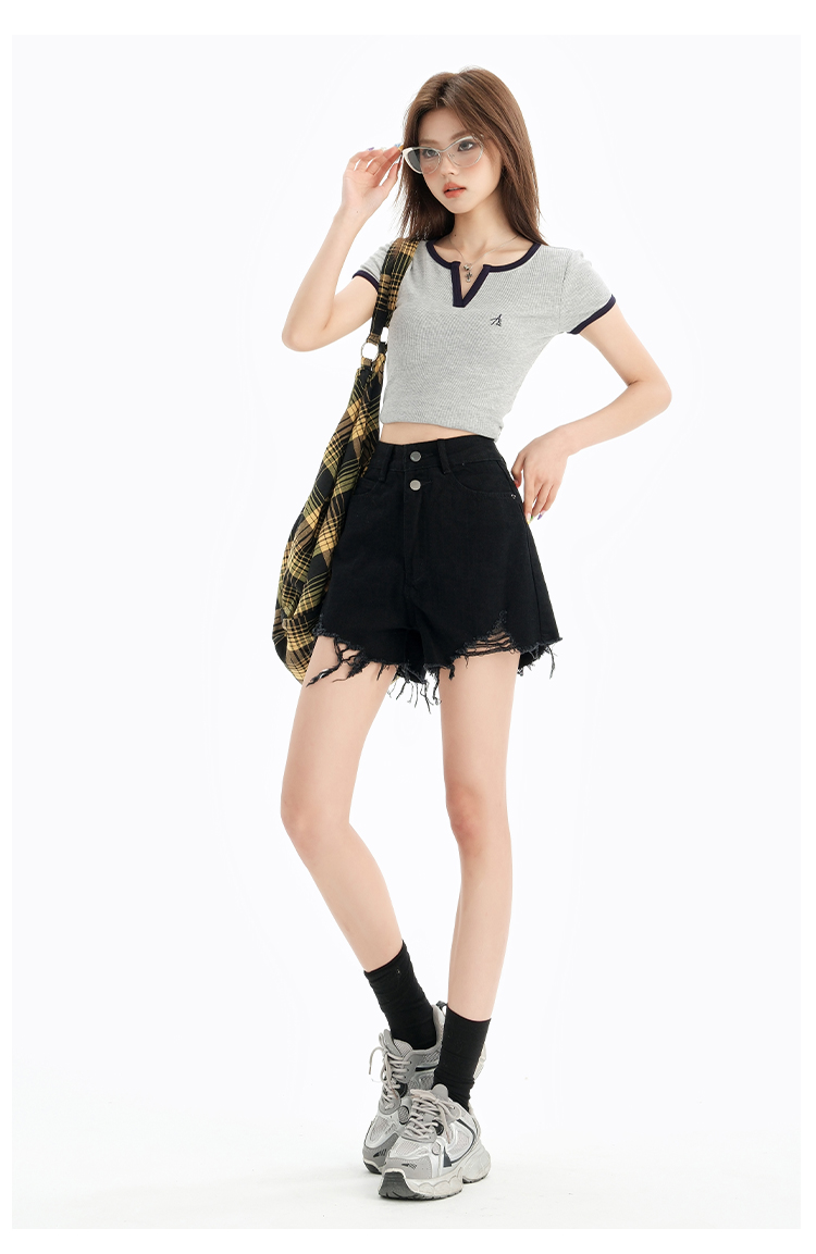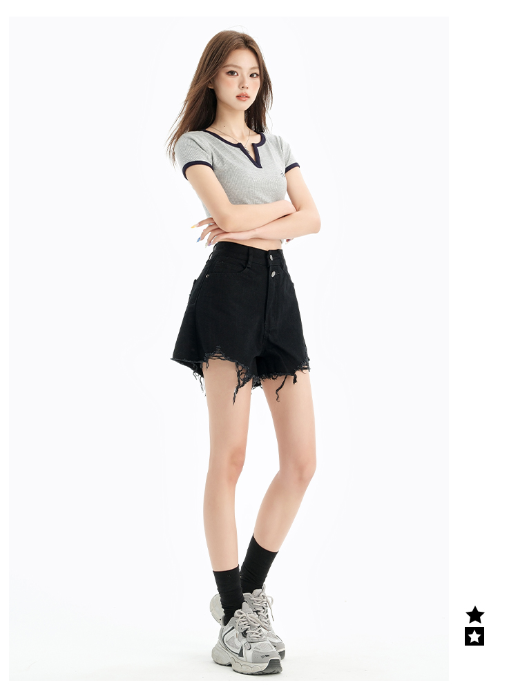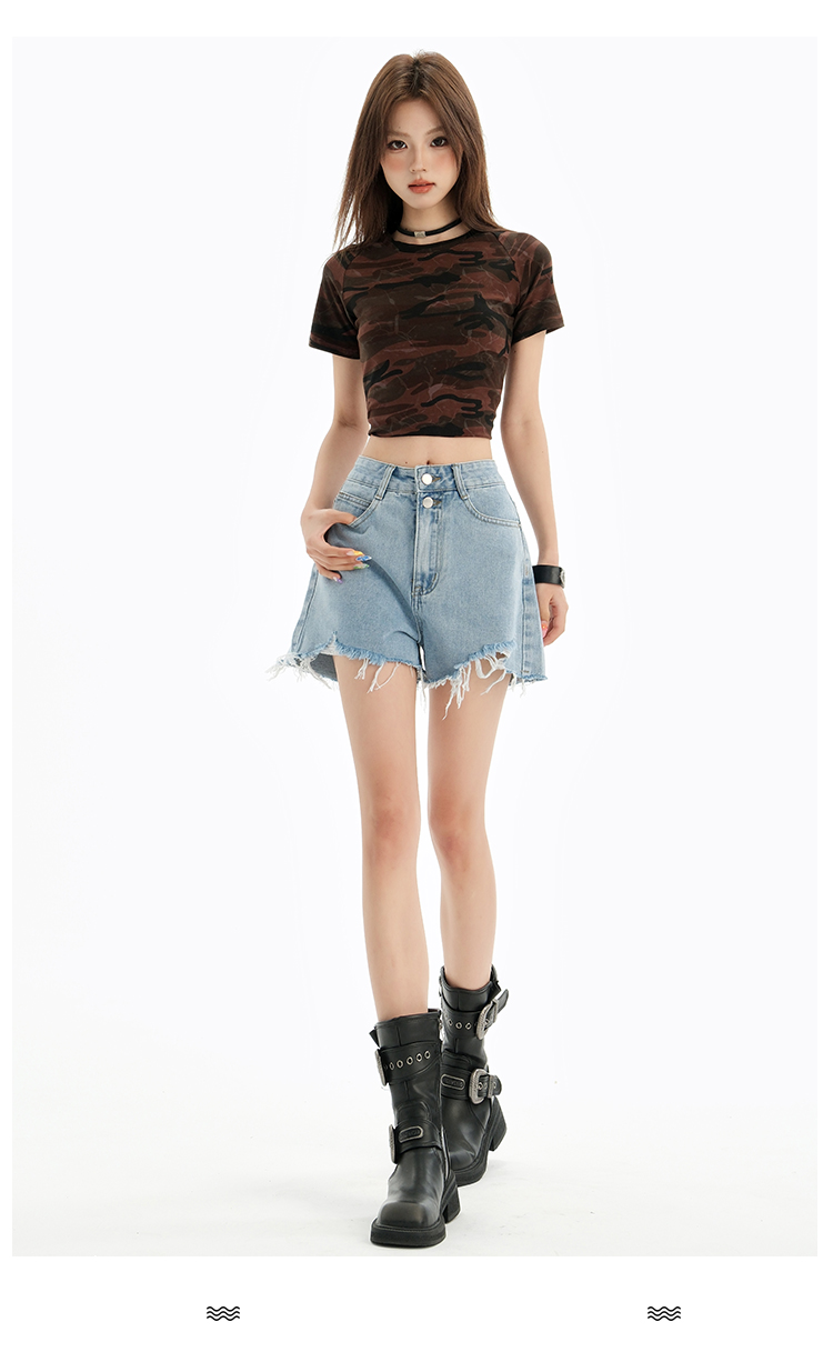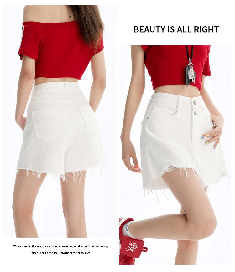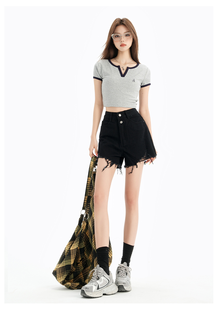 罗蒙女士夏季牛仔短裤高腰宽松显瘦时尚百搭休闲通勤女短裤