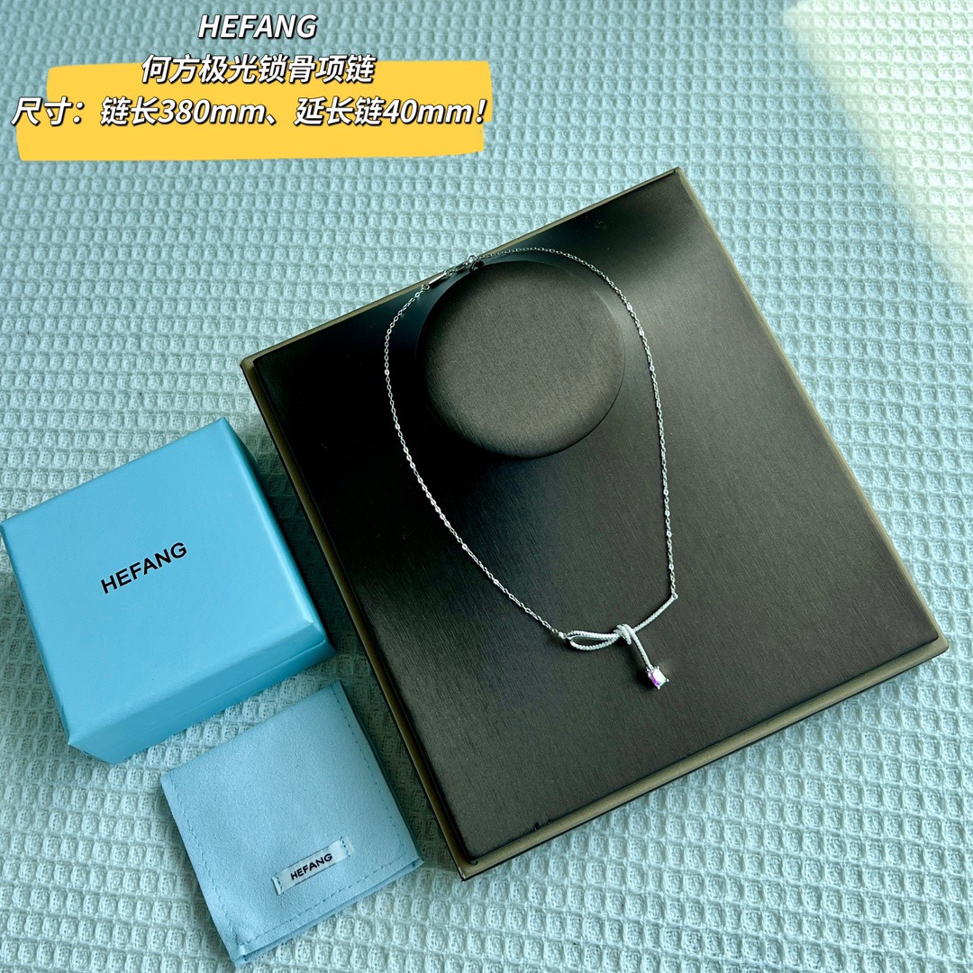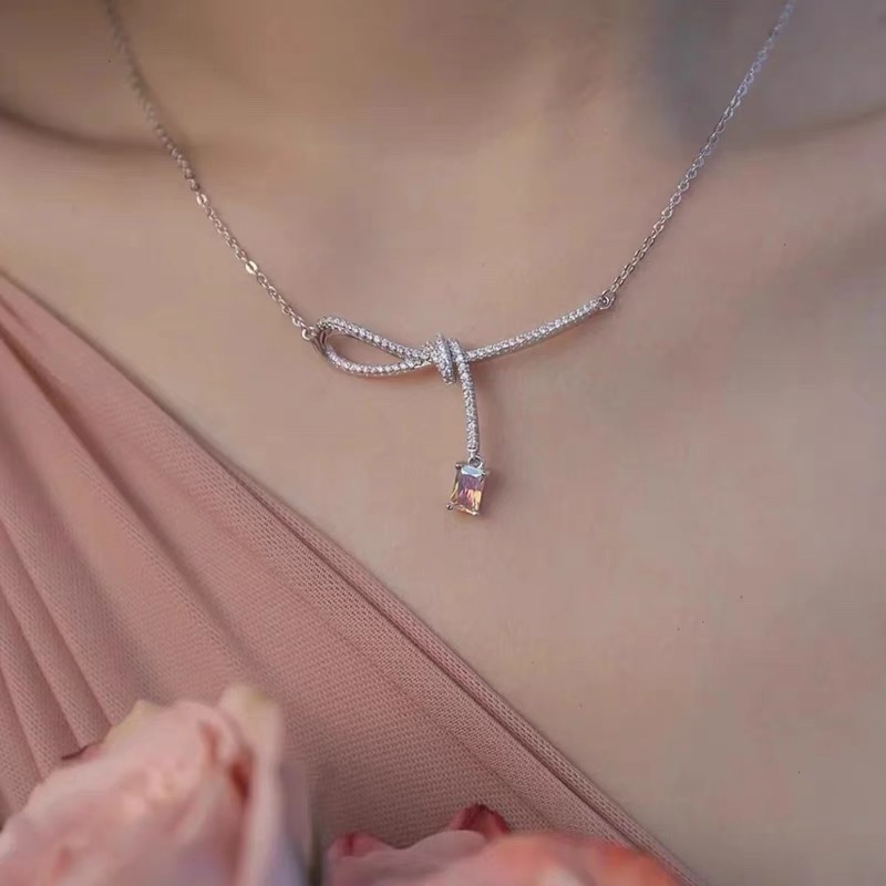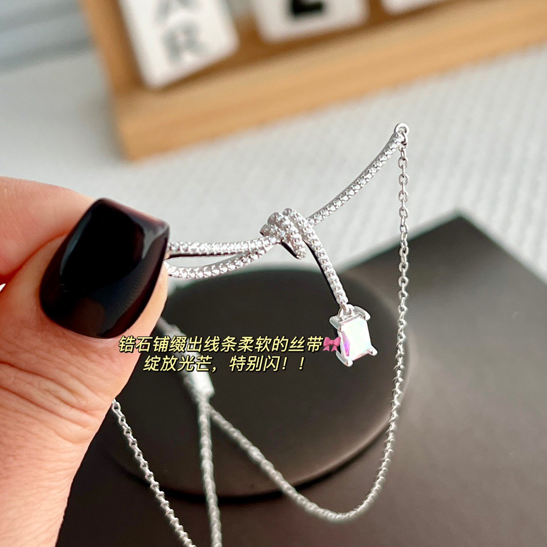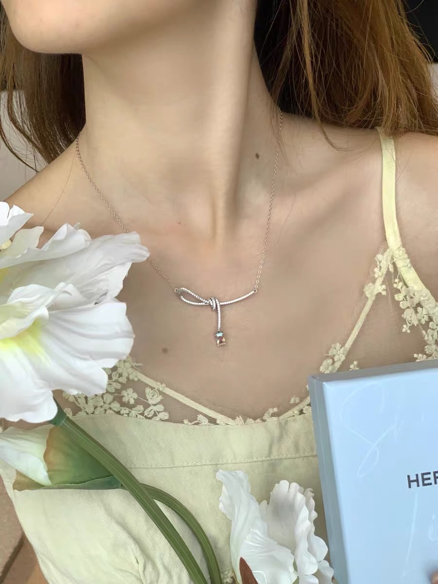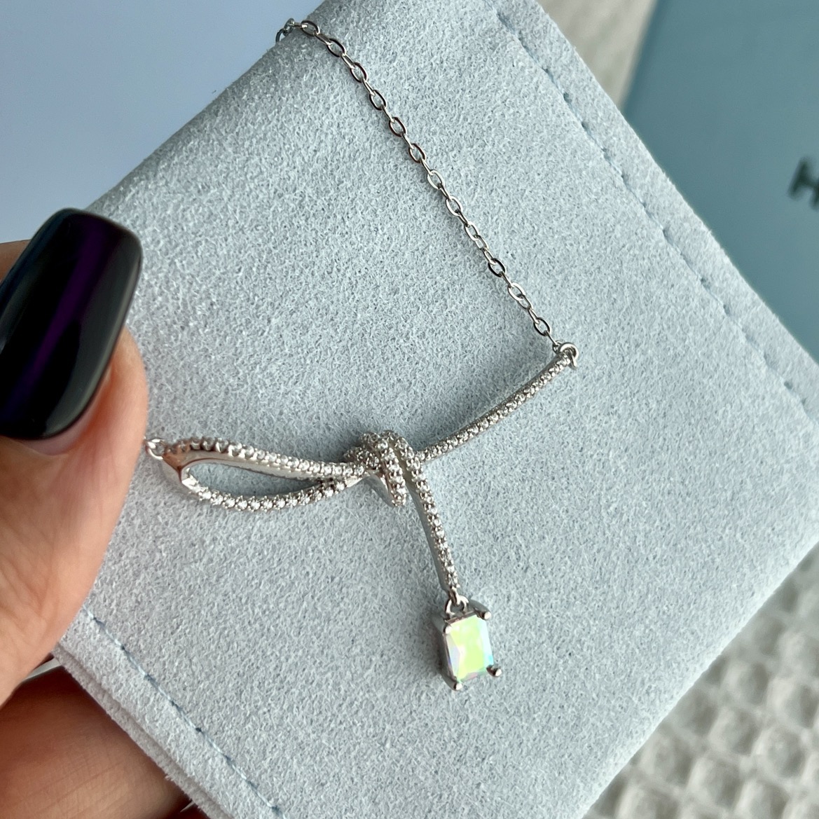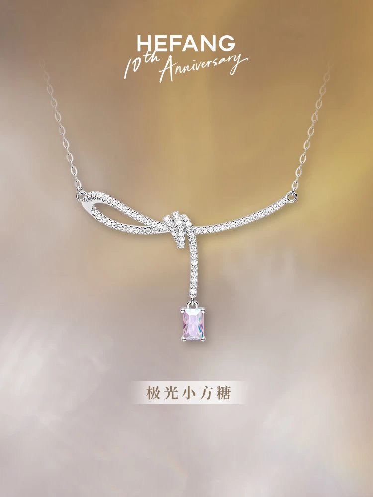 💰239元包邮, 整条925纯银 何方珠宝 极光丝带结锁骨链