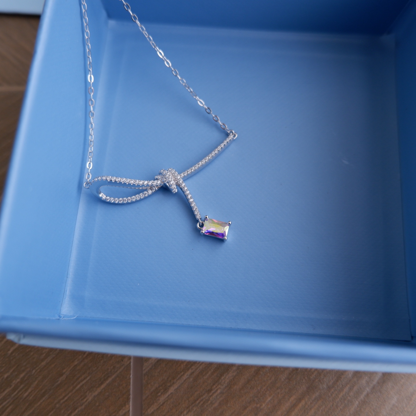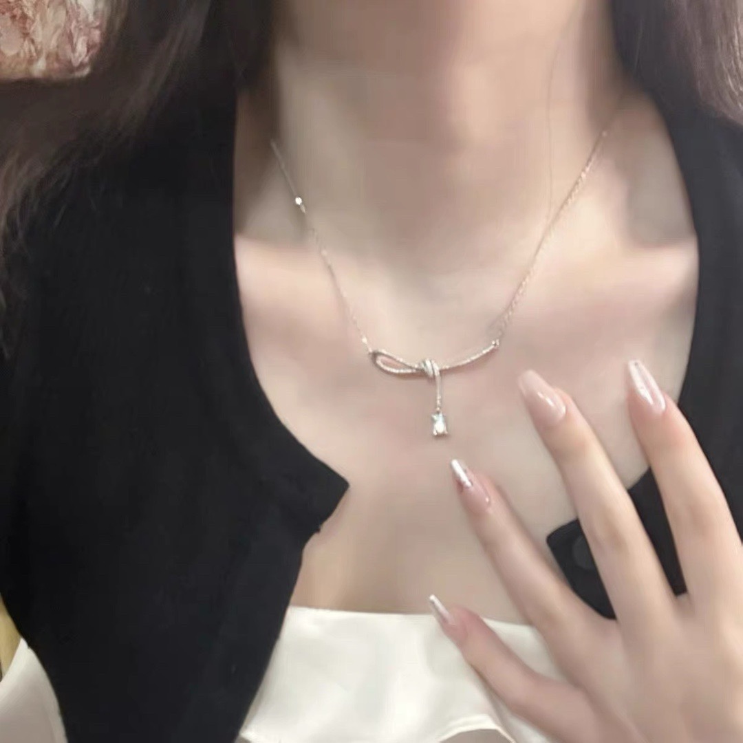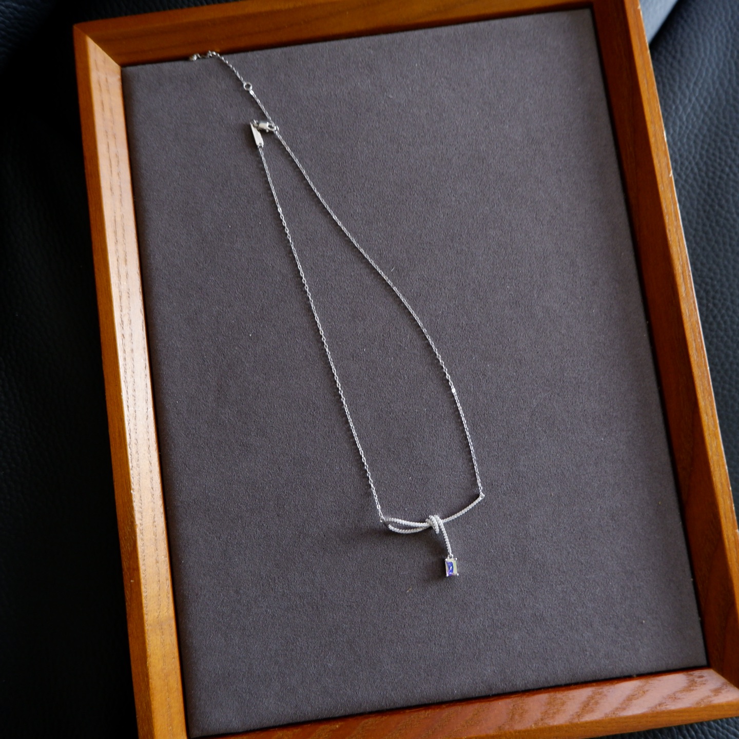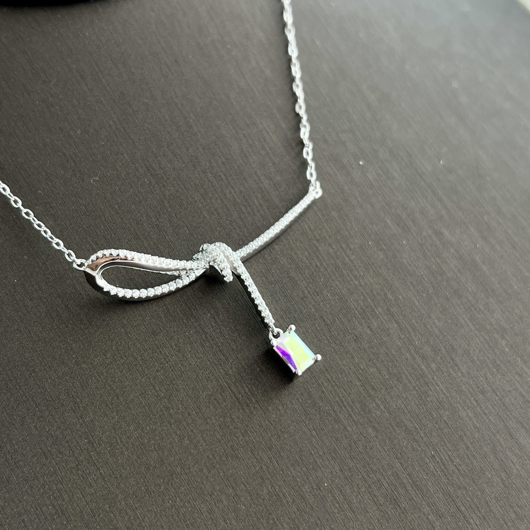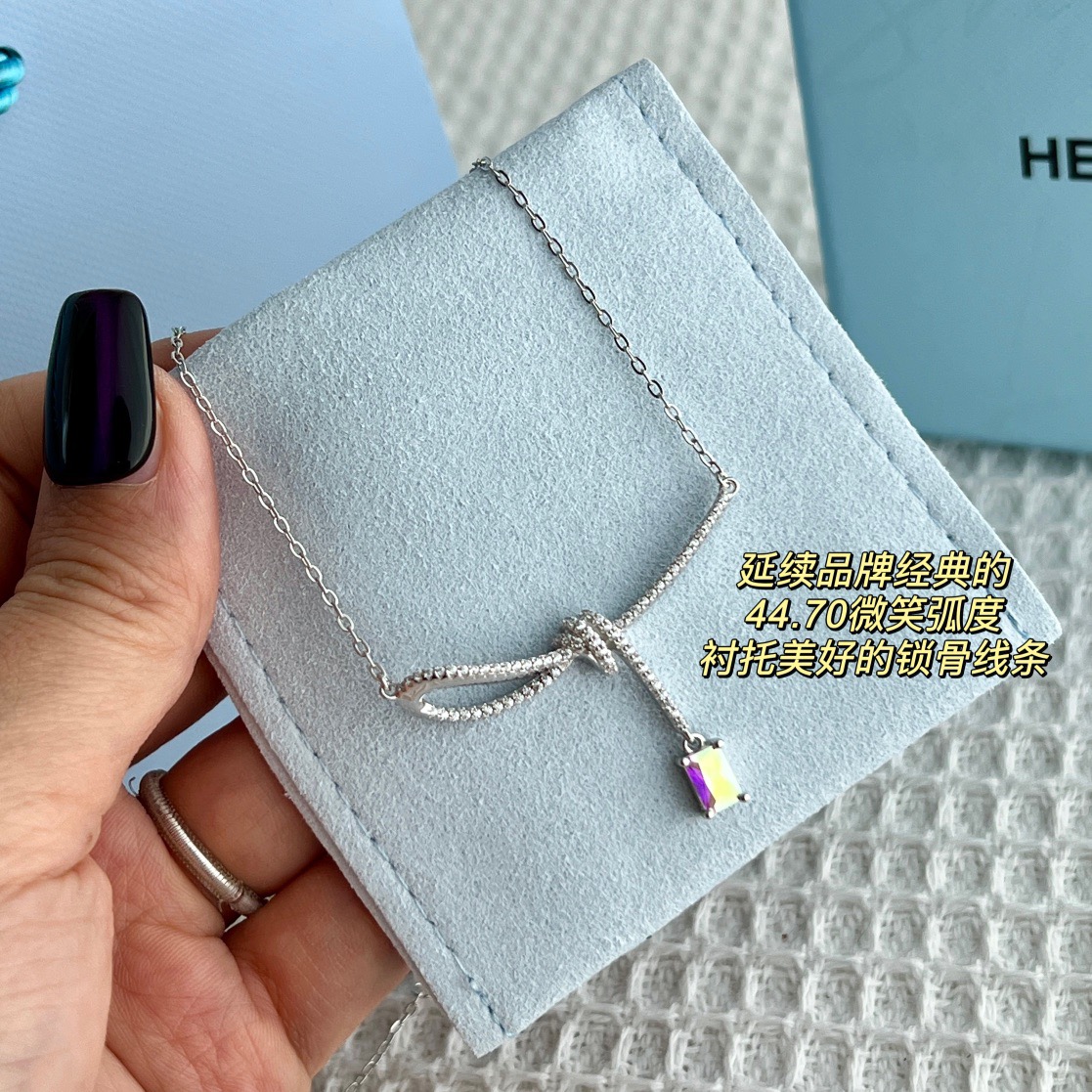 💰239元包邮, 整条925纯银 何方珠宝 极光丝带结锁骨链