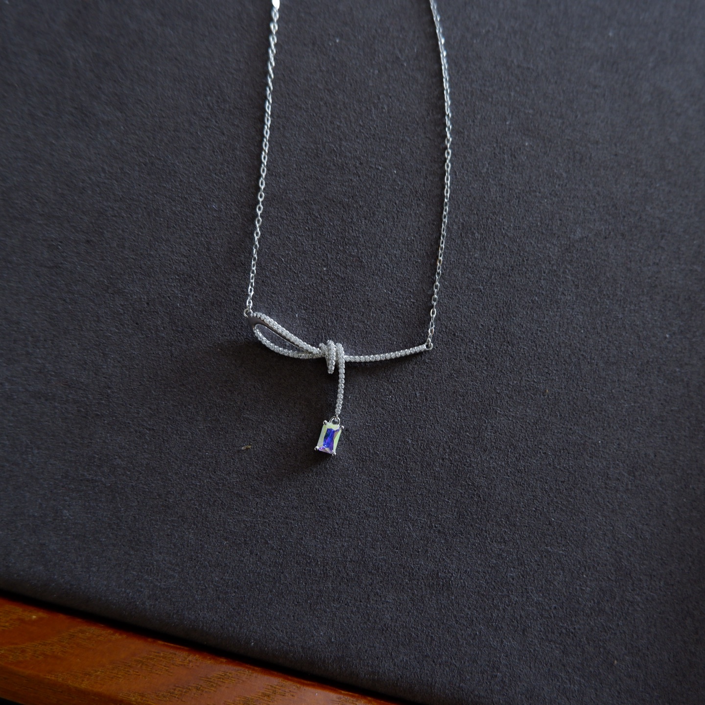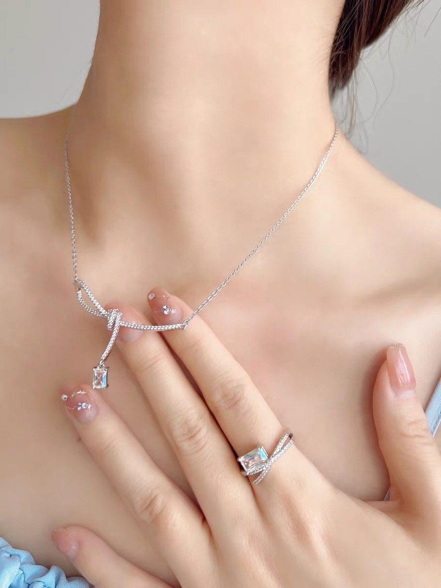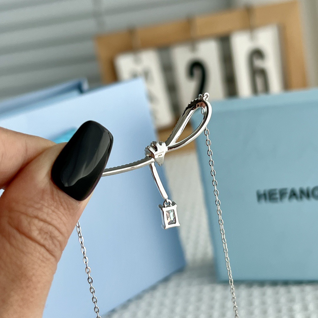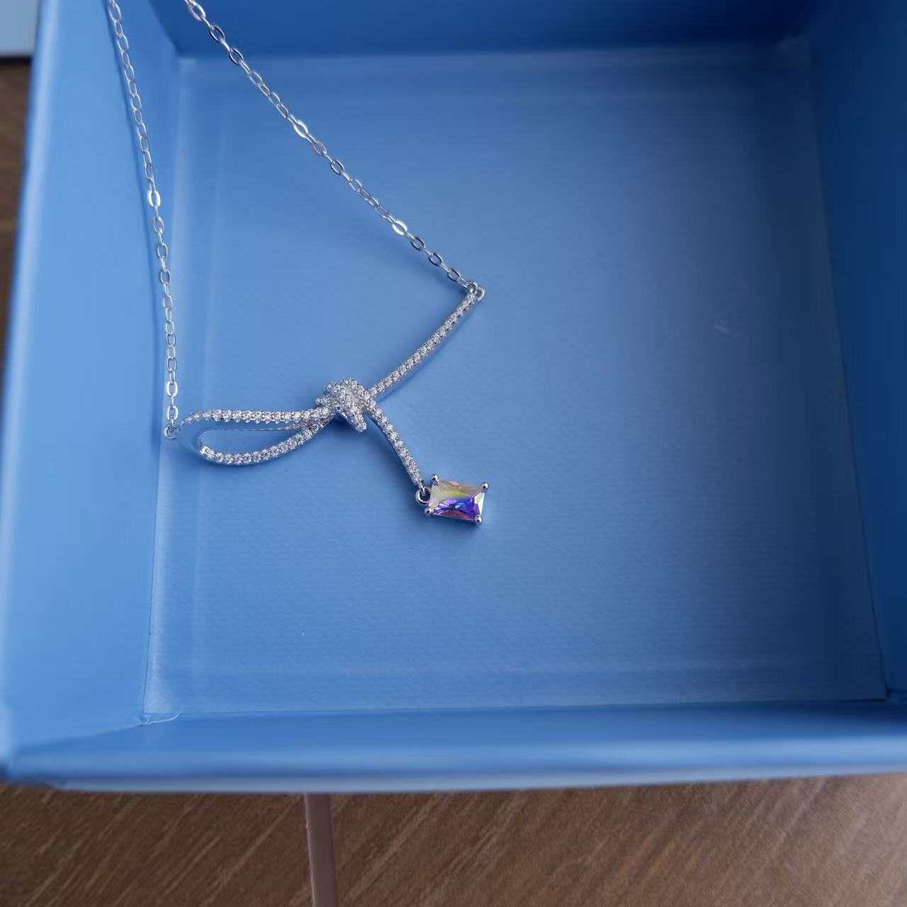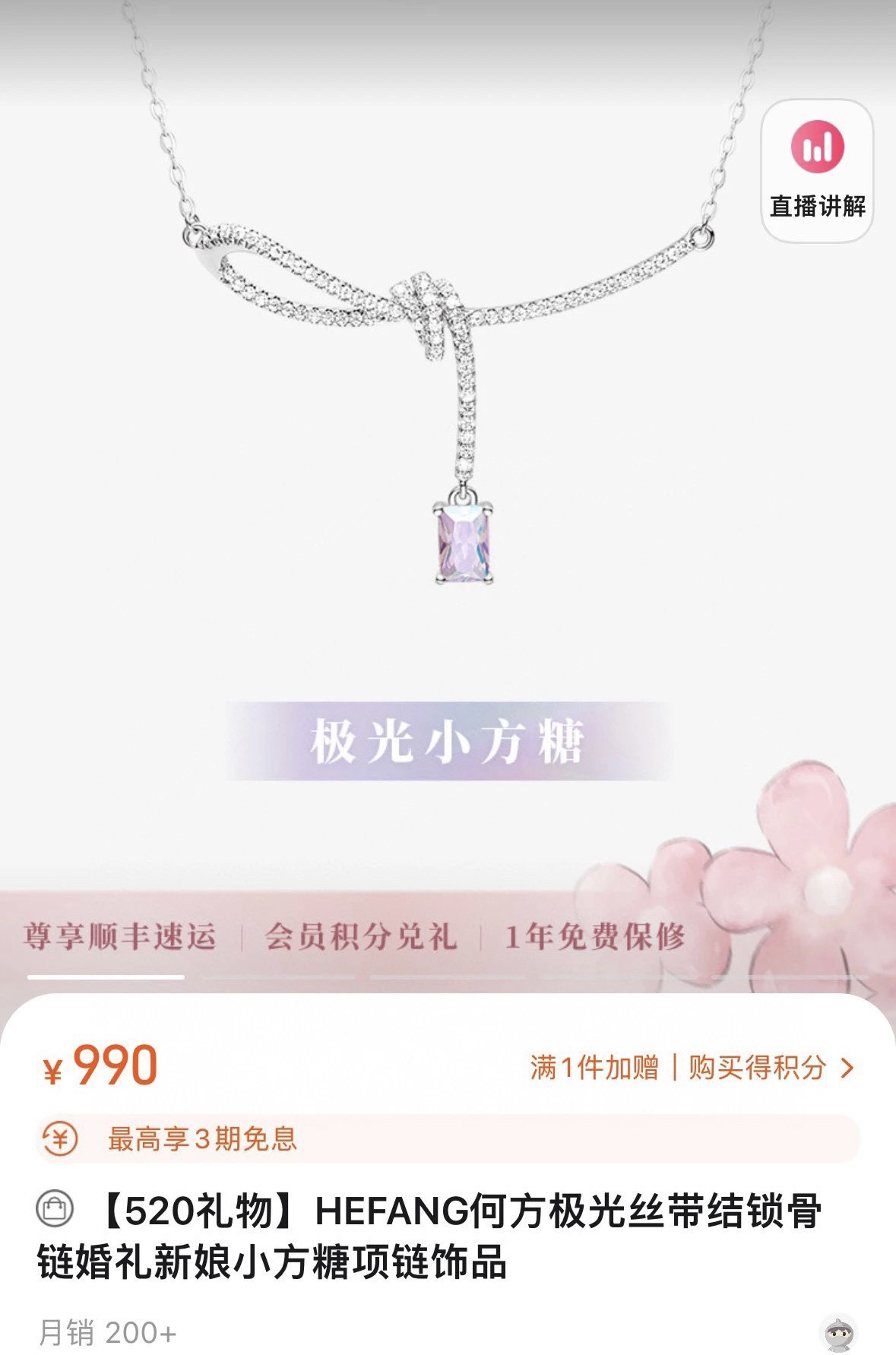 💰239元包邮, 整条925纯银 何方珠宝 极光丝带结锁骨链