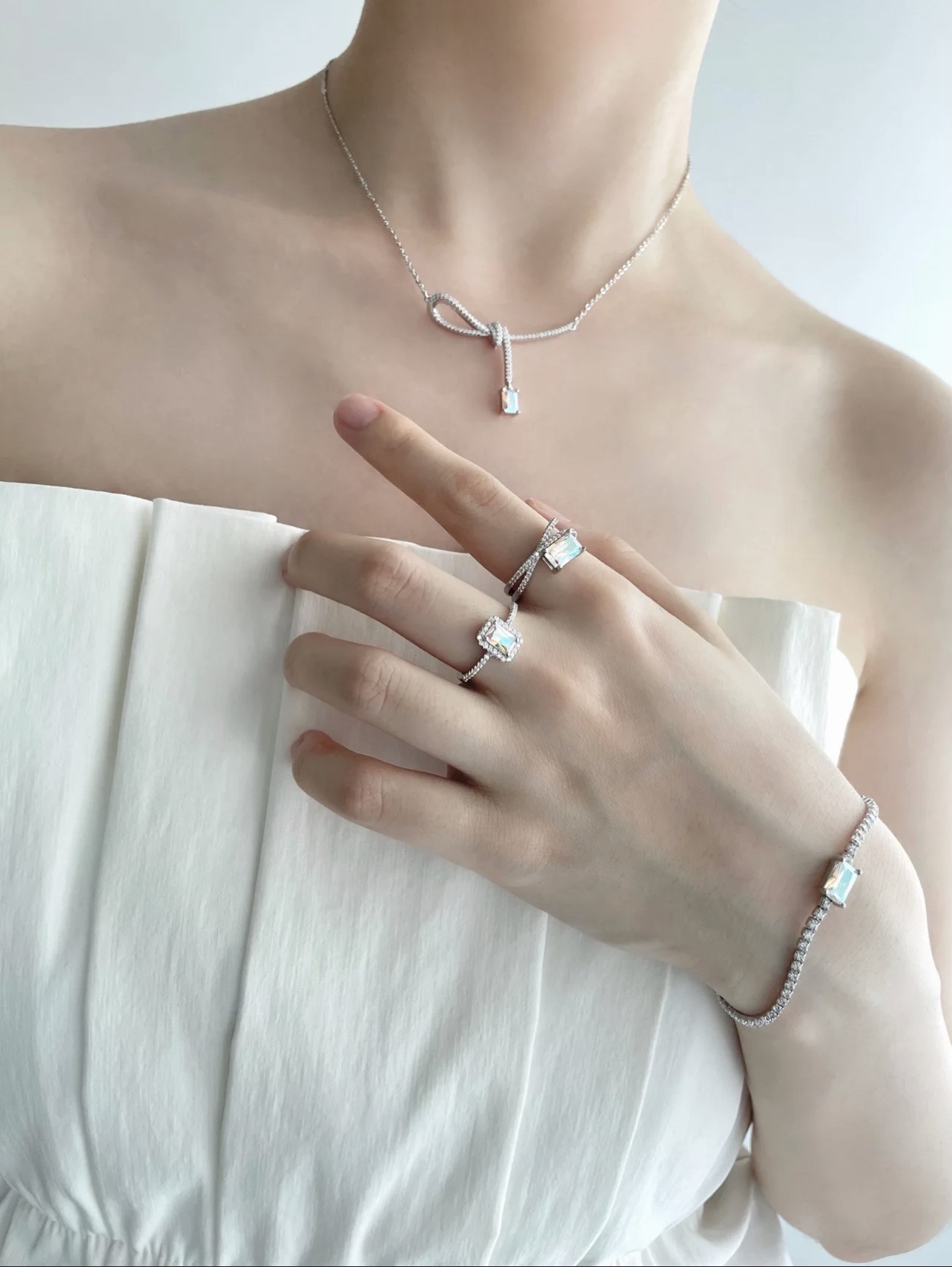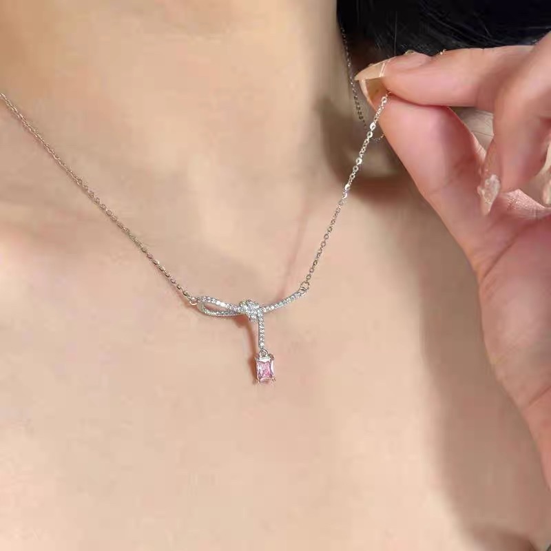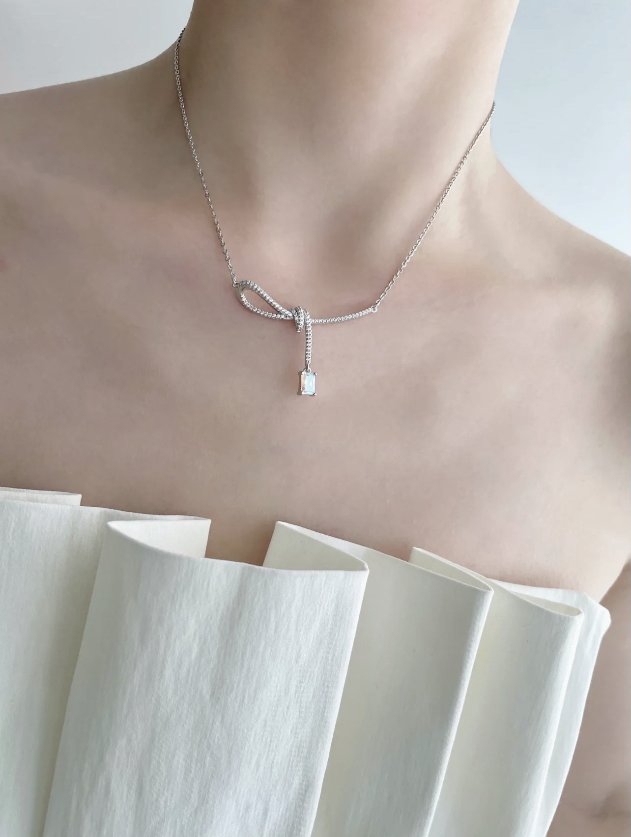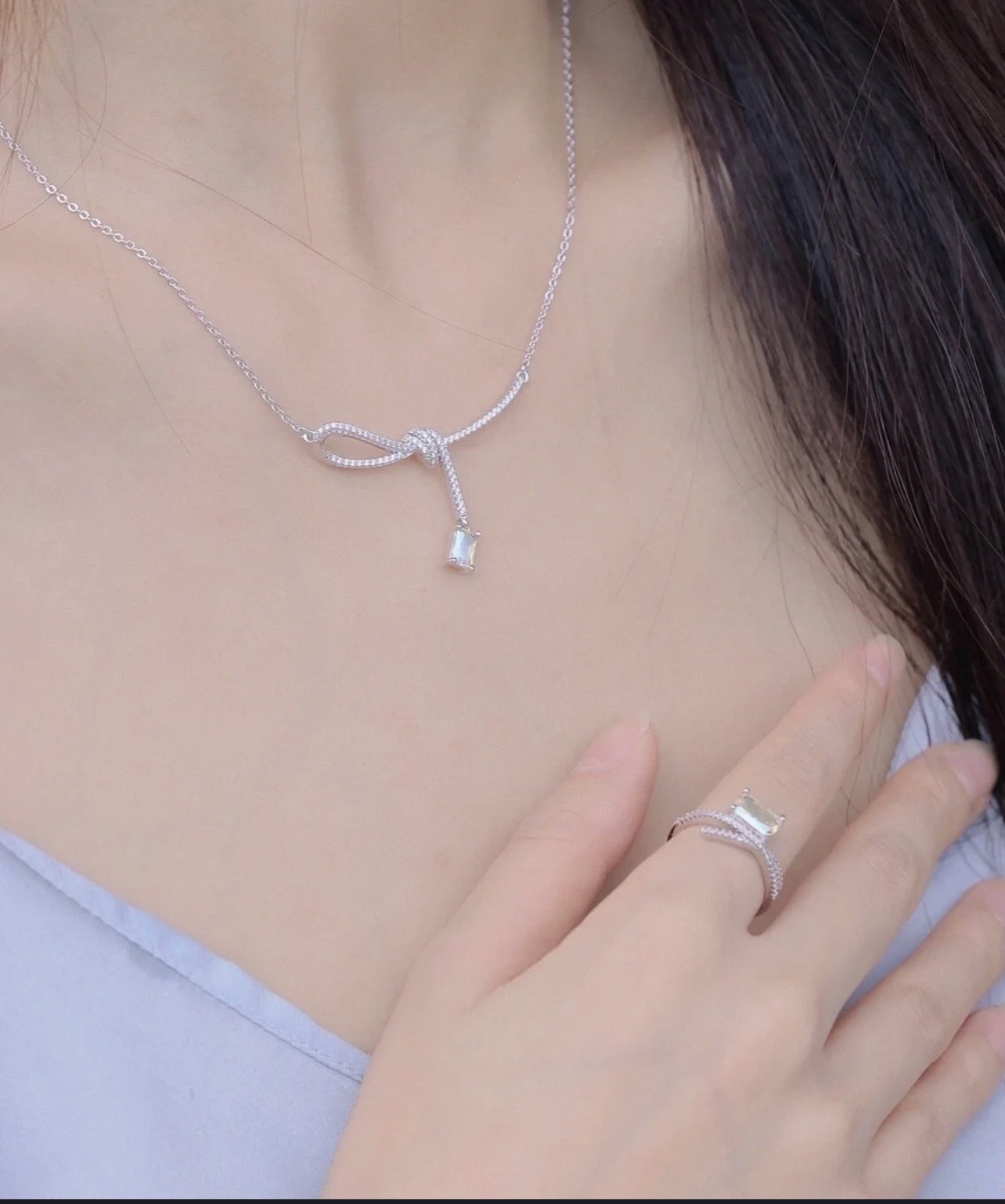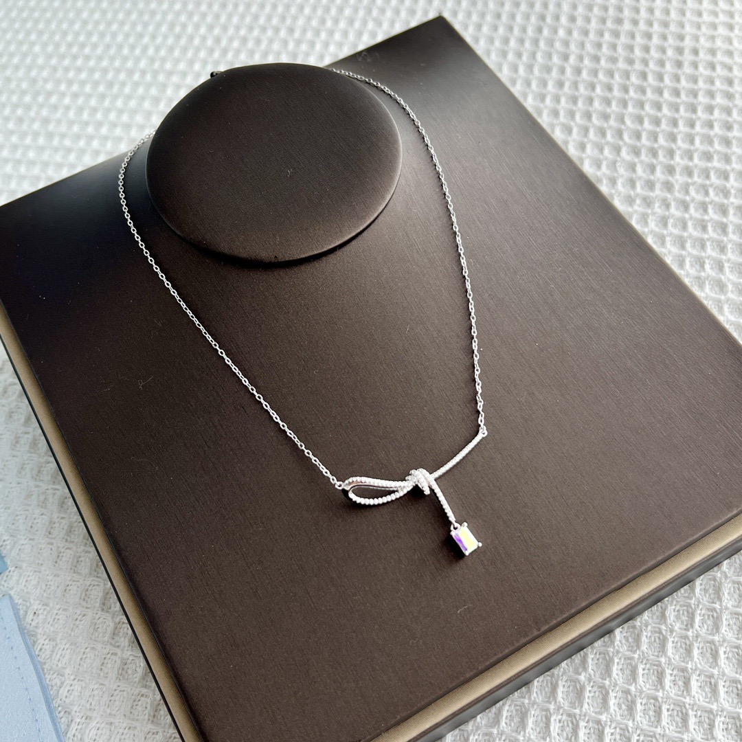 💰239元包邮, 整条925纯银 何方珠宝 极光丝带结锁骨链