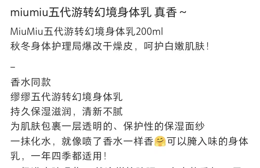【品名】miumiu缪缪游转幻境身体乳200ml