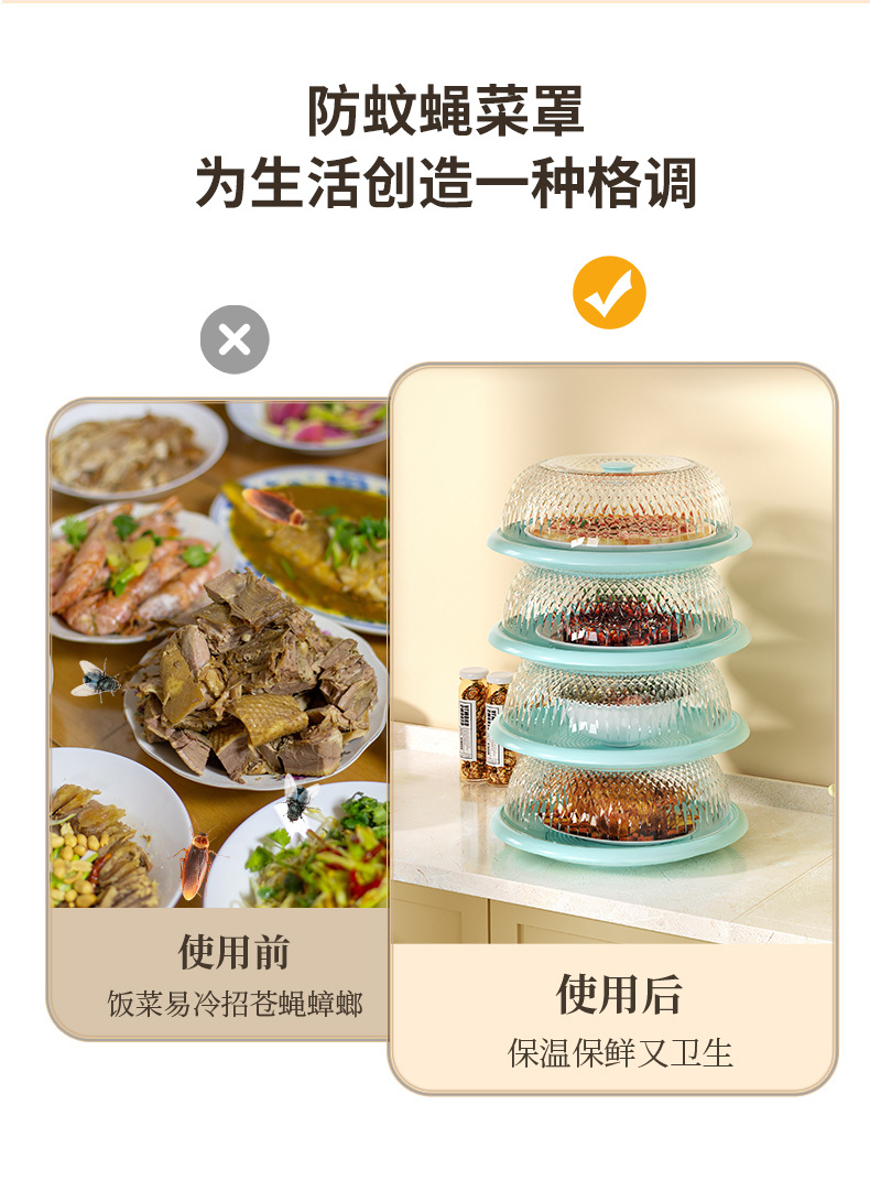 「多层叠加!透明可视」镂空菜罩多层可叠加剩菜食物罩防尘防虫饭菜罩盖菜罩子餐桌罩厨房用品
