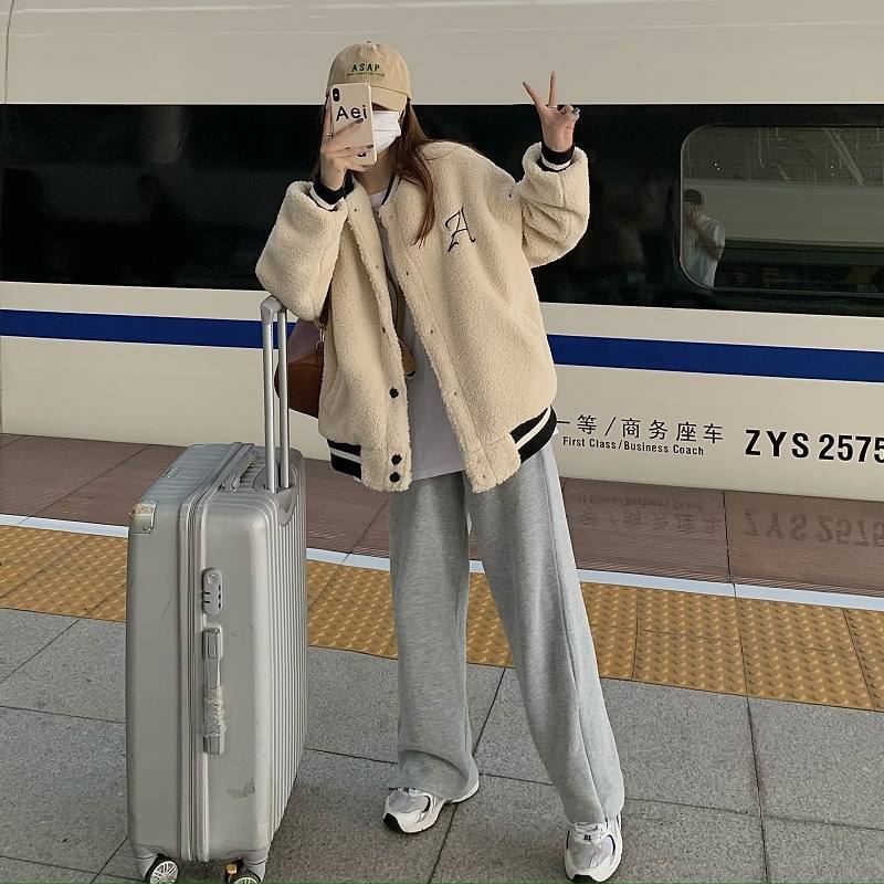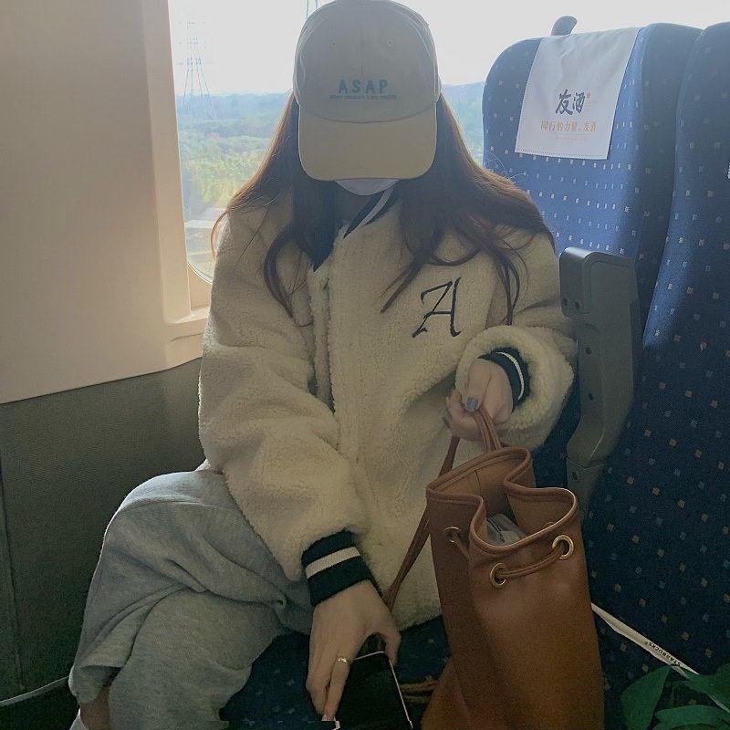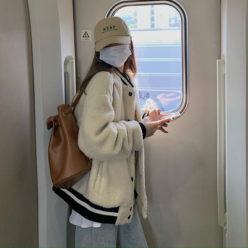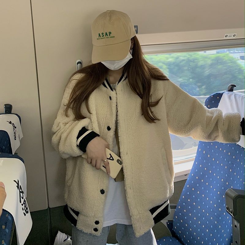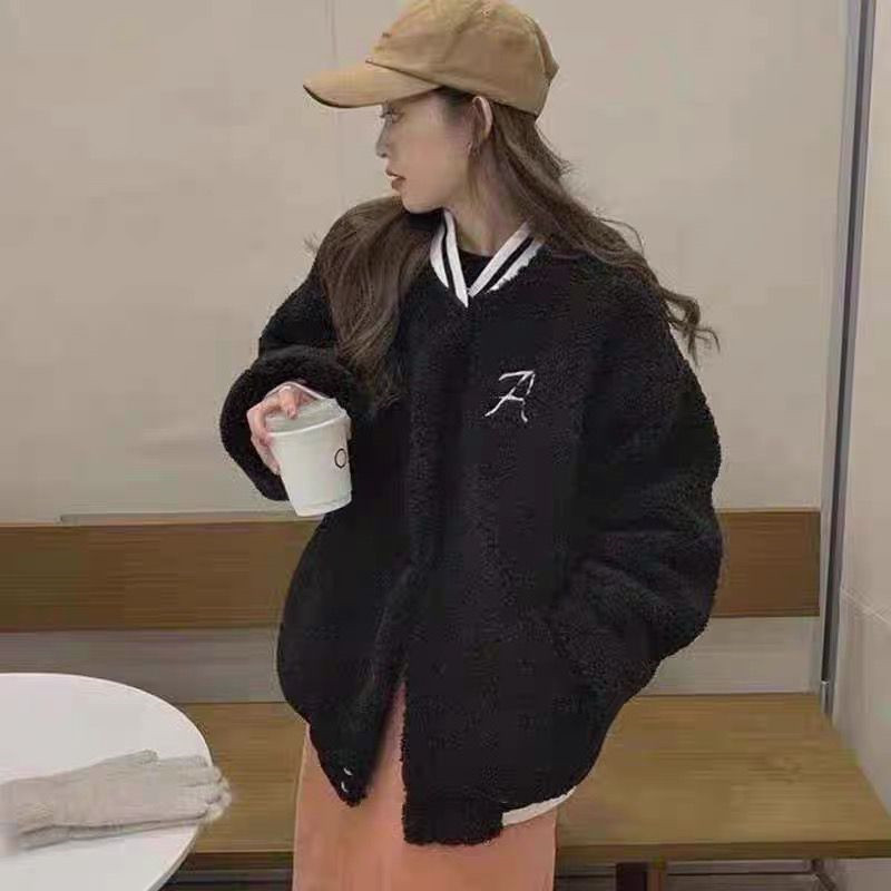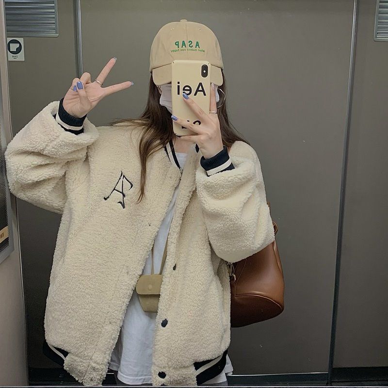 【简易时尚百搭加厚羊羔毛外套】棒球服女ins潮2022年新款秋冬季韩版宽松加绒加厚羊羔毛外套