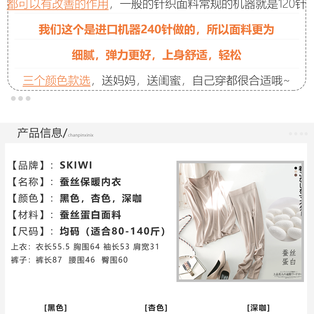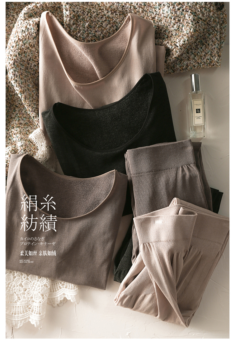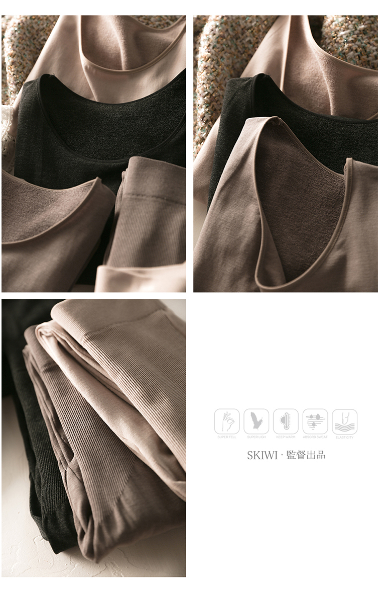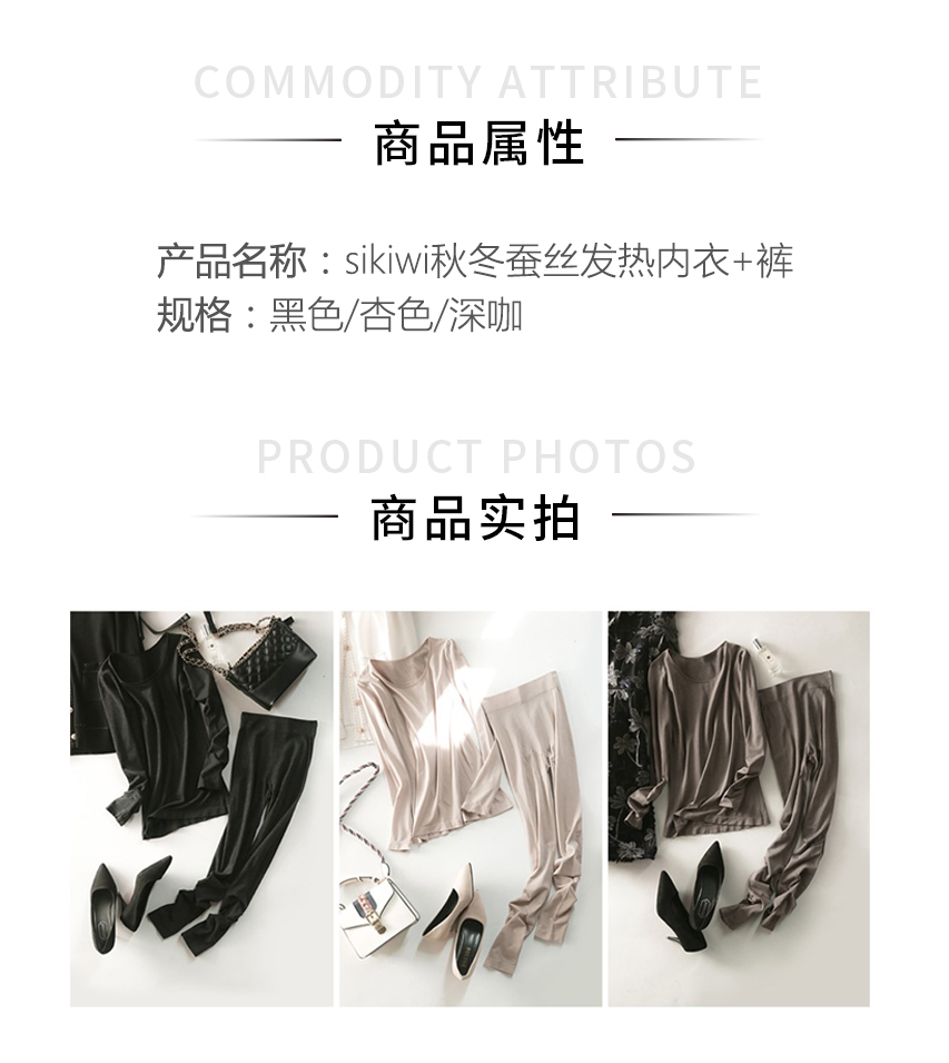 【7天发货】【第二件半价】sikiwi秋冬蚕丝发热内衣+裤(黑色/杏色/深咖)(贴身衣物,不好退换货)~