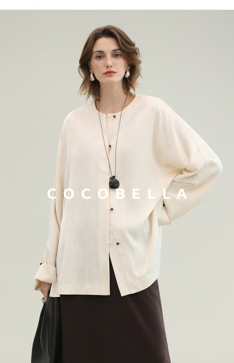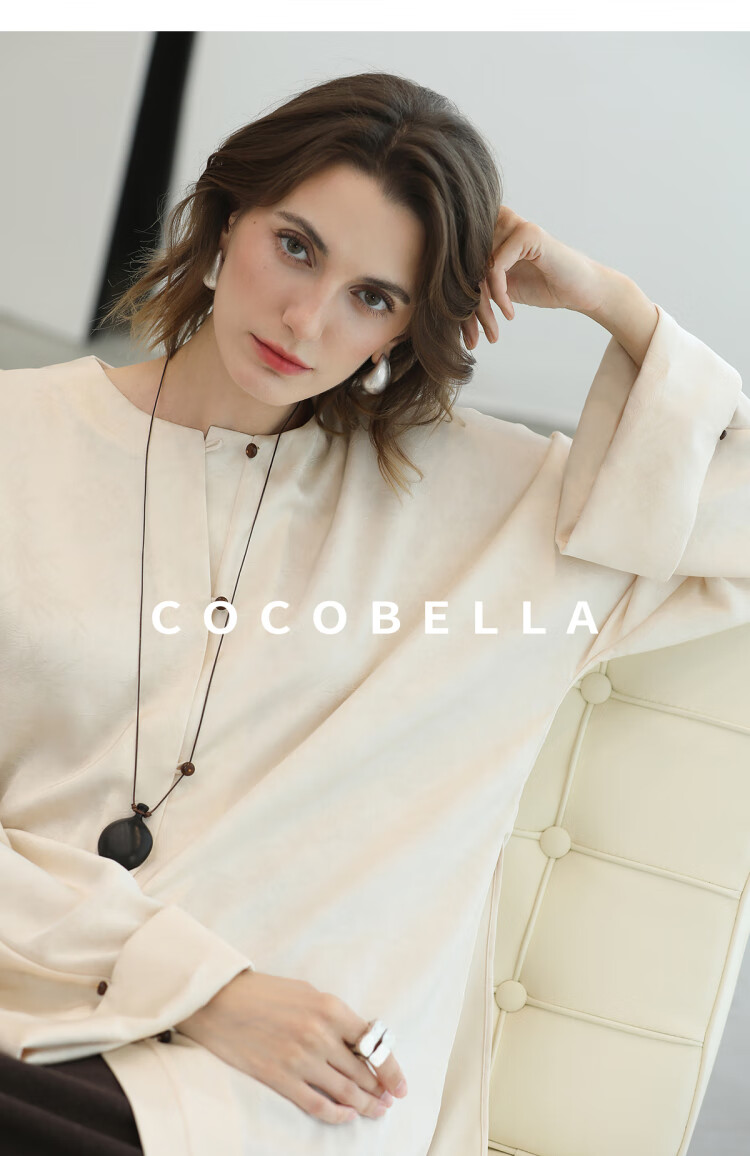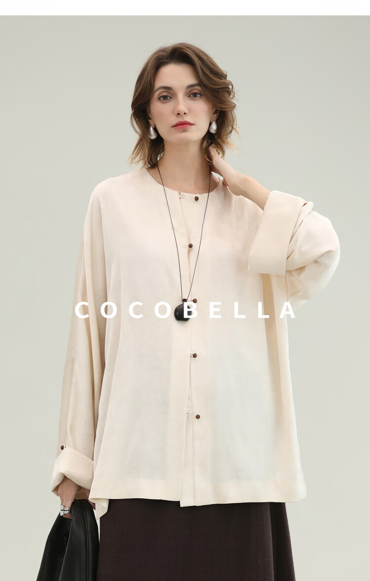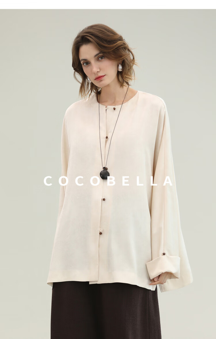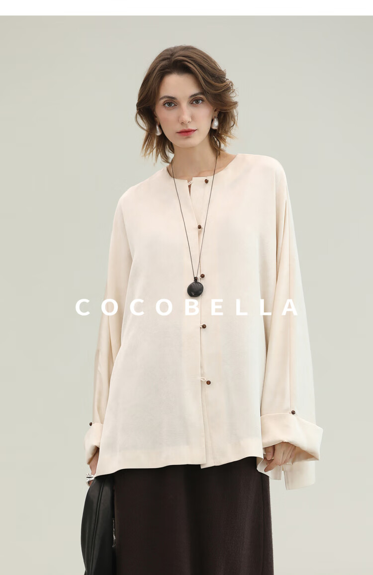 COCOBELLA年轻新中式轻奢女衬衫翻折袖中长款国风上衣SR3223