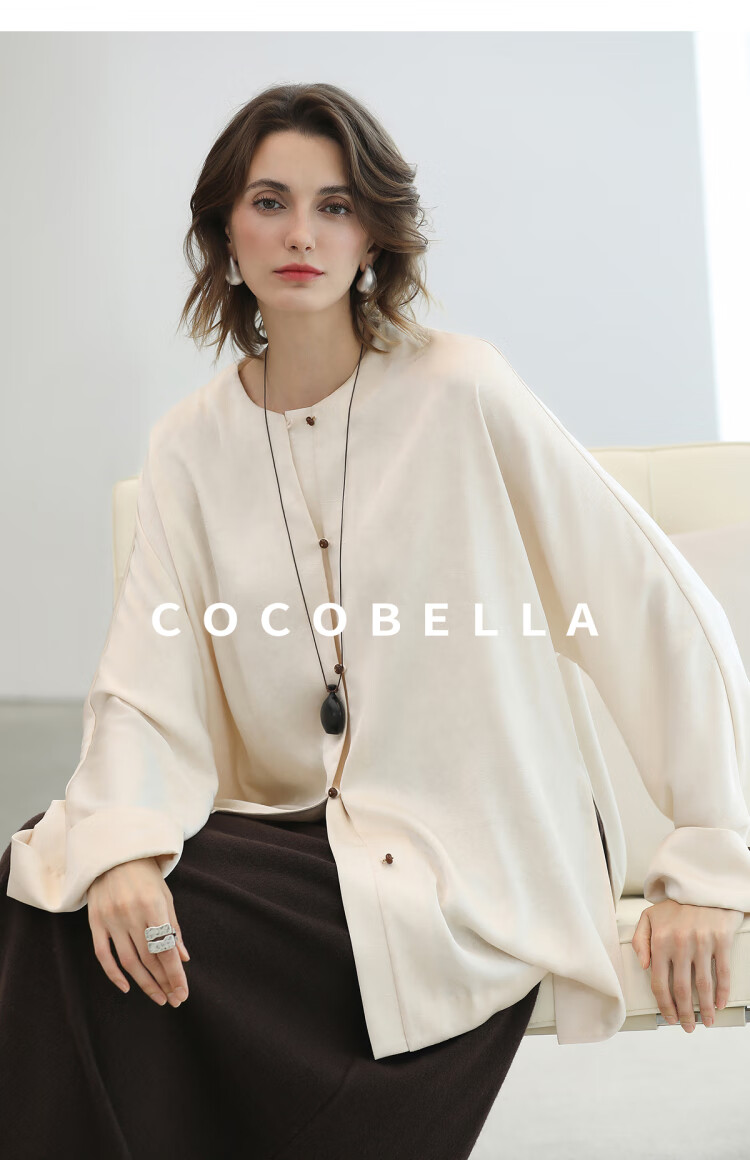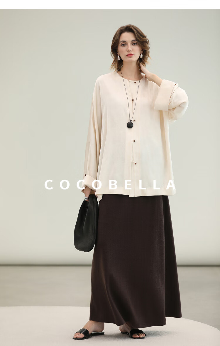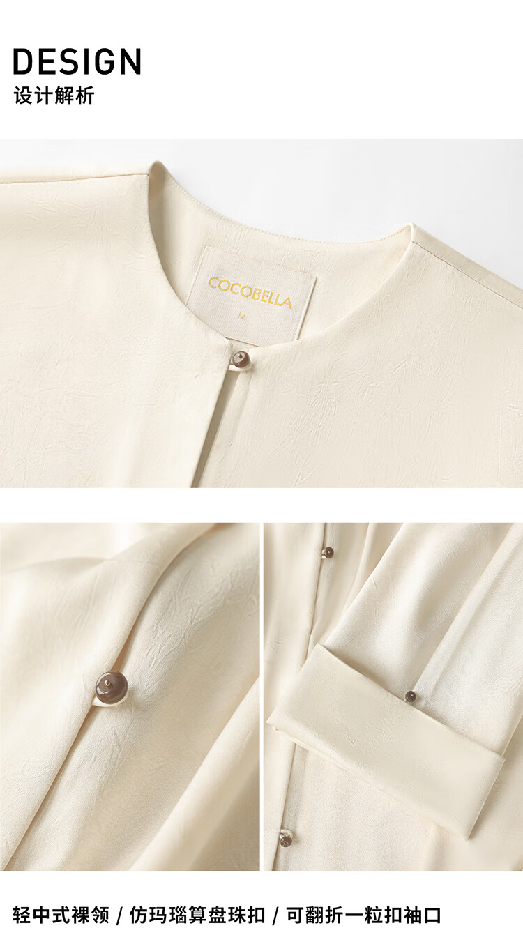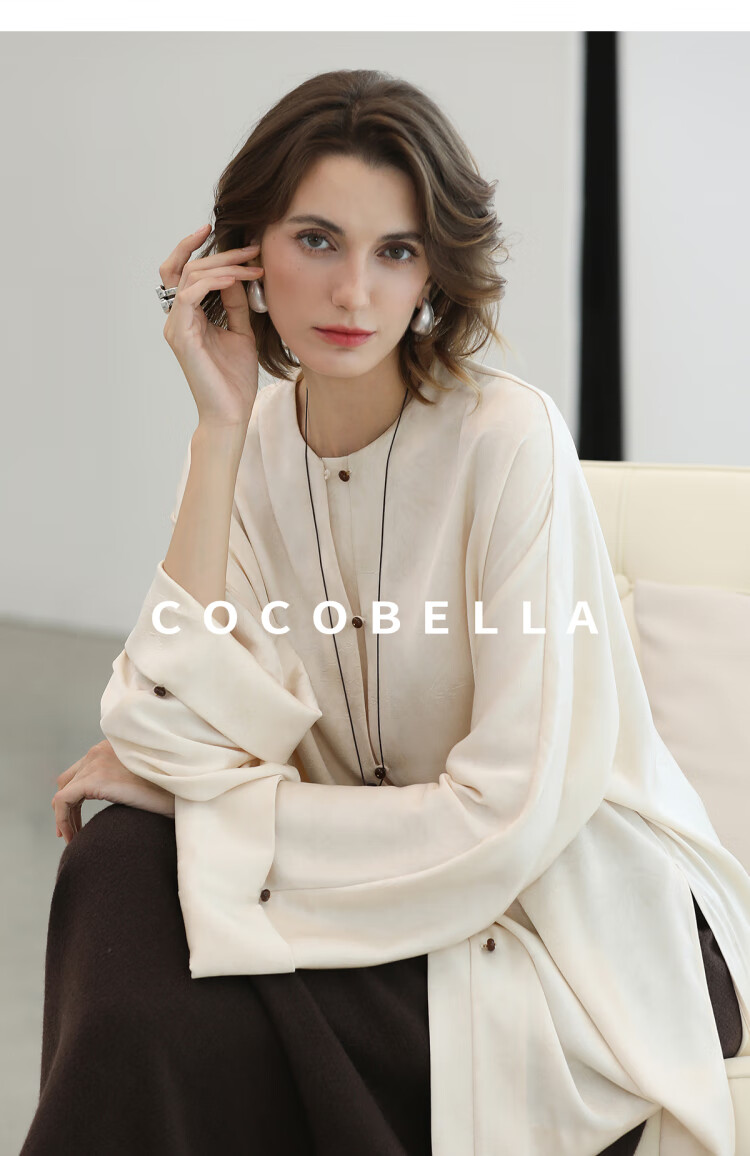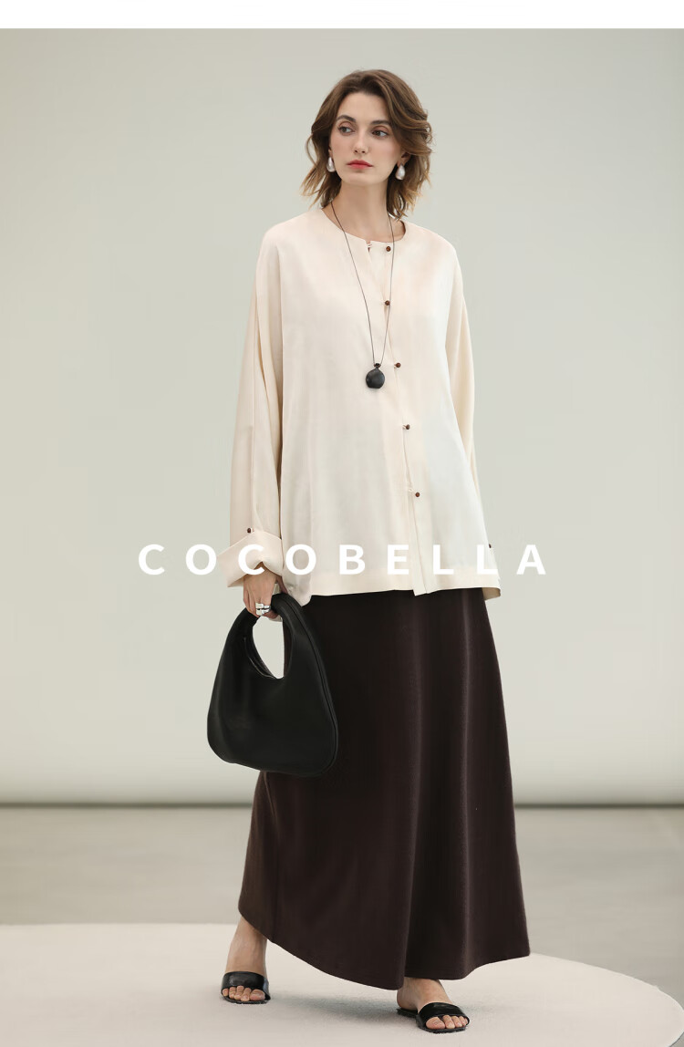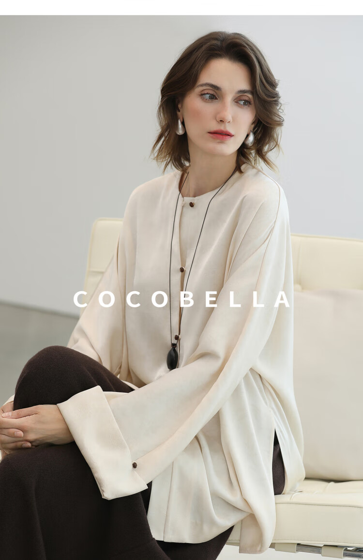COCOBELLA年轻新中式轻奢女衬衫翻折袖中长款国风上衣SR3223