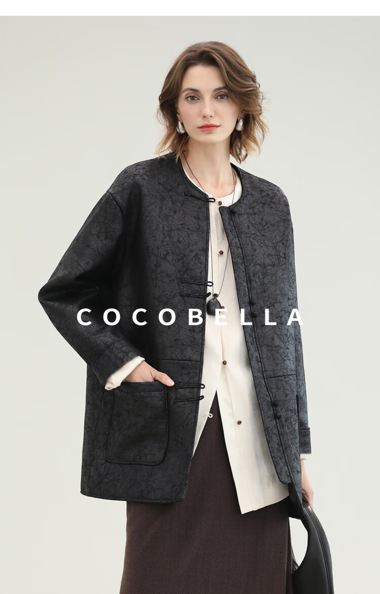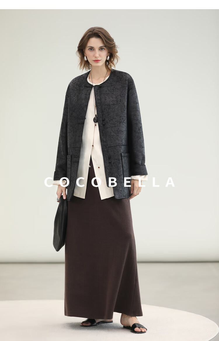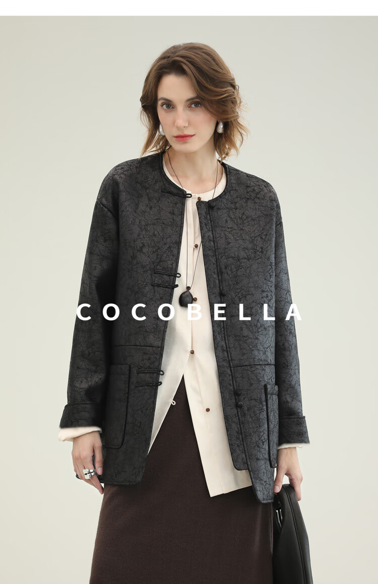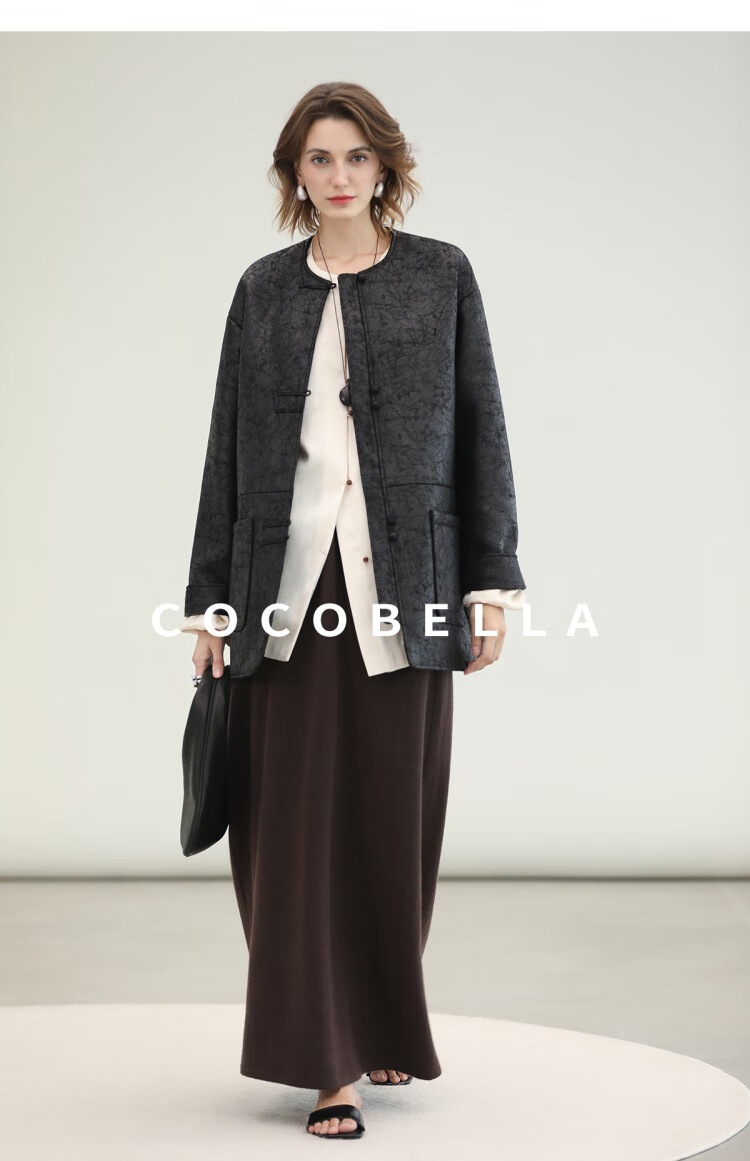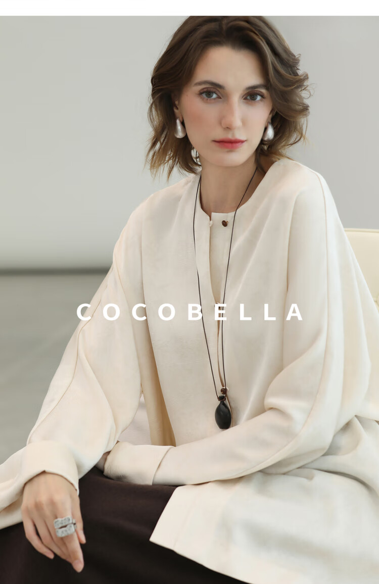 COCOBELLA年轻新中式轻奢女衬衫翻折袖中长款国风上衣SR3223