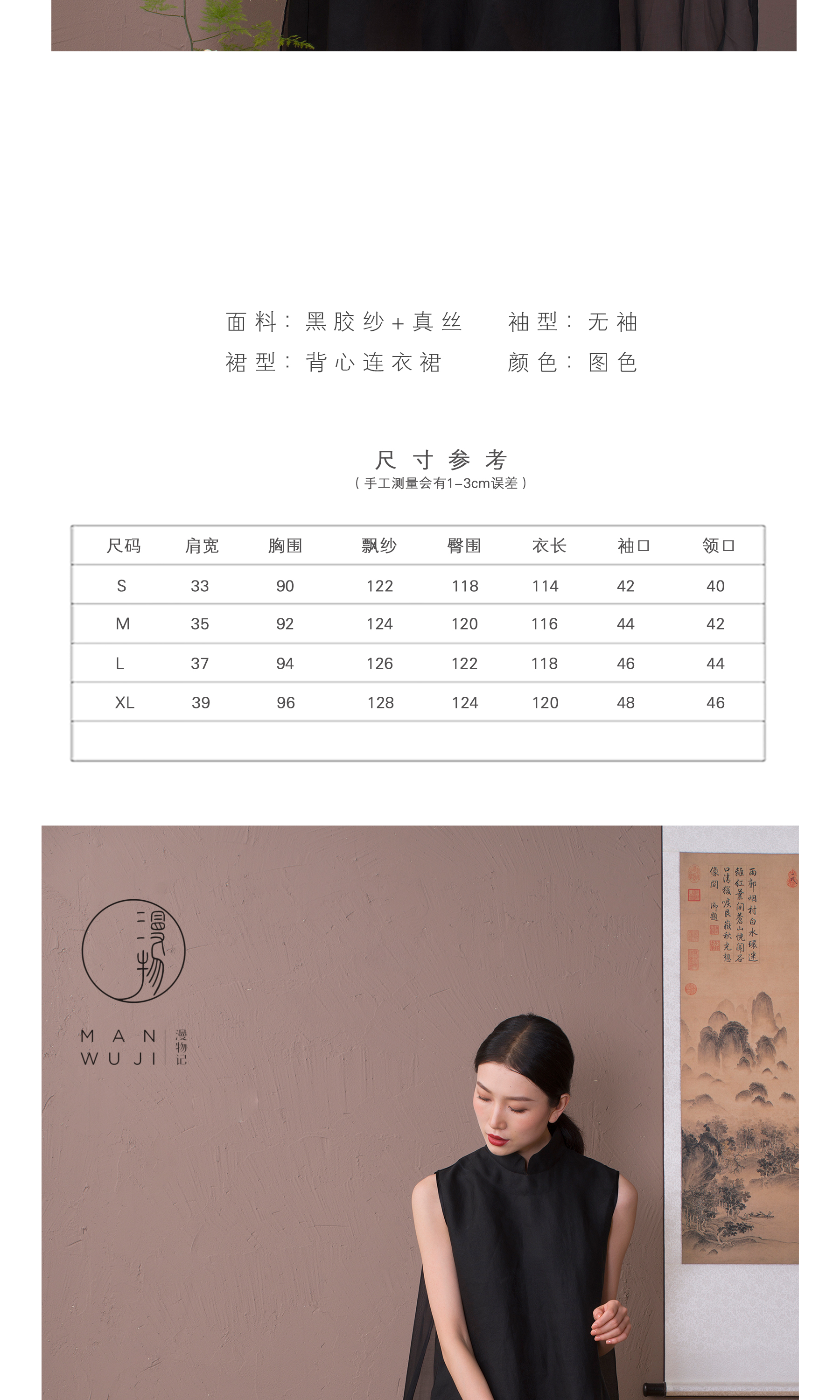 漫物记提花黑胶纱立领飘纱背心裙XYS-011