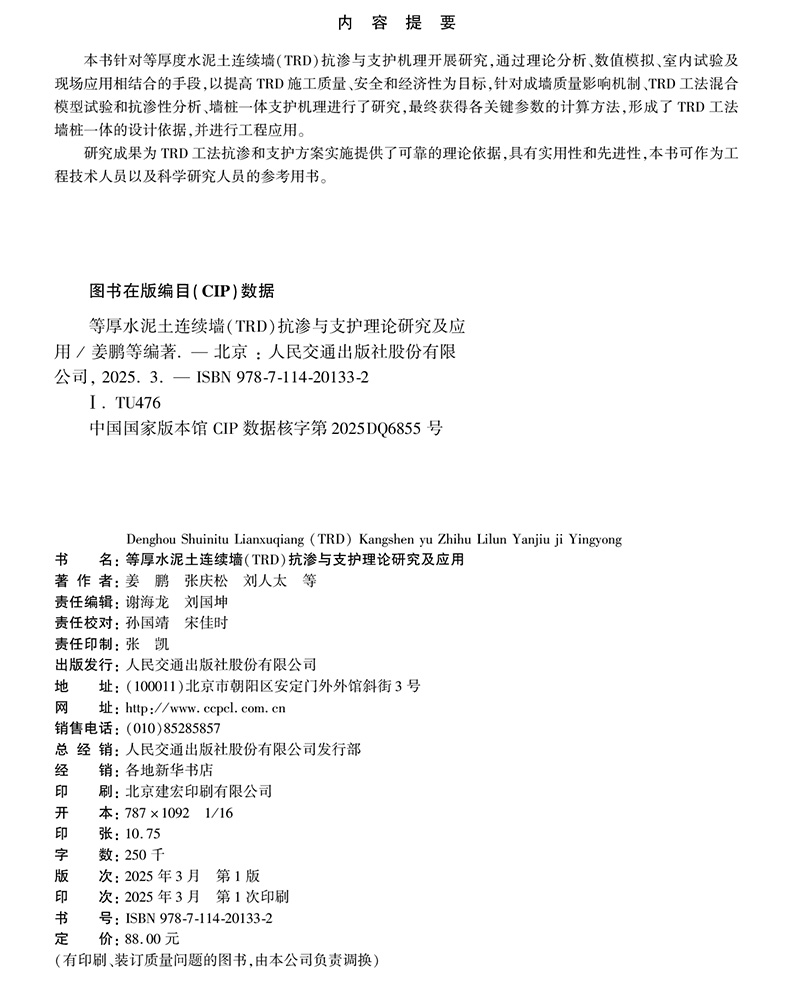 书名:等厚水泥土连续墙(TRD)抗渗与支护理论研究及应用
