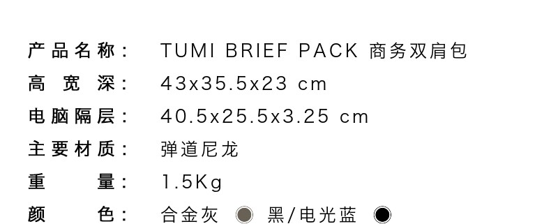 TUMI 双肩包男 02603580DUB4-F 黑/电光蓝.