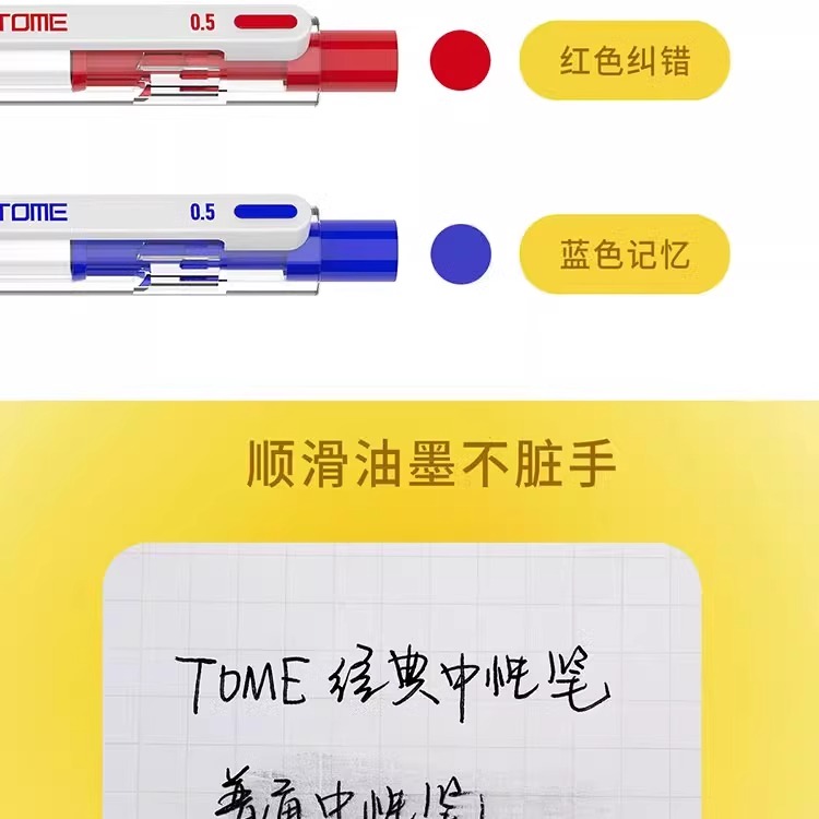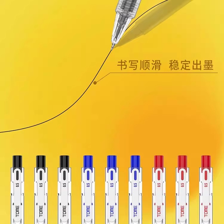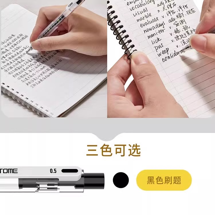 TOME图米大容量按动中性笔巨能写刷题笔TM718黑红蓝色0.5顺滑st尖签字笔