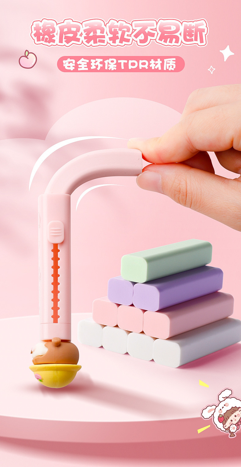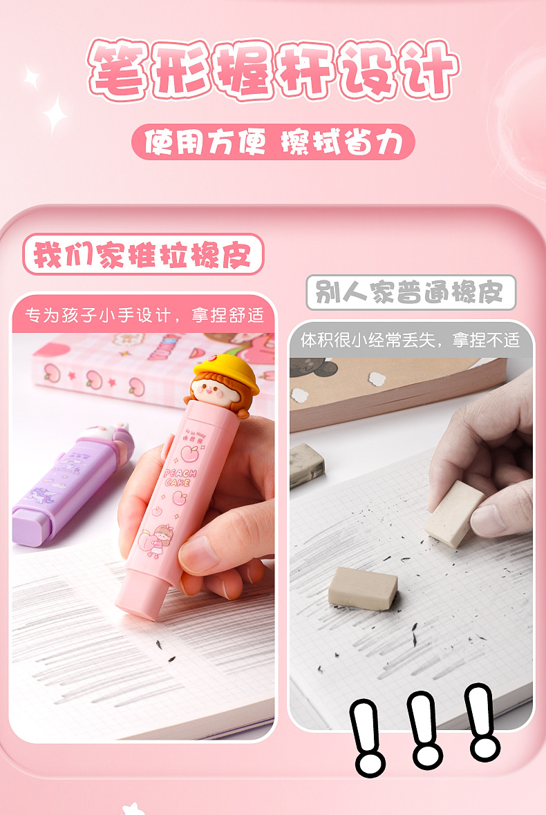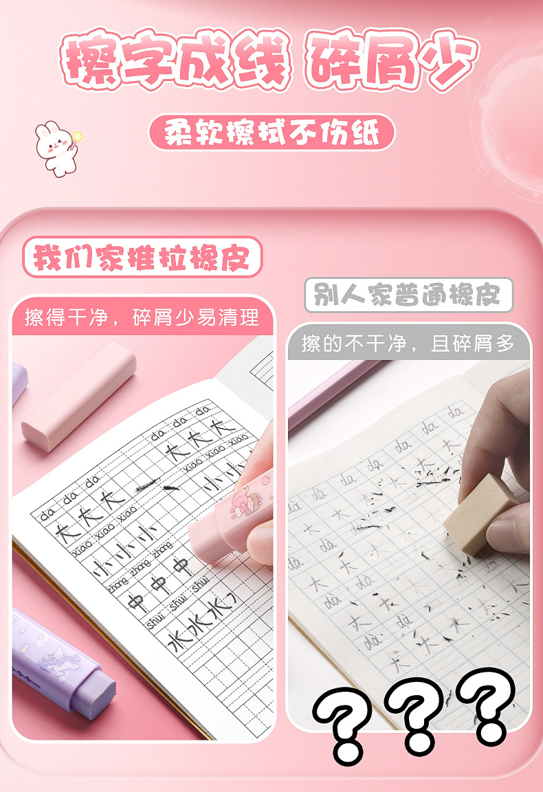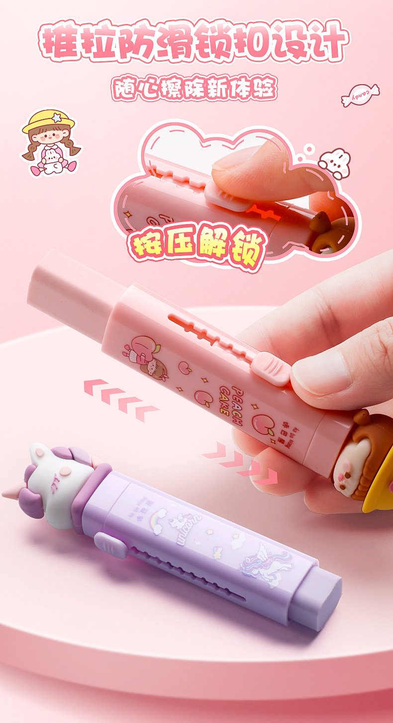 【擦字成线,柔软擦拭不伤纸!】咔巴熊推拉橡皮小学生专用按动像皮擦,不留痕无碎屑橡皮擦可爱卡通,推拉防滑锁扣设计 随心擦除新体验!-QQ