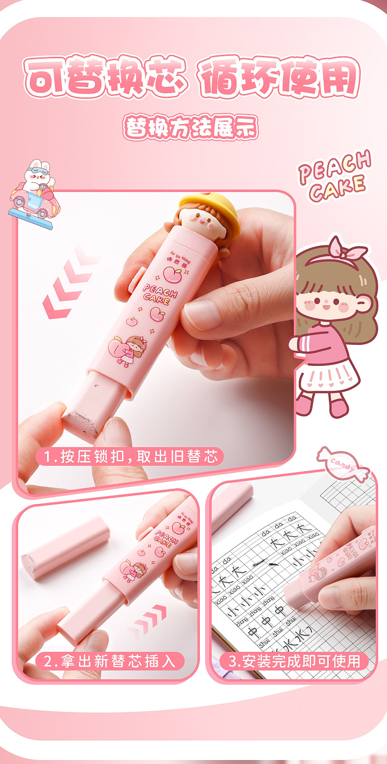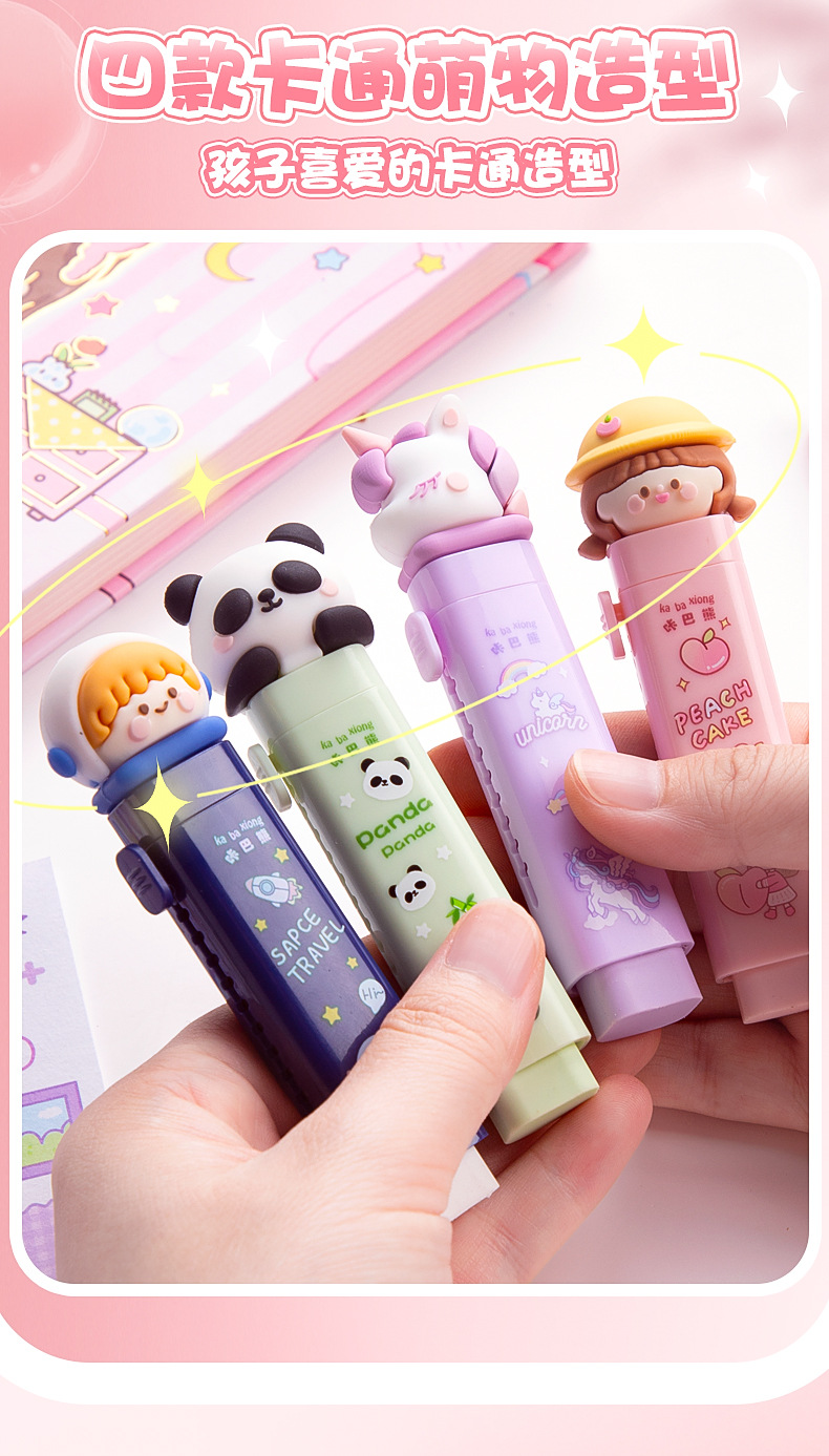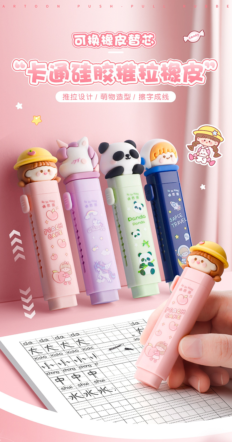 【擦字成线,柔软擦拭不伤纸!】咔巴熊推拉橡皮小学生专用按动像皮擦,不留痕无碎屑橡皮擦可爱卡通,推拉防滑锁扣设计 随心擦除新体验!-QQ