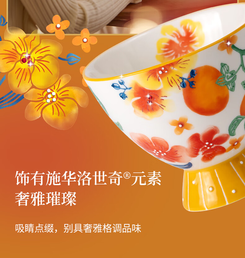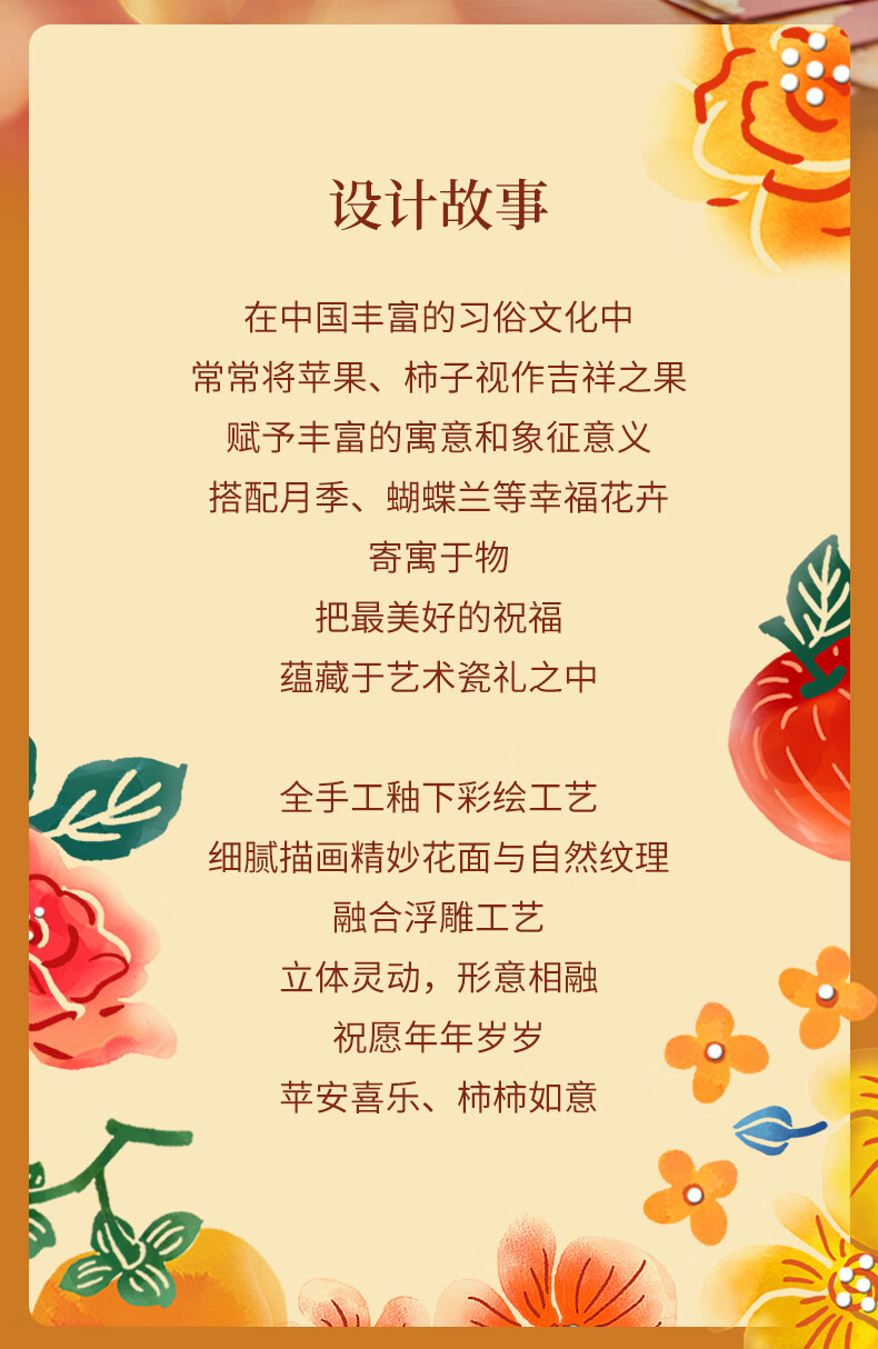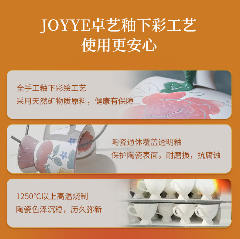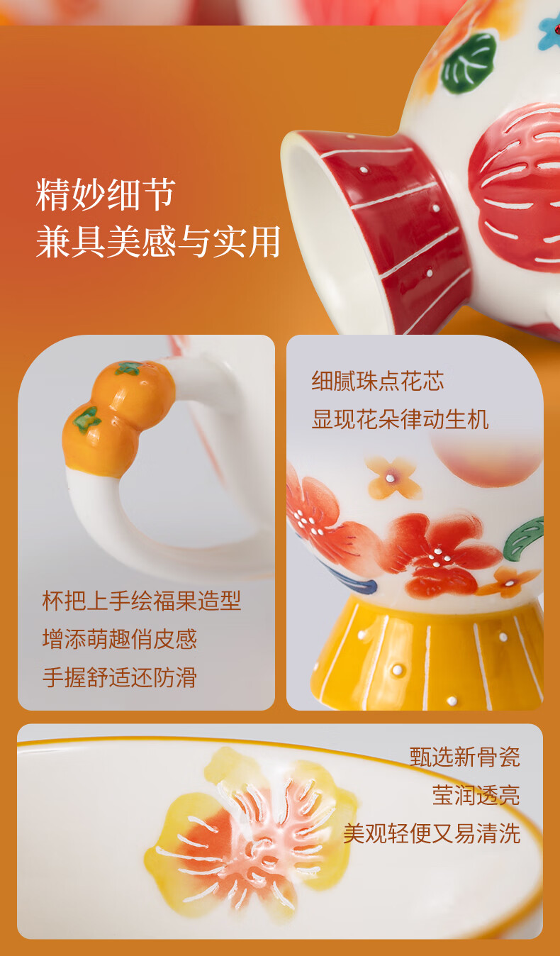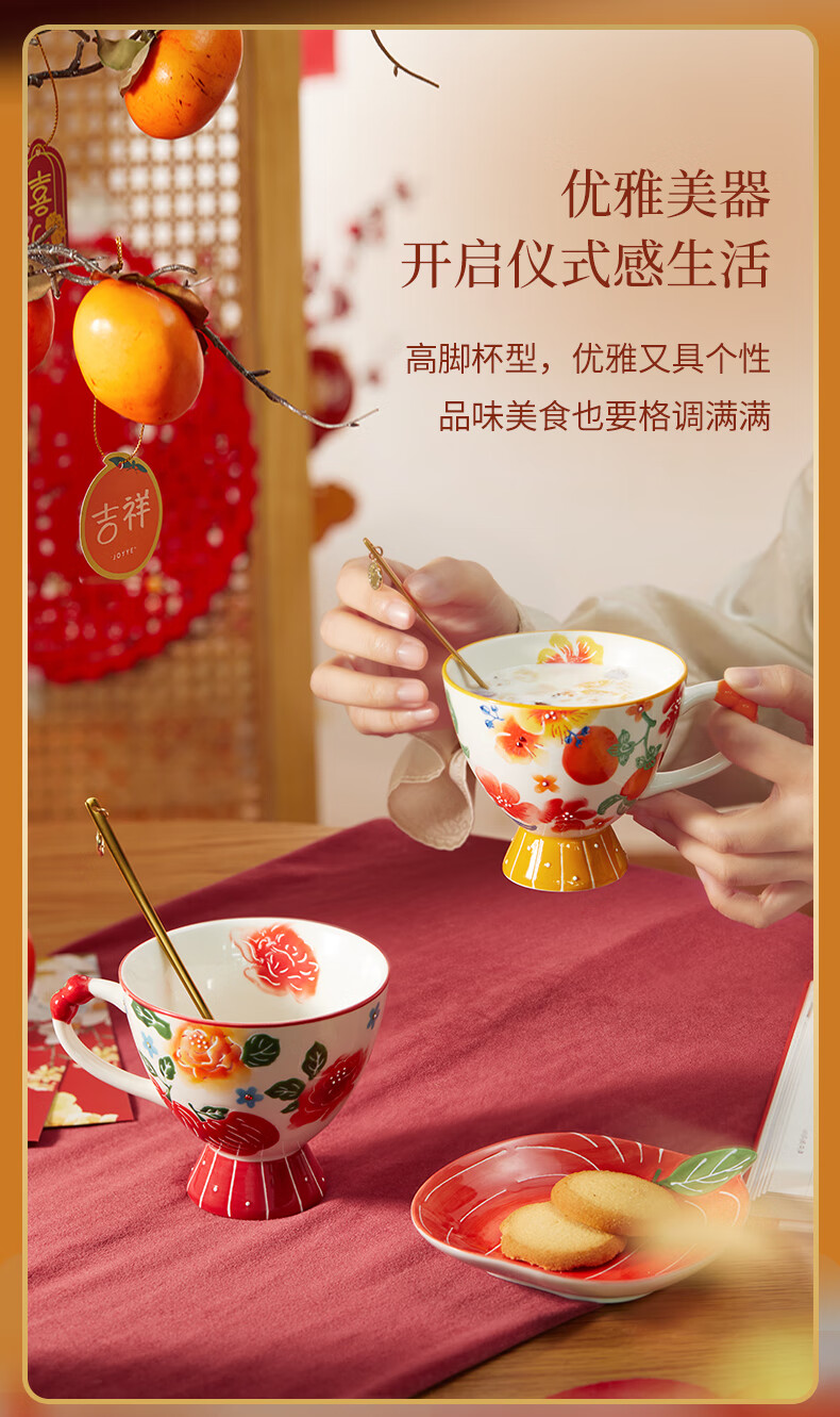 【专柜多样屋】JOYYE福果满园马克杯带勺高脚杯釉下彩手绘春节新春礼物 金柿-【单杯礼盒】 230ml