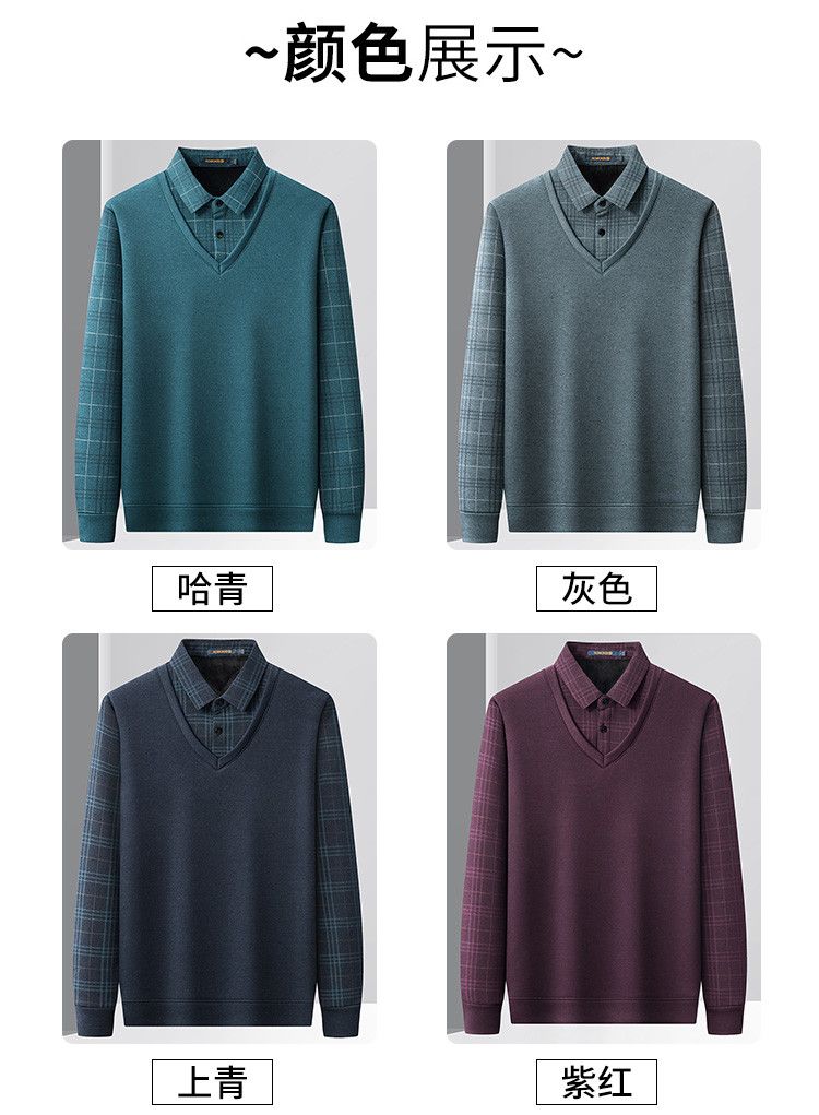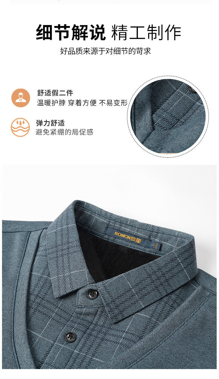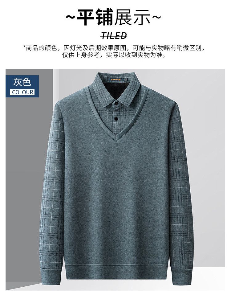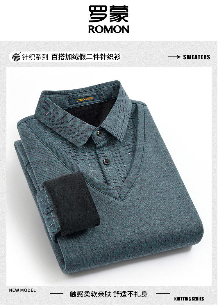【加绒加厚】罗蒙秋冬男装加绒加厚衬衫领假两件慵懒毛衣男冬季针织衫
