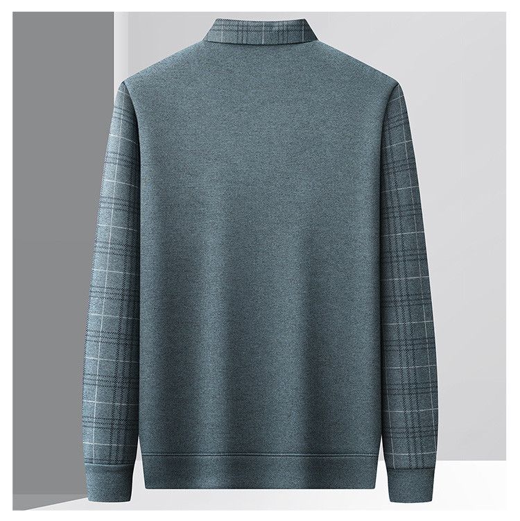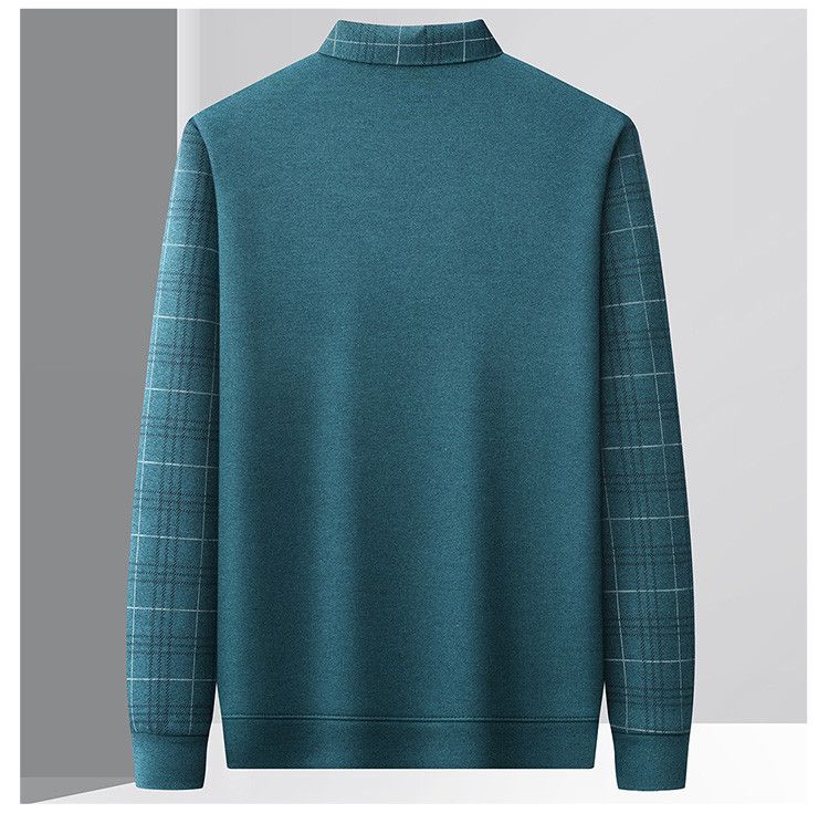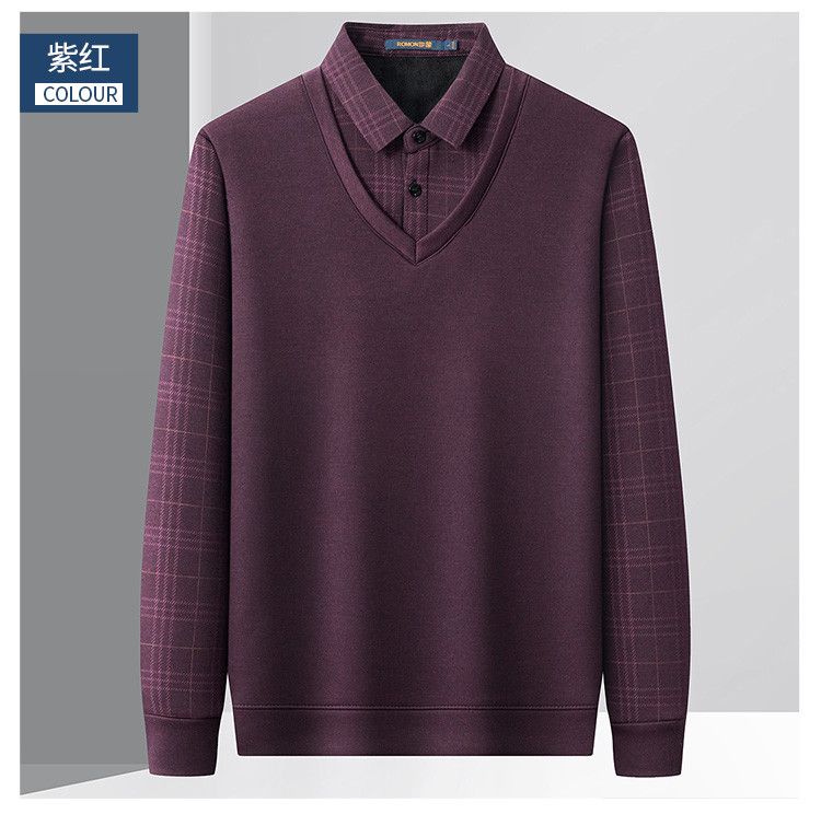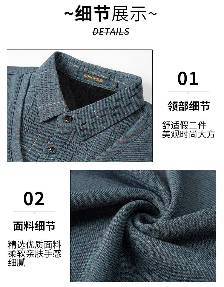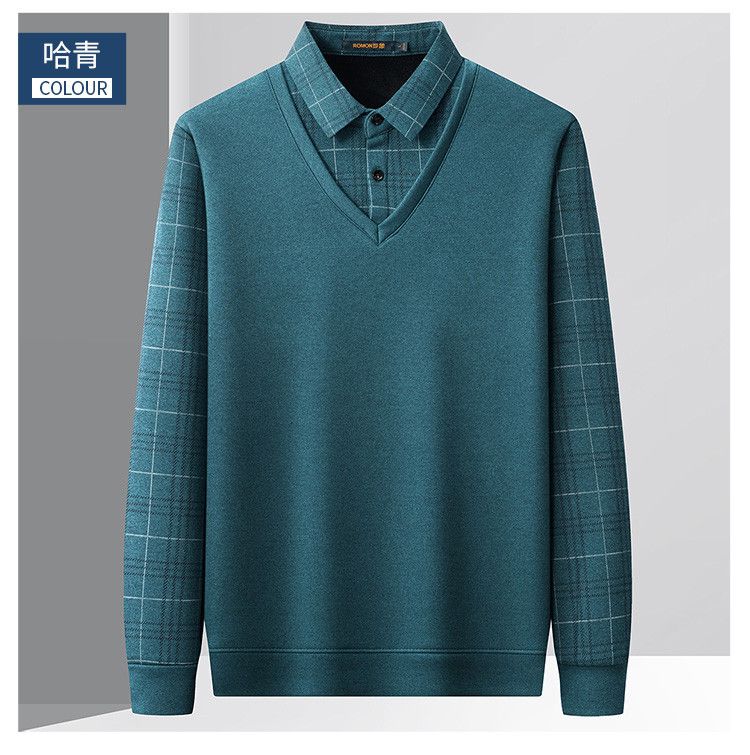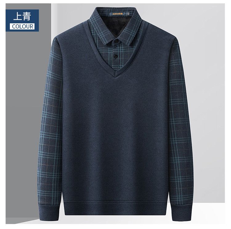 【加绒加厚】罗蒙秋冬男装加绒加厚衬衫领假两件慵懒毛衣男冬季针织衫