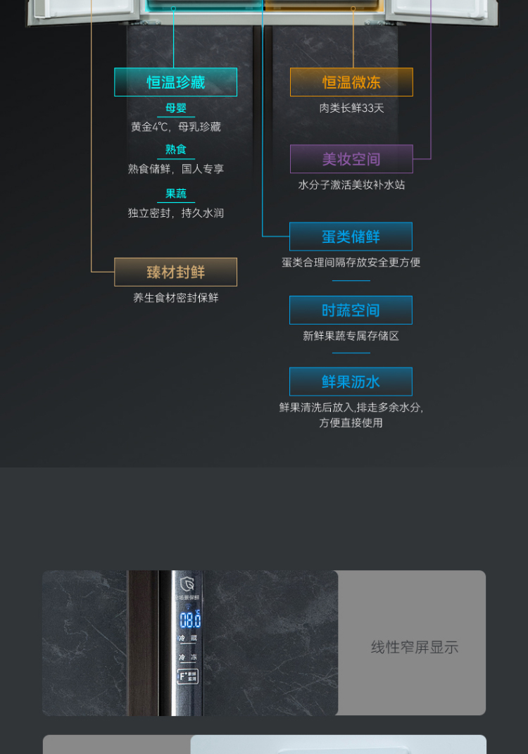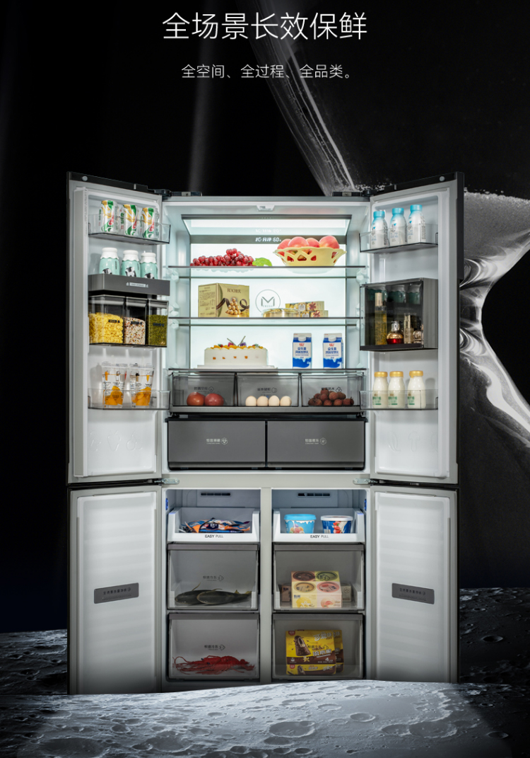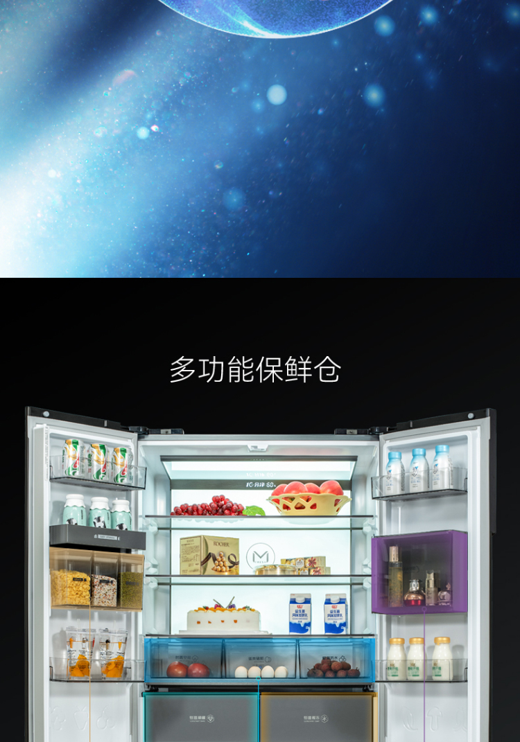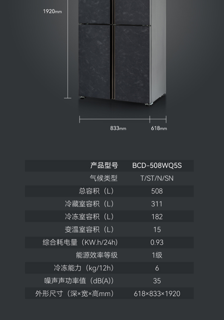 美菱(MELING)508升多门四门十字冰箱 一级能效 风冷变频 多谱氧鲜 恒温微冻 BCD-508WQ5S