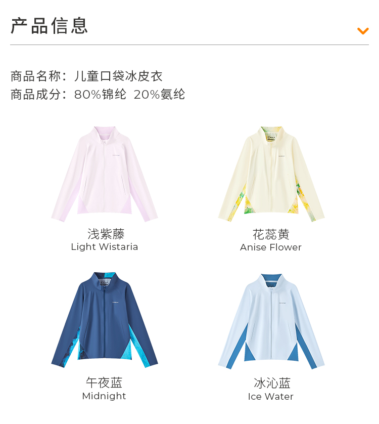 【DR暑假】moodytiger时尚24春新儿童长袖户外速干防晒口袋冰皮衣42513904