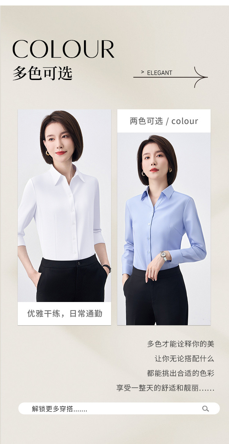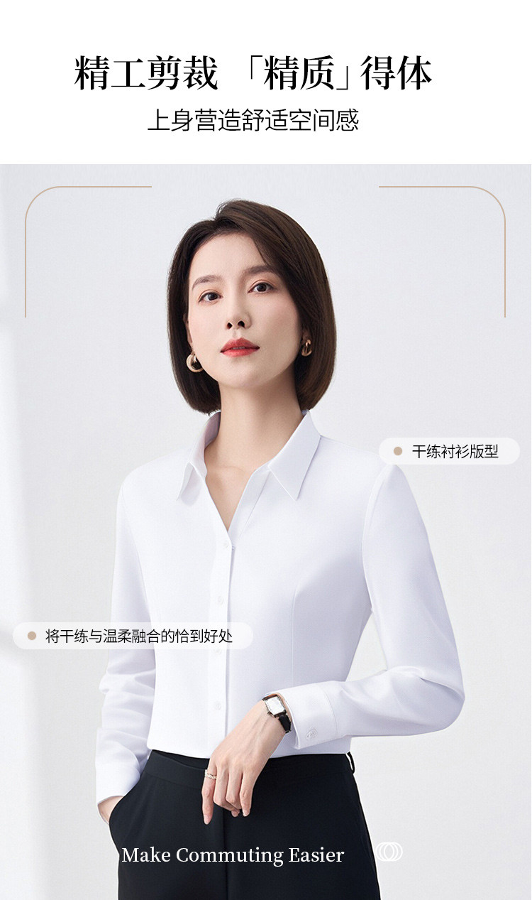 【含桑蚕丝莫代尔】罗蒙女士长袖衬衫舒适透气职业通勤气质轻盈舒适衬衣女