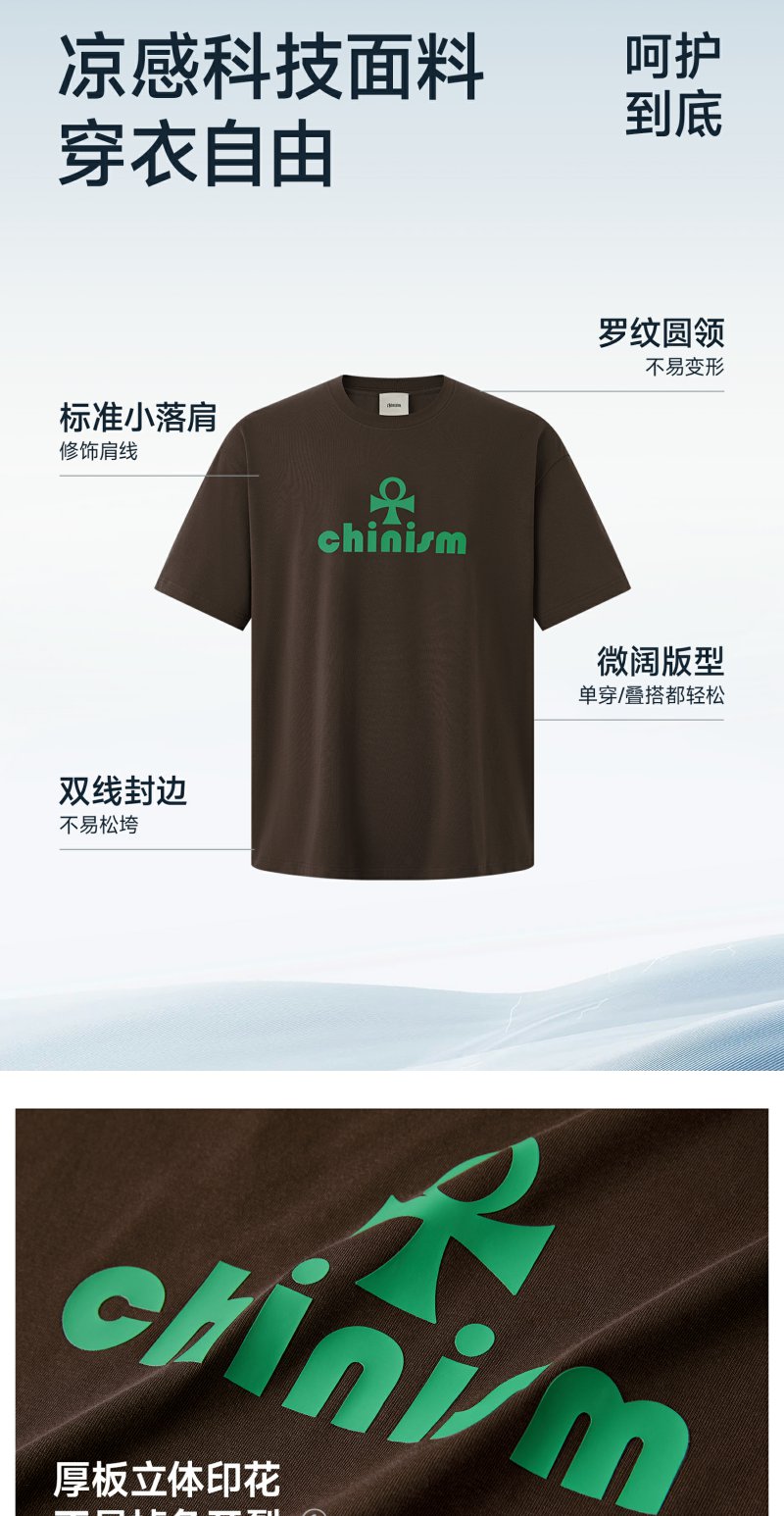 CHINISM赤尘 索罗娜凉感短袖t恤男夏季新款宽松休闲男士通勤短袖