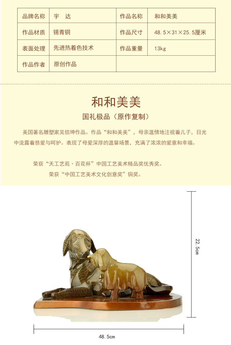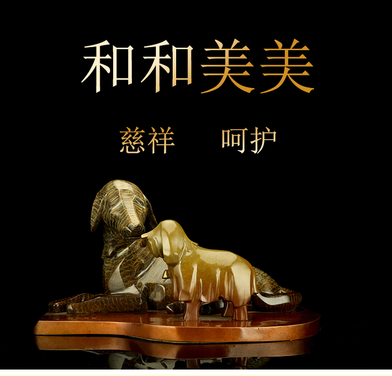 宇达青铜全铜狗摆件《和和美美》十二生肖 创意装饰 家居工艺摆件 高25.5cm
