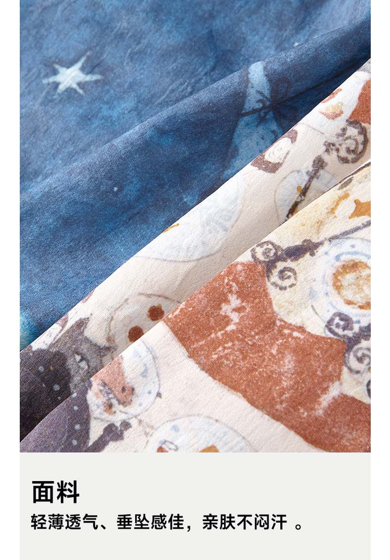 两三事软萌喵园2025春新款甜美荷叶边拼接印花无袖背心裙连衣裙