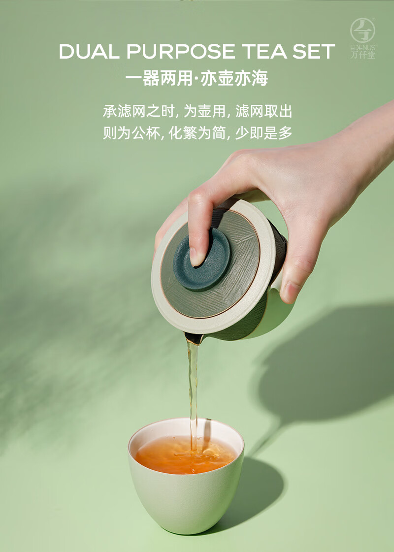 万仟堂 茶具 快客杯 清欢 茶壶茶杯茶漏 旅行茶具套装 一壶两杯 功夫茶具套装 便携茶具
