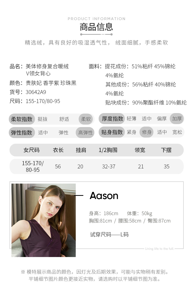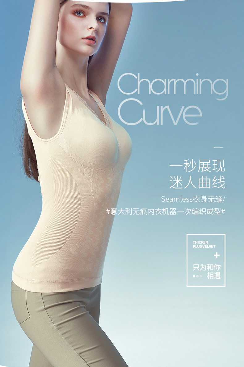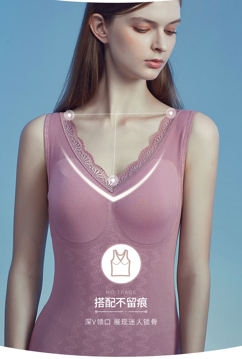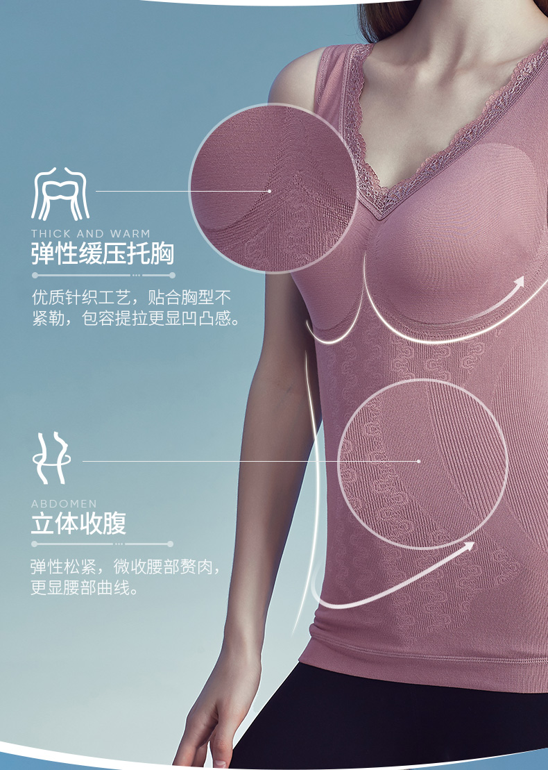 Threegun三枪 【复合暖绒】美体修身V领女士打底背心-30642A811