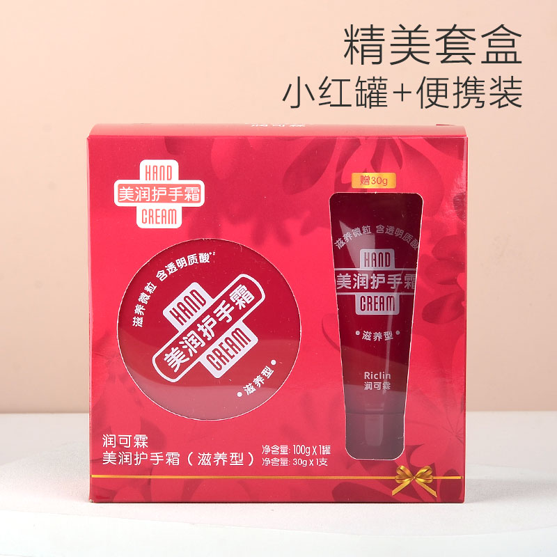 润可霖美润护手霜滋养型精华颗粒红罐100g+便携软管30g套盒