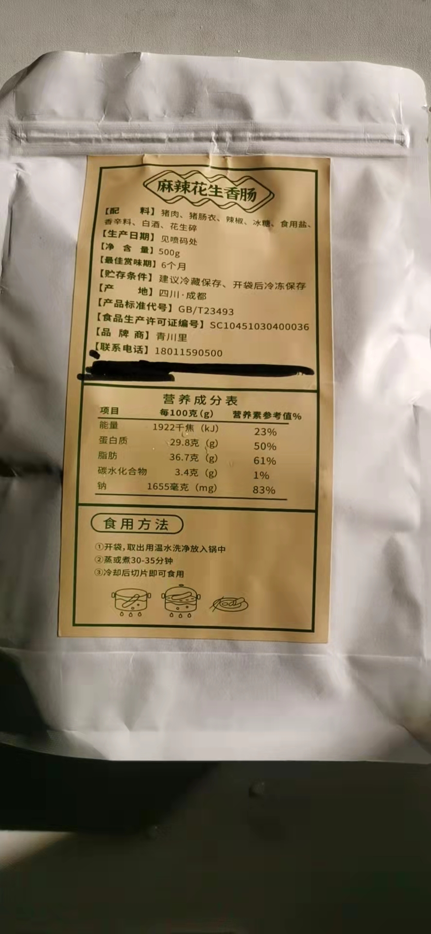青川里 麻辣香肠/花生香肠500g*2袋 [福利品]