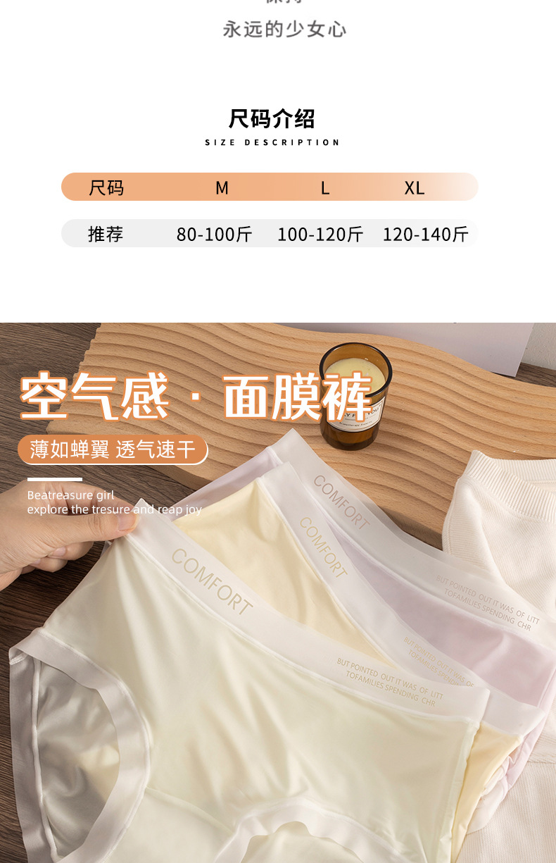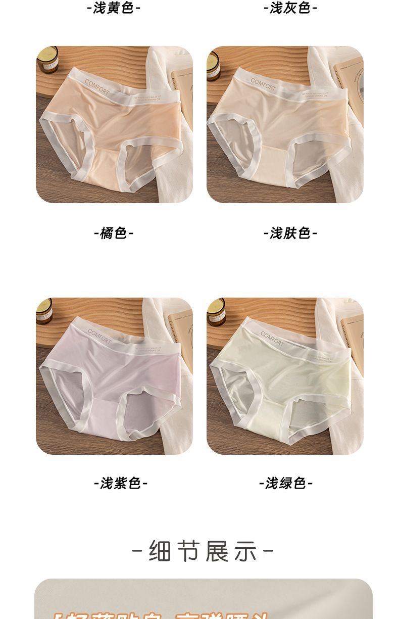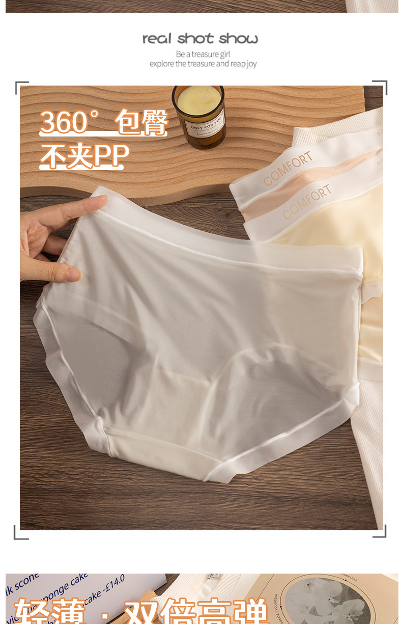 看得见的轻薄透气 柔软冰丝内裤女 纯棉桑蚕丝抗菌裆透气少女三角裤超薄面膜无痕女士内裤